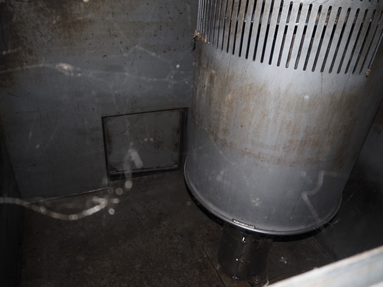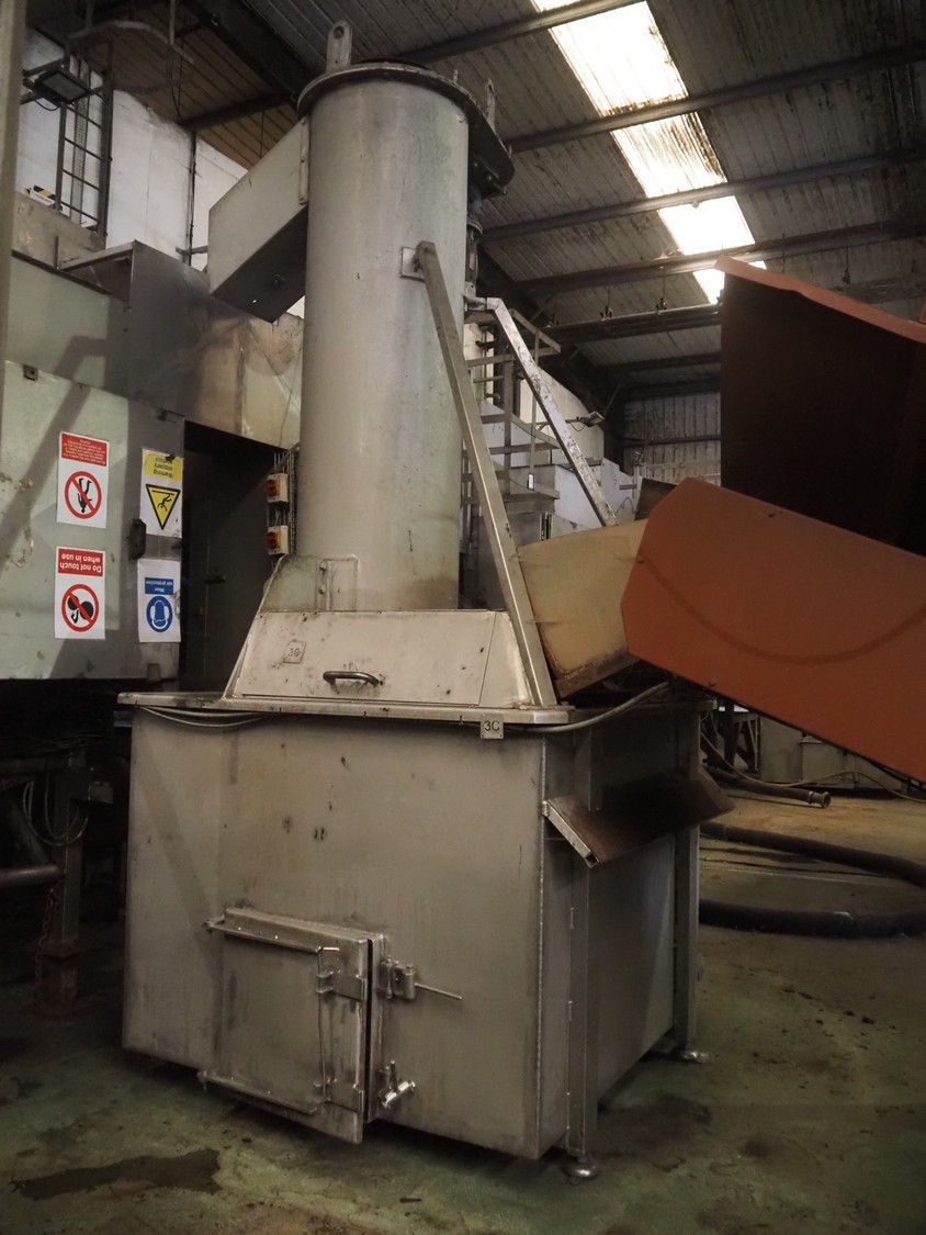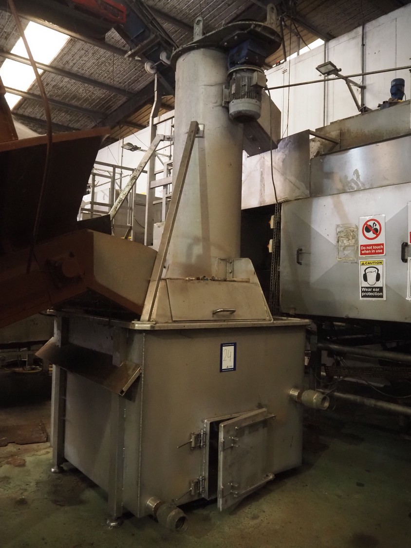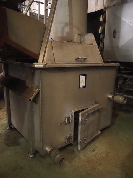 Screw destoner, infeed clearance: 1300 mm x 200 mm, screw diameter: approximately 550 mm, total dimensions: 1750 mm x 1800 mm x 3700 mm. Missing drive belt.