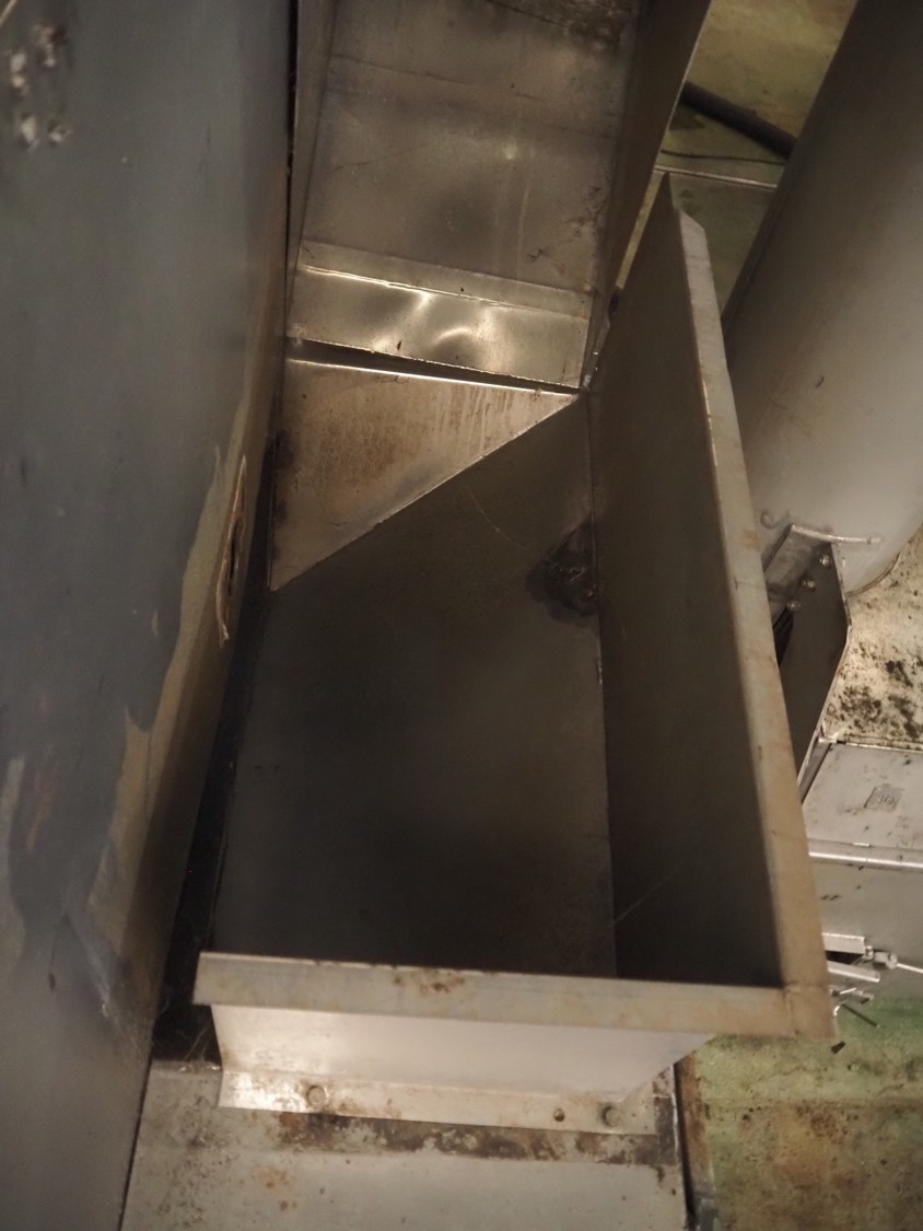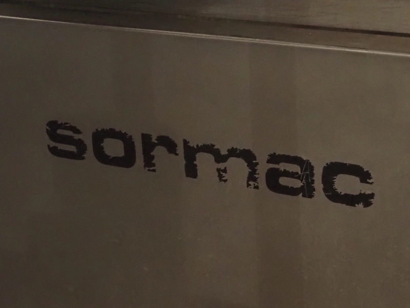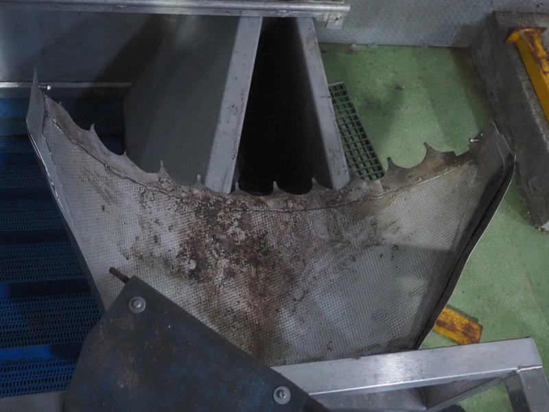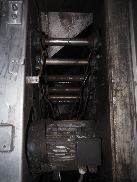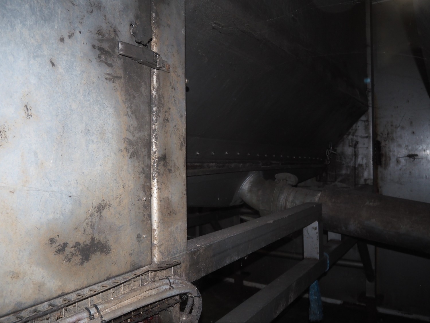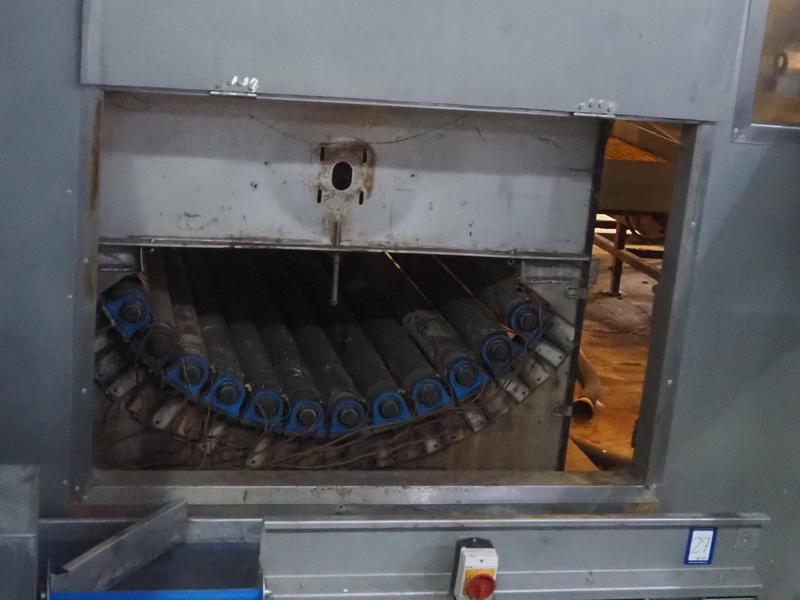 Sormac potato peeler, inside dimensions: 2880 mm x 1230 mm x 1260 mm, screw diameter: 1200 mm, total dimensions: 3900 mm x 1450 mm x 3200 mm. Screw on pallet. Including platform without stairs.