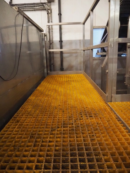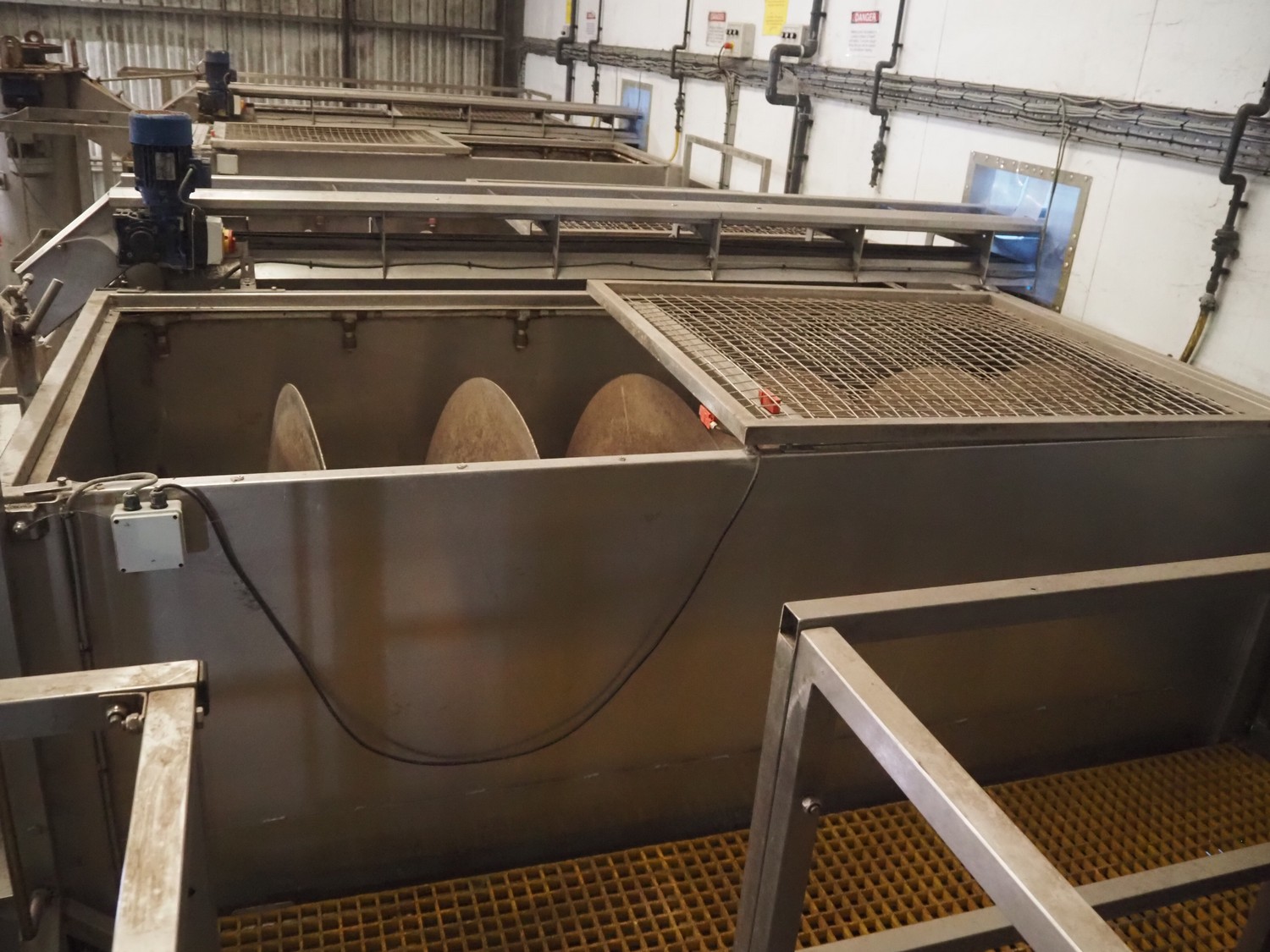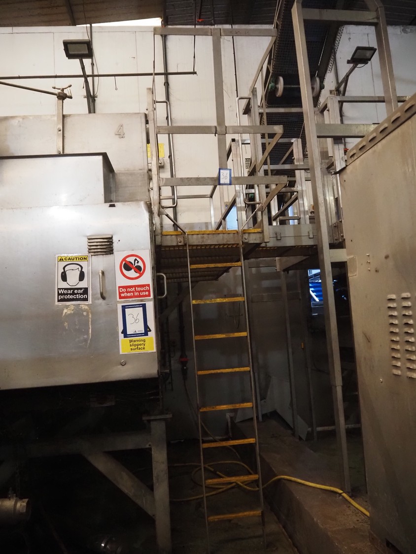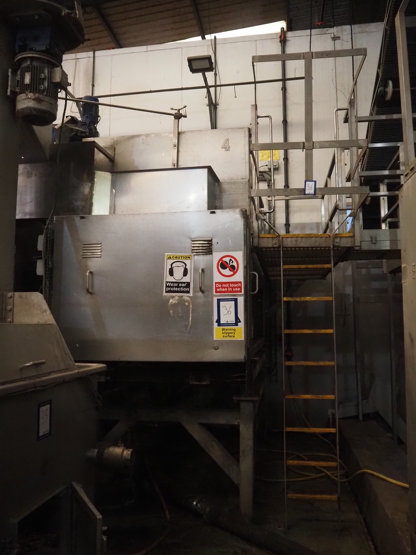 Potato peeler, inside dimensions: 2880 mm x 1230 mm x 1260 mm, screw diameter: Ø 1200 mm, total dimensions: 3250 mm x 2580 mm x 3200 mm. Including stairs/platform.
