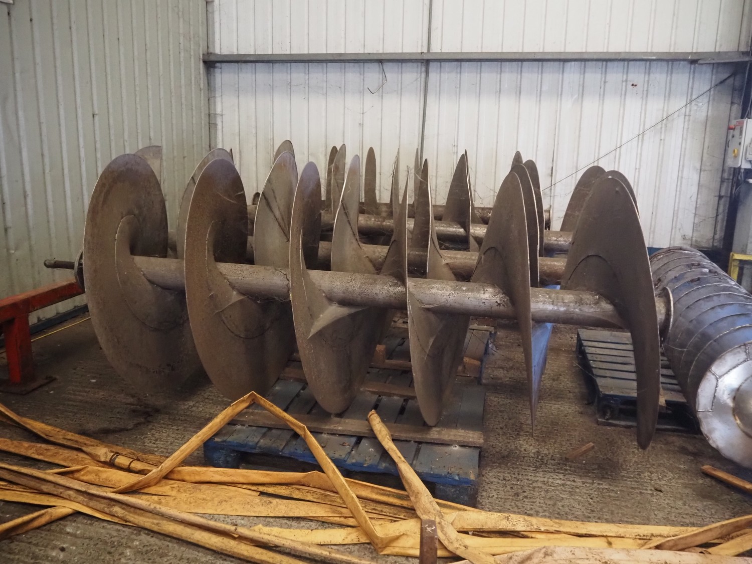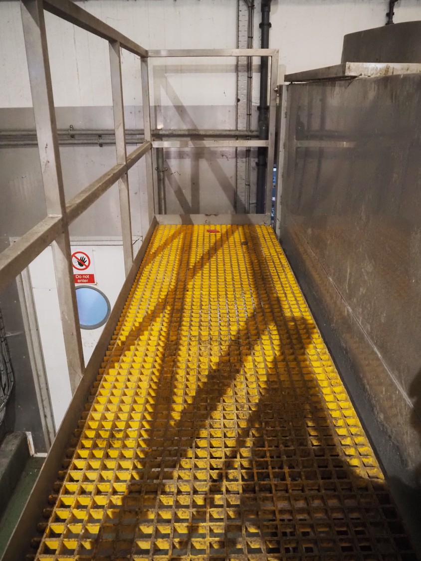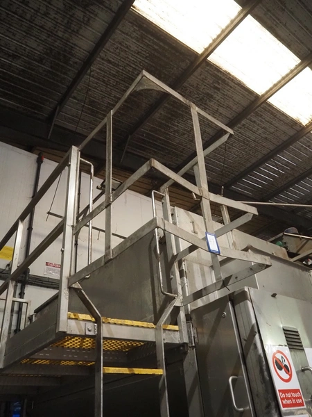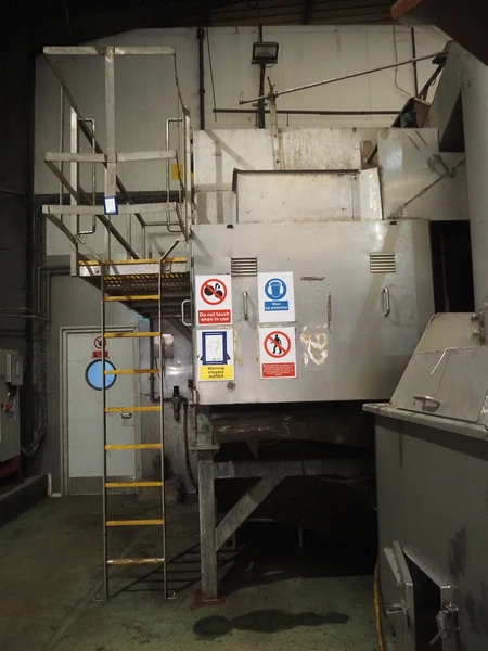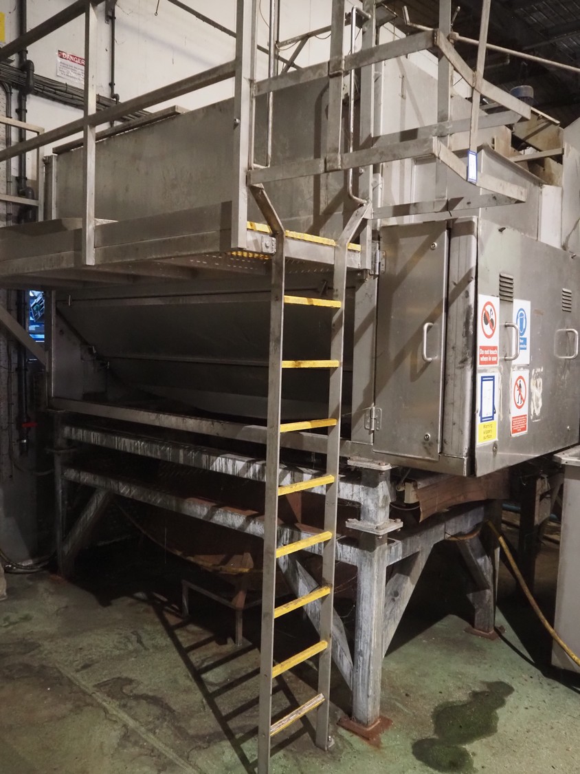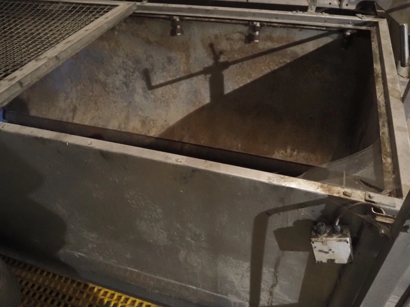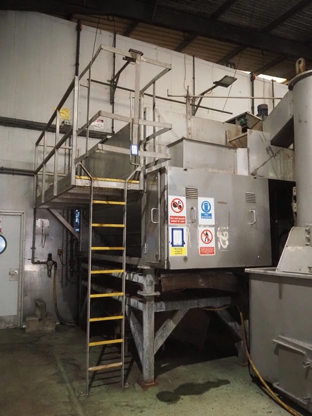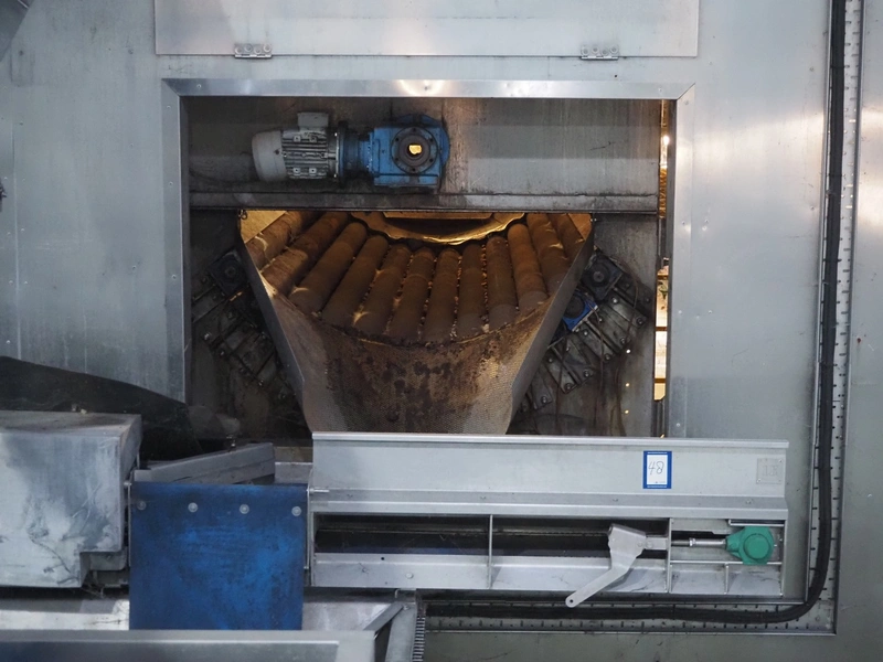 Potato peeler, inside dimensions: 2880 mm x 1230 mm x 1260 mm, screw diameter: Ø 1200 mm, total dimensions: 3670 mm x 2580 mm x 3200 mm. Screw on pallet, including stairs/platform.