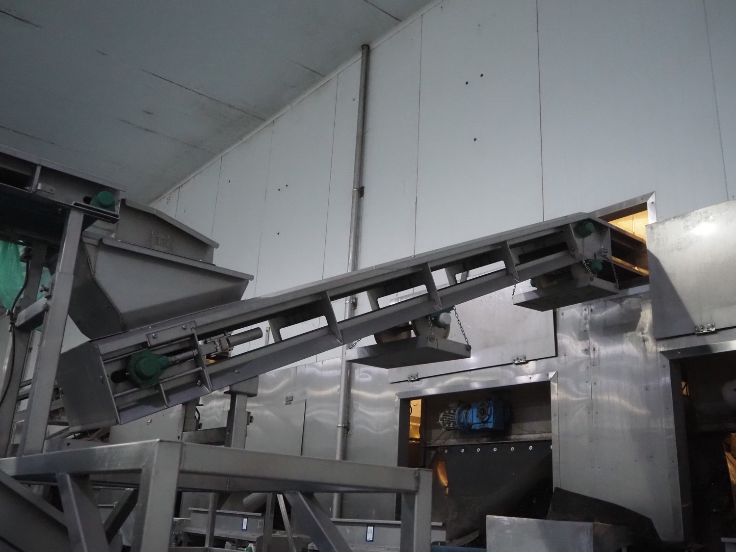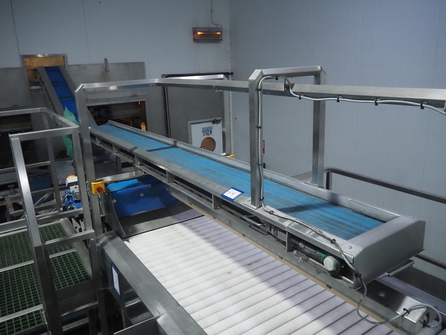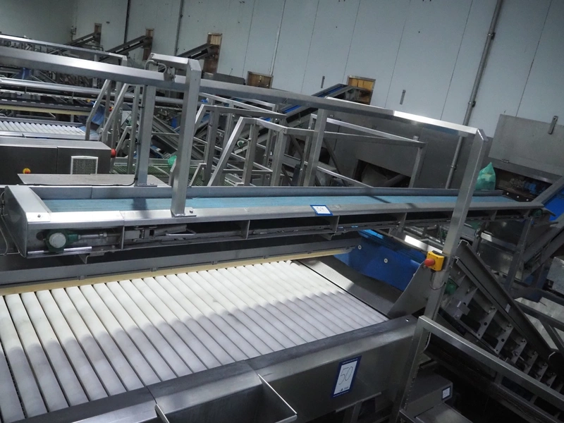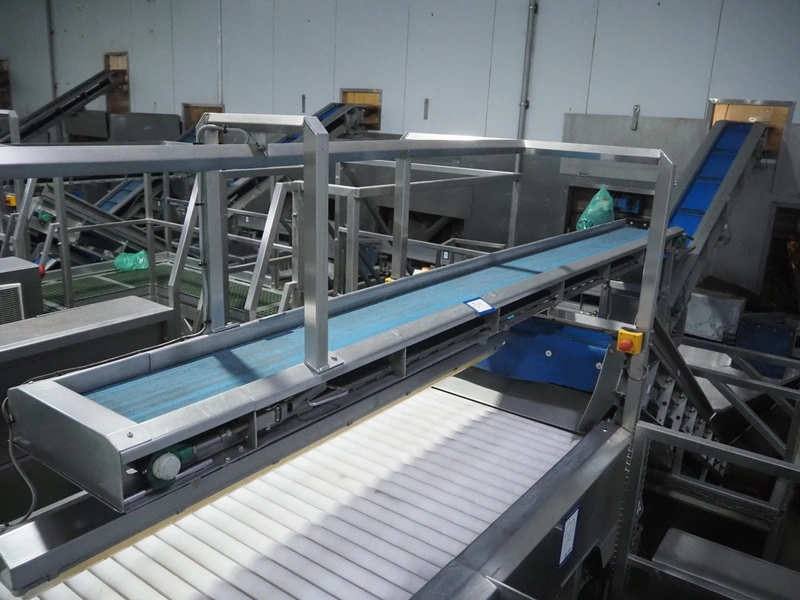 - Elevating belt, plastic belt, belt width: 235 mm, divider width: 205 mm, divider height: 45 mm, distance between dividers: 500 mm, total dimensions: 3550 mm x 600 mm x 1530 mm.