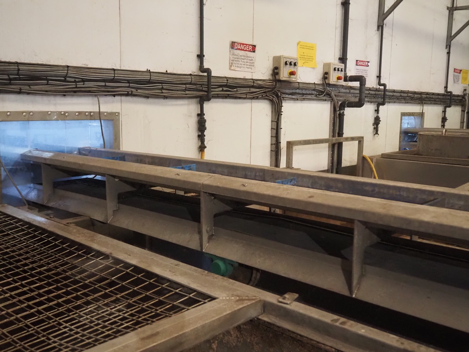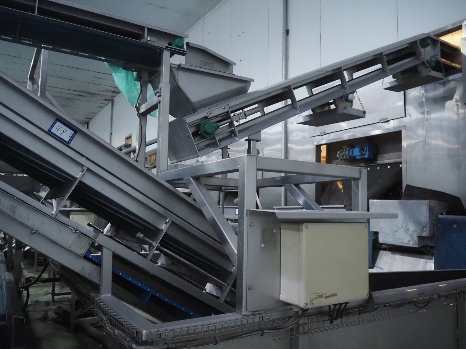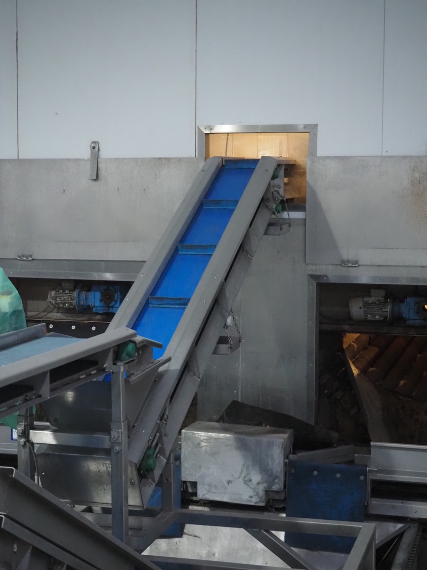 - Elevating belt, plastic belt, belt width: 235 mm, divider width: 205 mm, divider height: 45 mm, distance between dividers: 500 mm, total dimensions: 3550 mm x 600 mm x 1530 mm.