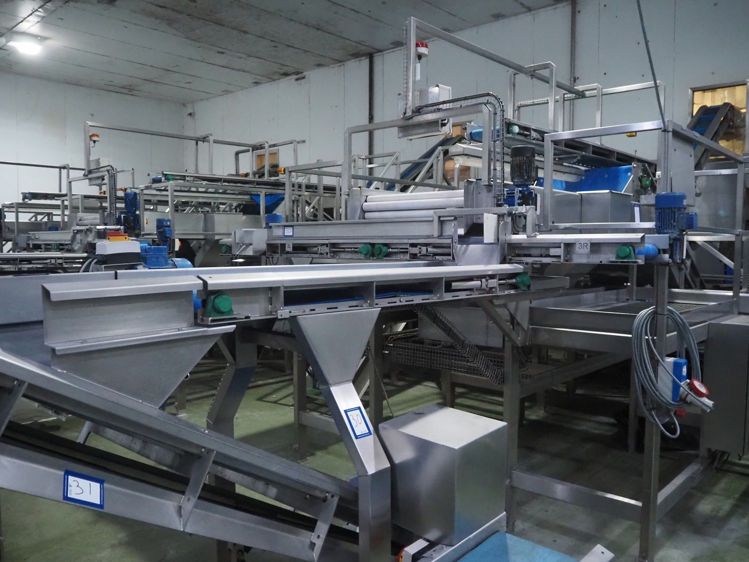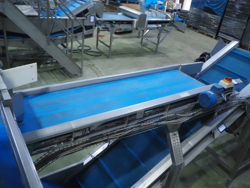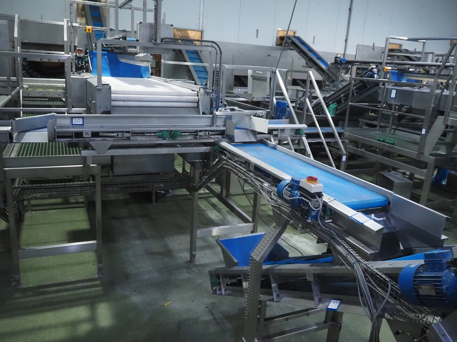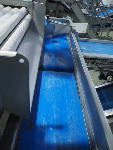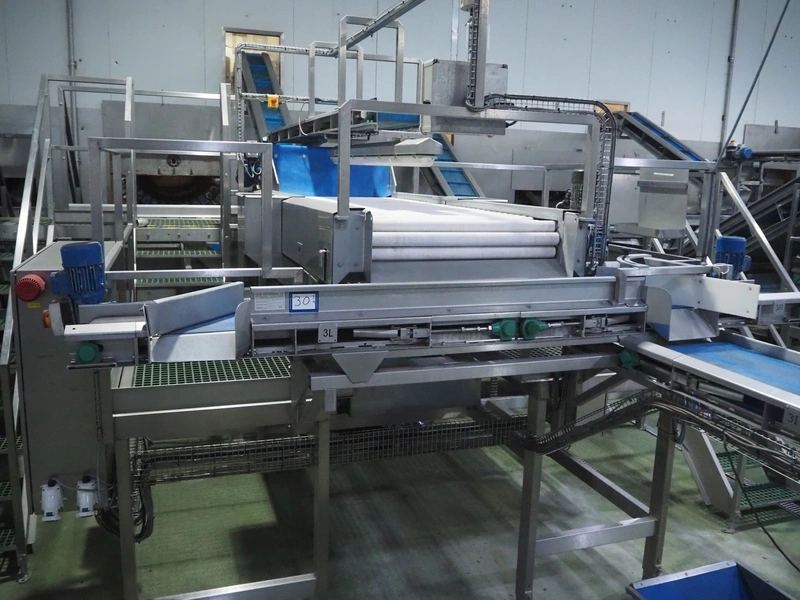 Tong Engineering dividing belt system, type: CONVEYOR, serial number: 14-16983 and 14-16989, year of construction: 2015, plastic belts, belt width: (2x) 300 mm, 2 outputs, clearance: (2x) 250 mm x 110 mm, with transport belt, plastic belt, belt width: 450 mm, total dimensions: 3050 mm x 2700 mm x 1930 mm.