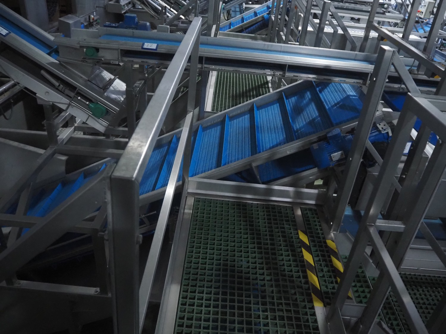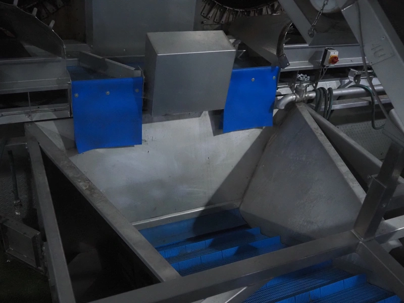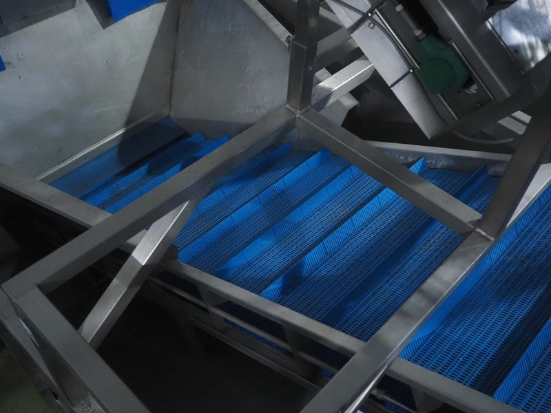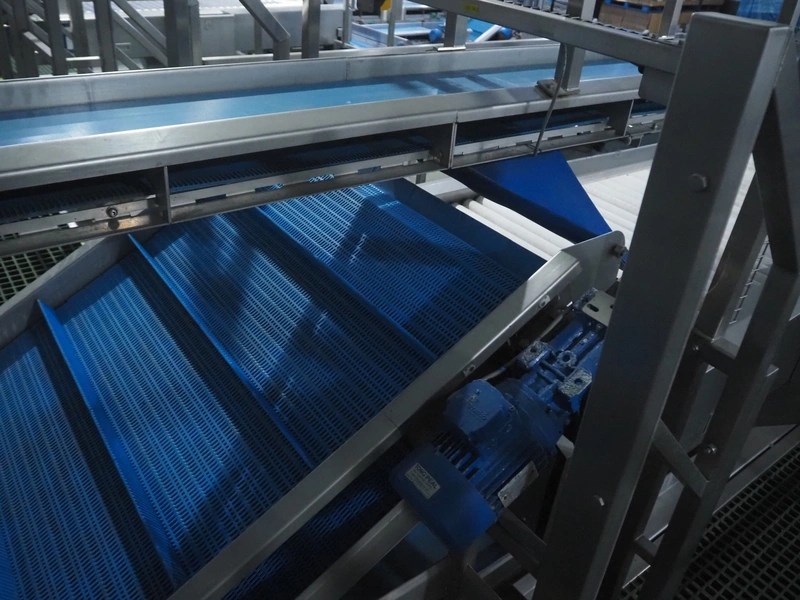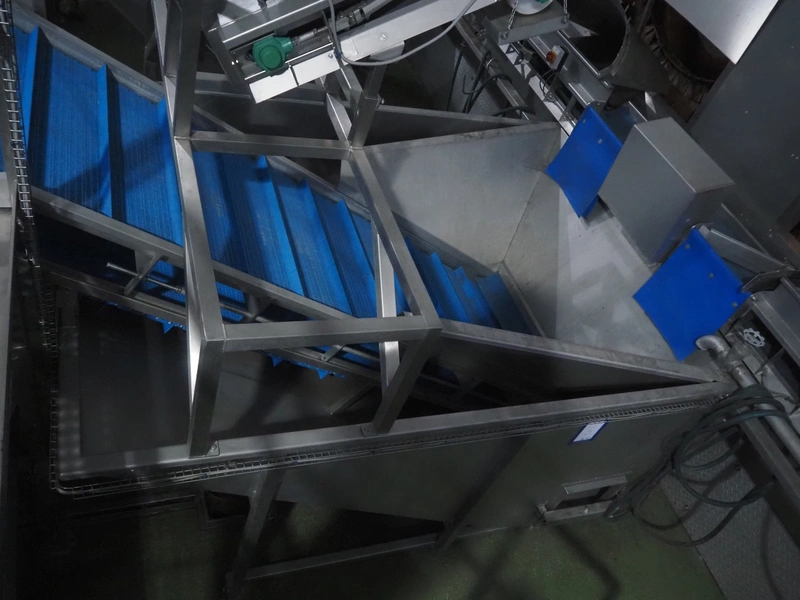 Tong Engineering pre-soak tank with elevating belt, plastic mesh belt, belt width: 890 mm, divider height: 55 mm, divider width: 885, distance between dividers: 250 mm, total dimensions: 2200 mm x 4600 mm x 2550