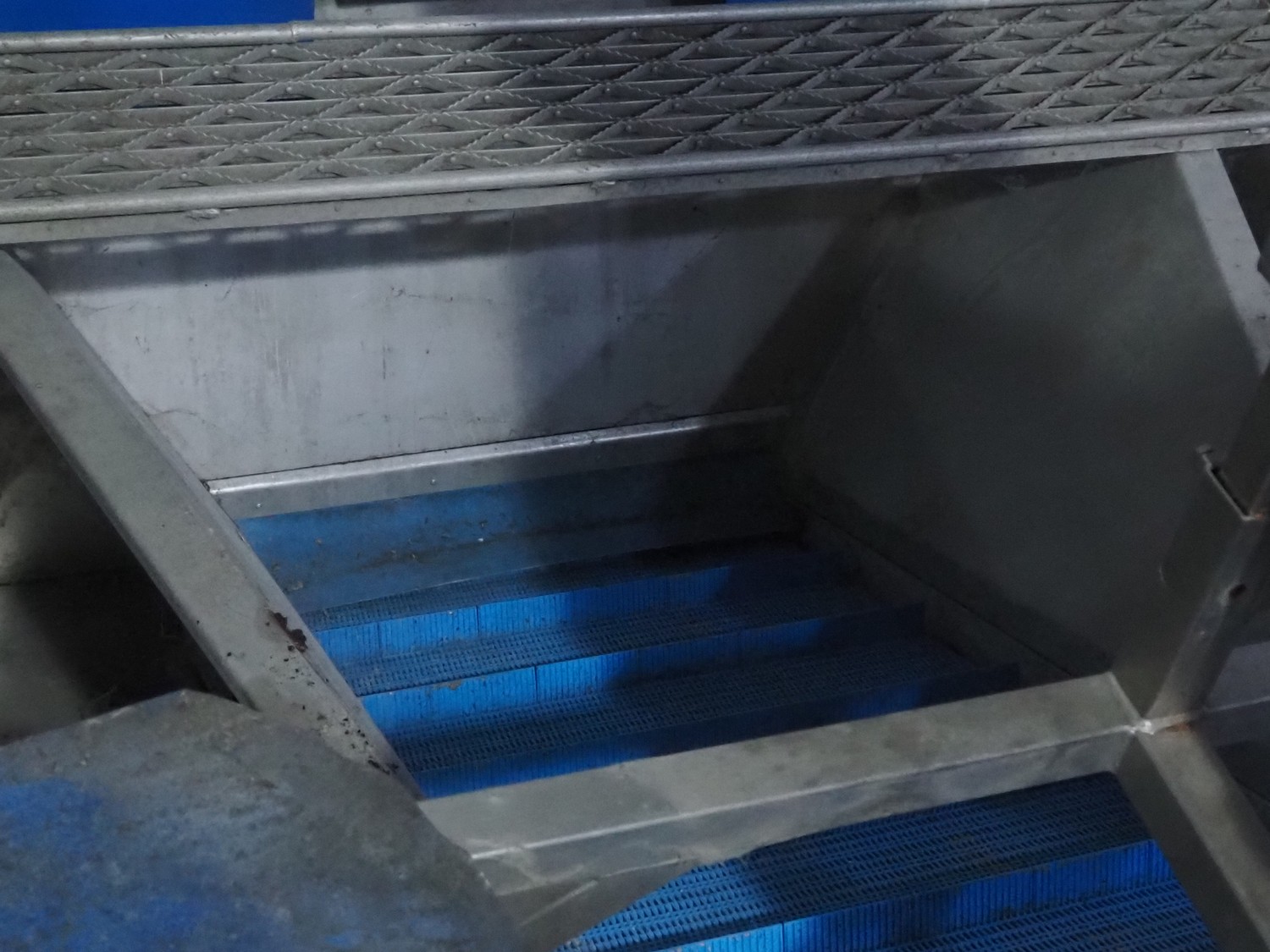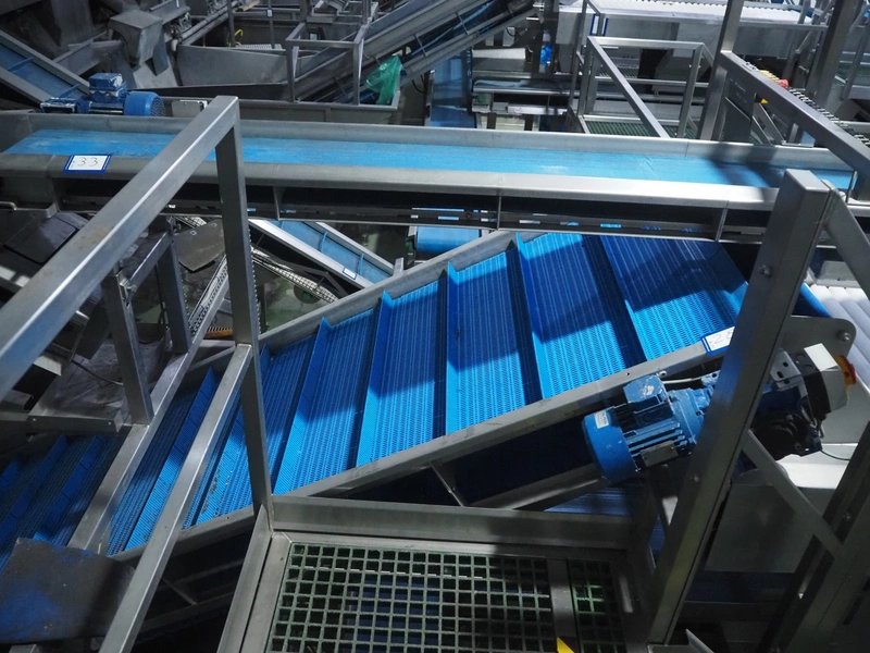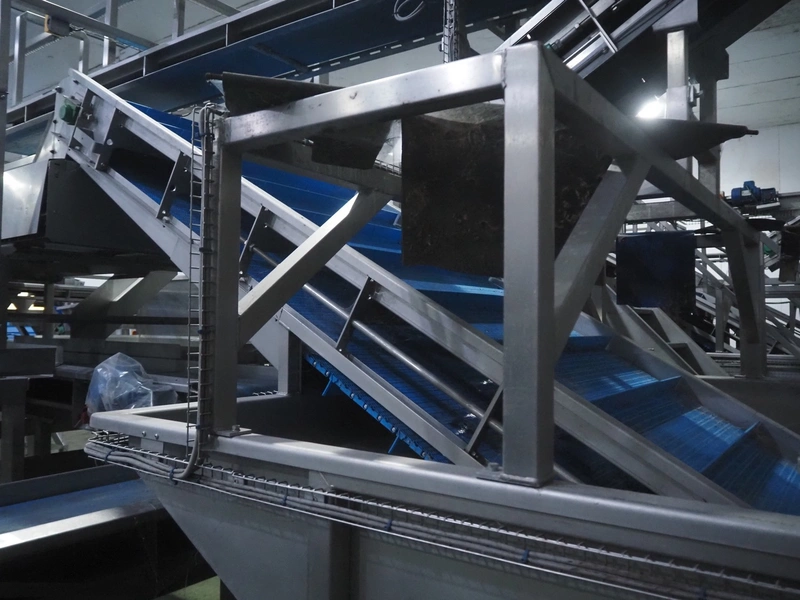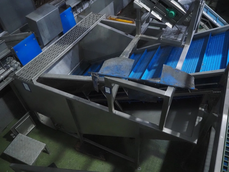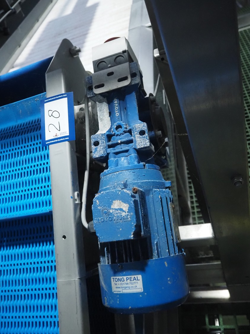 Tong Engineering pre-soak tank with elevating belt, plastic mesh belt, belt width: 890 mm, divider height: 55 mm, divider width: 885, distance between dividers: 250 mm, total dimensions: 2200 mm x 4600 mm x 2550