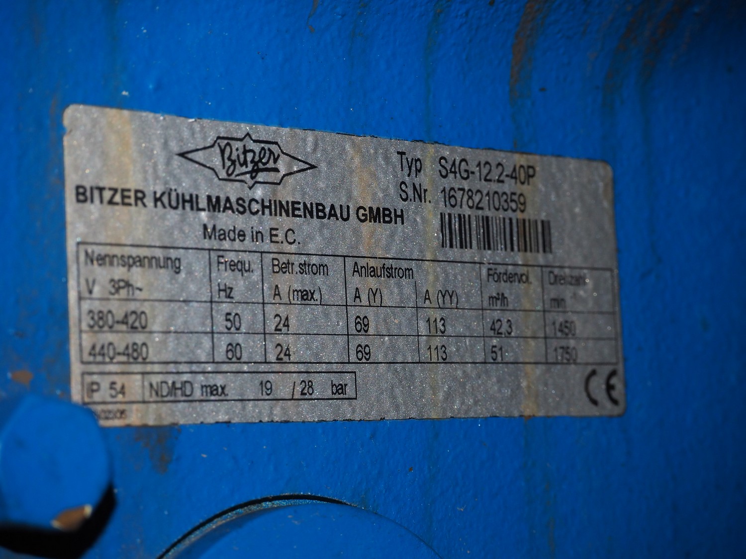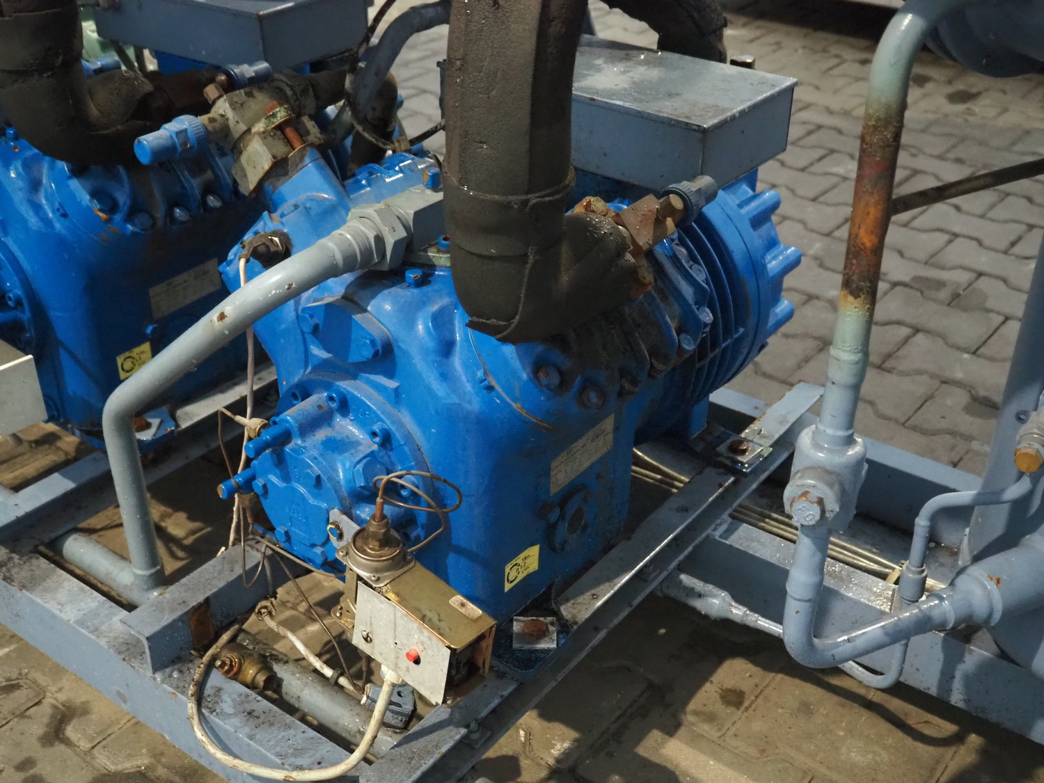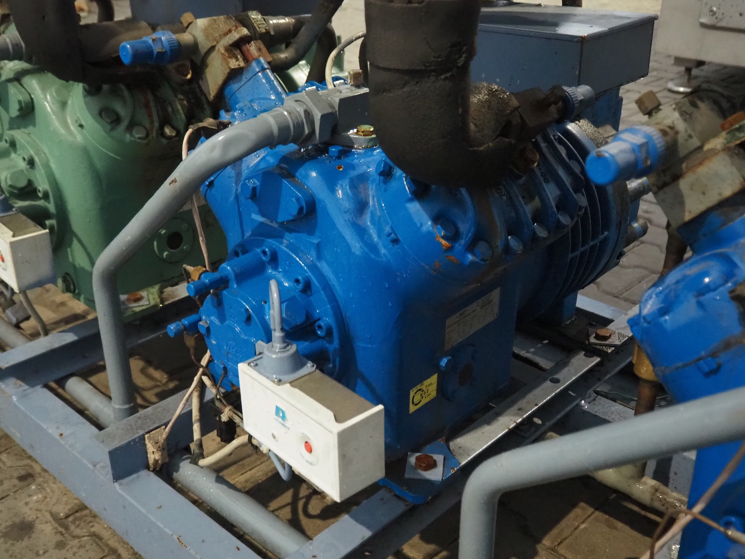 Linde / Bitzer Kühlmaschinenbau GmbH compressor rack, type: VHM 316-4521, serial number: 10309, year of construction: 1993, 25/13 bar, refrigerant: R22, (3x) Bitzer Kühlmaschinenbau GmbH cooling compressors, type: (1x) S4G-12.2 Y, (2x) S4G-12.2-40P, 380 / 420 / 440 / 480 V, 3 Ph, 50/60 Hz, capacity: 42.3/51 m³ per hour, dimensions: 2930 mm x 830 mm x 1870 mm.