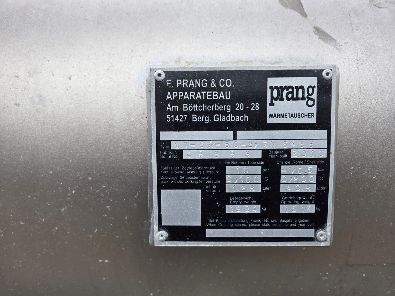 - Prang heat exchanger, type: WT-36-50-2 / ZN 6466, serial number: 49893, year of construction: 2010.