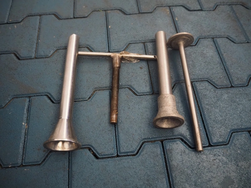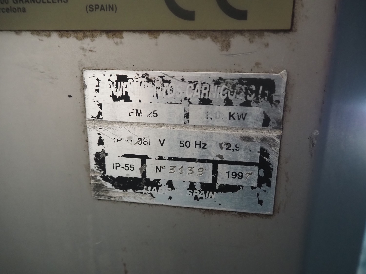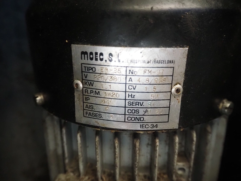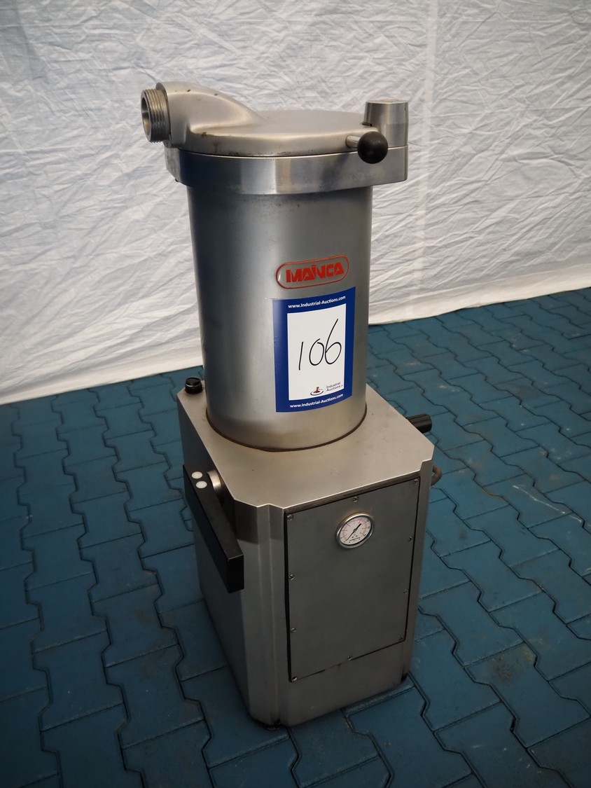 Mainca piston filler, model: EM 25, number: 3139, year of construction: 1997, 380 V, 1 Ph, 50 Hz, 2.9 A, 1.1 kW, volume: 25 liter, dimensions: 470 mm x 460 mm x 1110 mm. Including filling pipes.