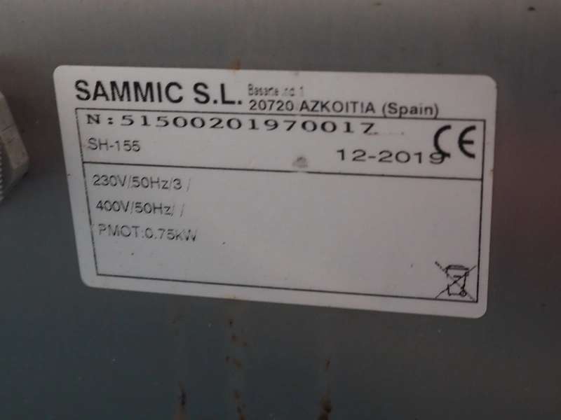 Sammic S.L. bandsaw, type: SH-155, serial number: 51500201970017, year of construction: 12-2019, 230/400 V, 3 PH, 50 Hz, table dimensions: 430 mm x 390 mm, total dimensions: 440 mm x 420 mm x 850 mm.