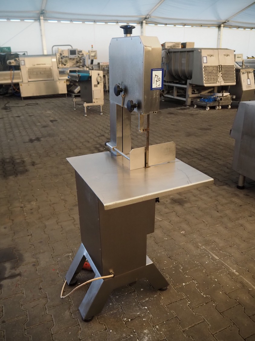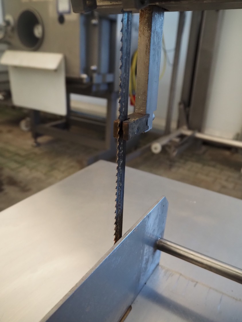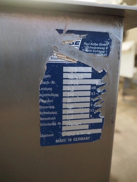 Kolbe bandsaw, type: 4601, machine number: 46032, year of construction: 1901/91, 380 V, 3 Ph, 50 Hz, 3.6 A, 1.5 kW, dimensions table: 660 mm x 600 mm, total dimensions: 680 mm x 600 mm x 1600 mm.