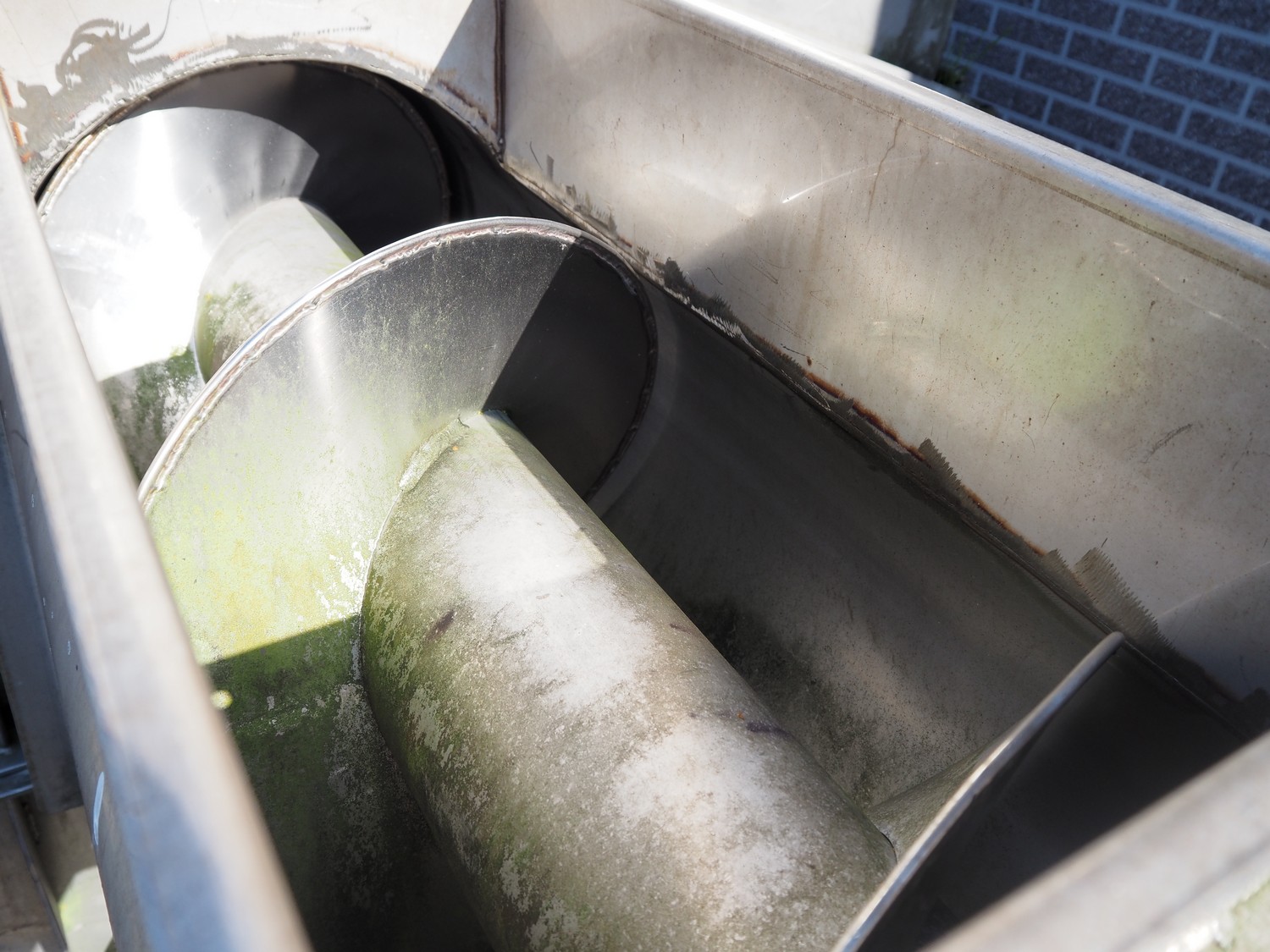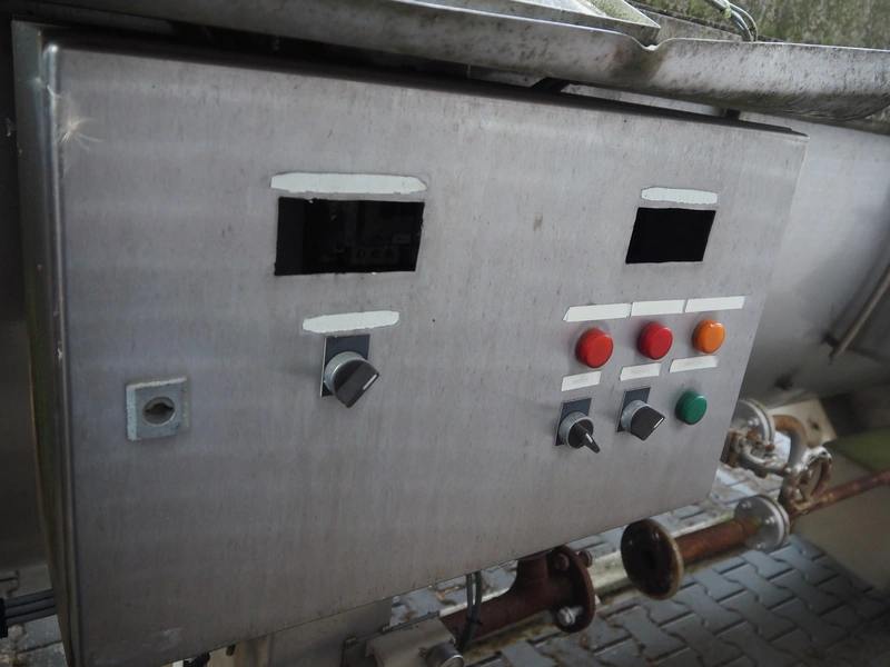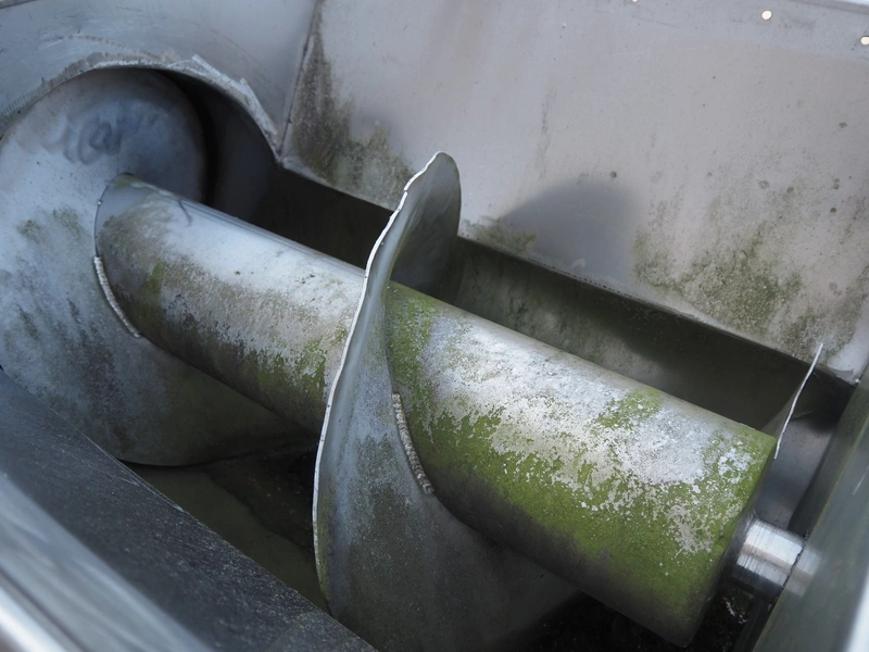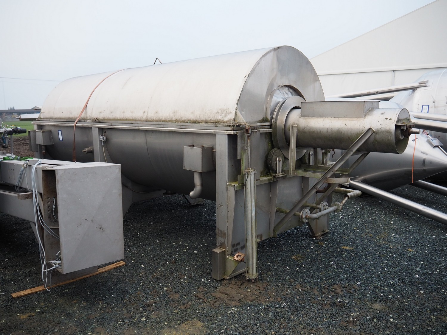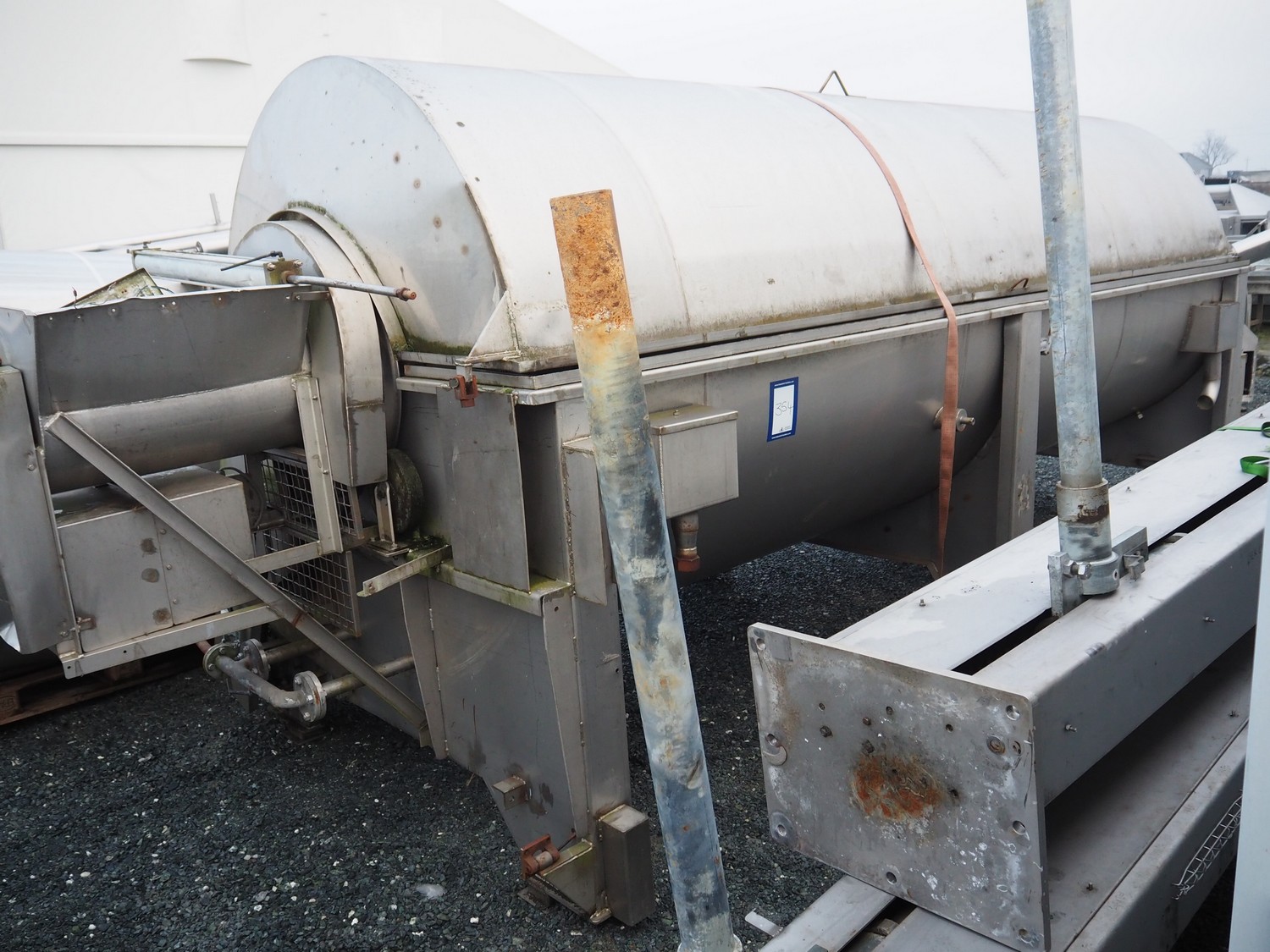 S/s blancher, screw diameter: Ø 430 mm, tier: 400 mm, drum diameter: Ø 1700 mm, total dimensions: 9000 mm x 2600 mm x 2800 mm.