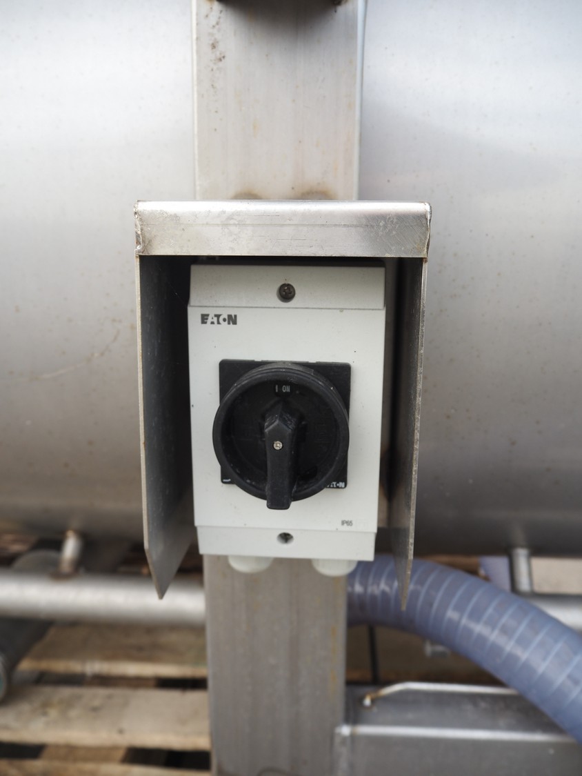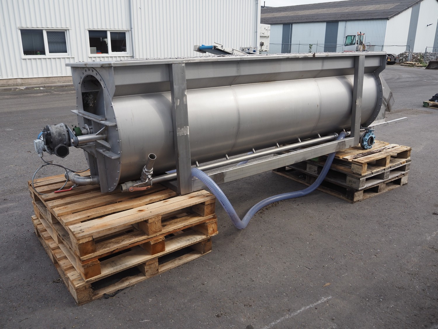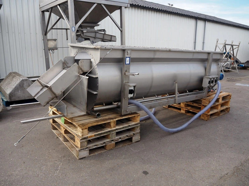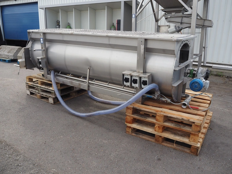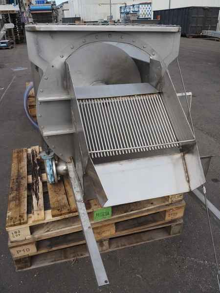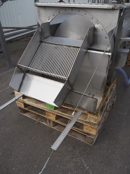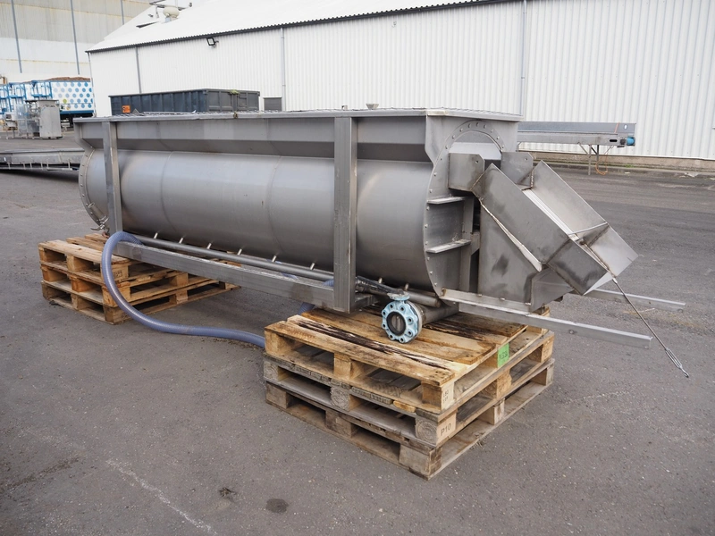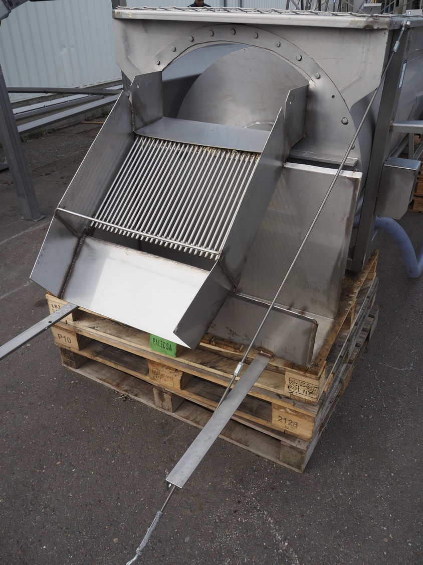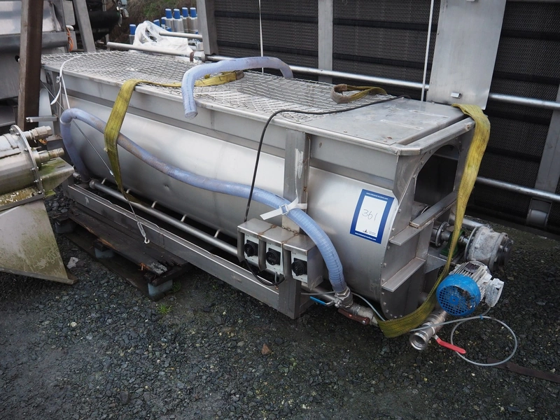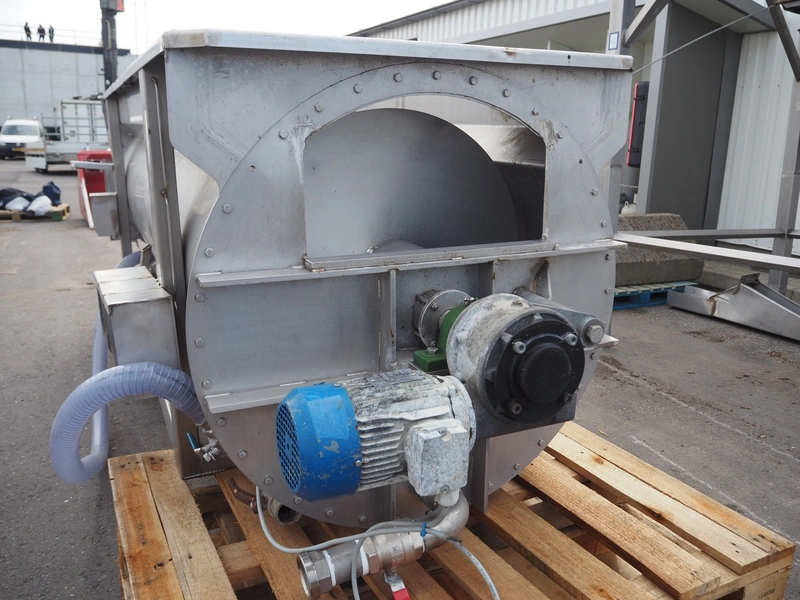 Blanching screw, inside dimensions: ø 800 mm x 3000 mm, tier: 300 mm, screw width: 600 mm, total dimensions: 4400 mm x 1100 mm x 950 mm.