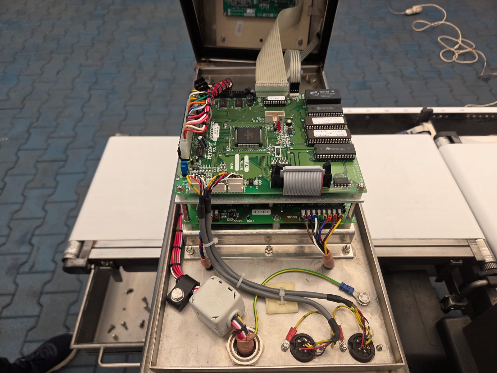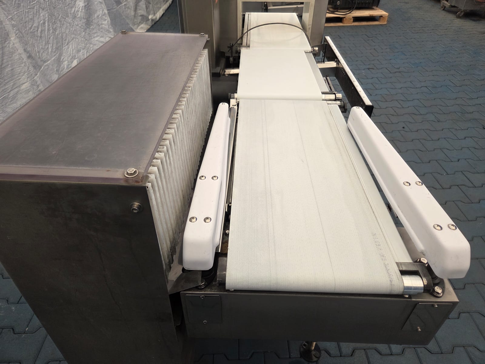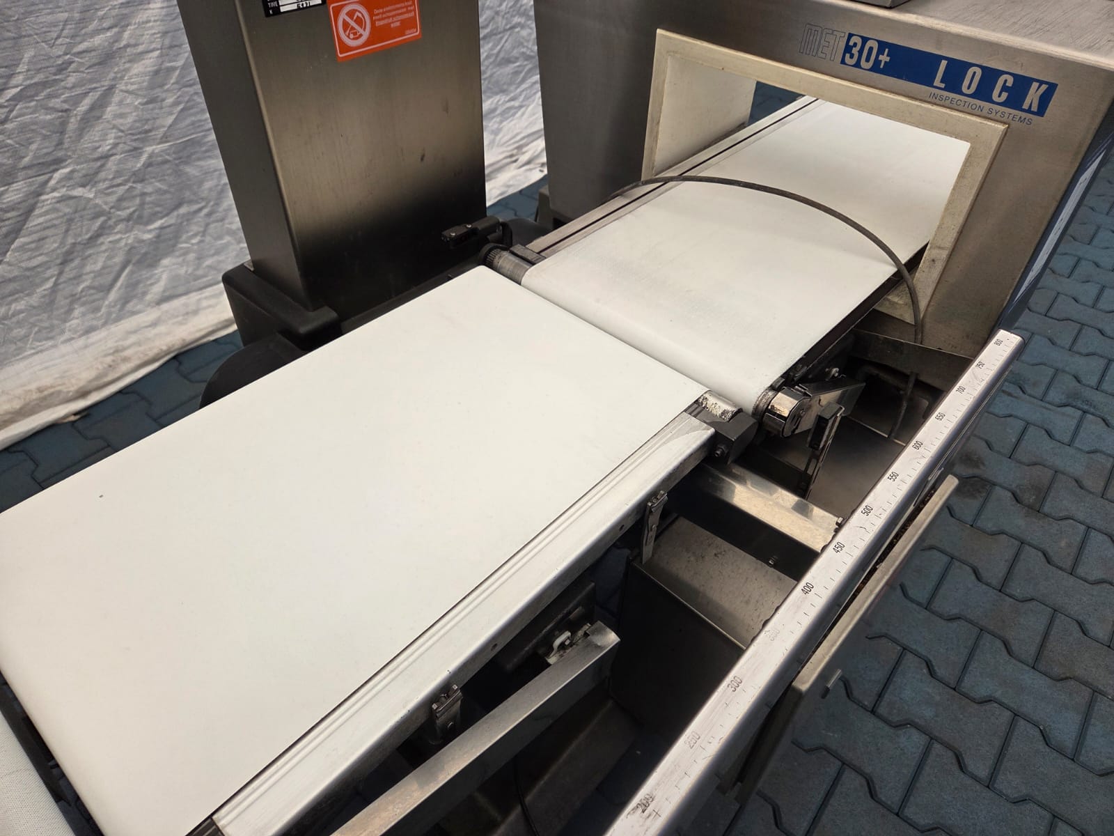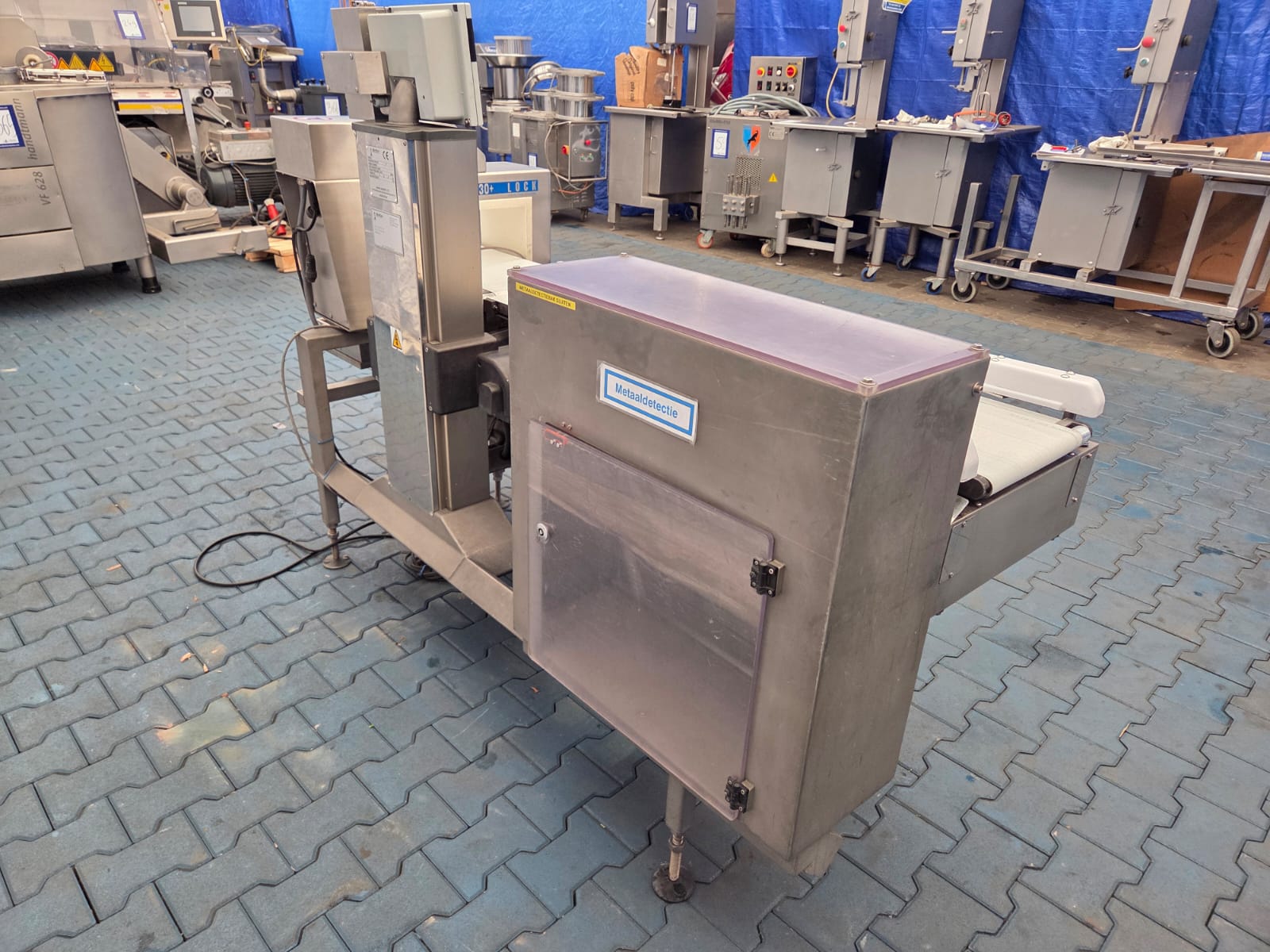 Ishida checkweigher with Lock metal detector, type: DACS-N-030-SB-PB-1, serial number: 554751, year of construction: 02/2005, weighing range: max 3000 g, 240 V, 1 Ph, 50 Hz, 2 A, Lock metal detector type: MET 30+, model: 3F, serial number: 0805.491, plastic belt, belt width: 340 mm, clearance: 360 mm x 140 mm, total dimensions: 2300 mm x 850 mm x 1500 mm.