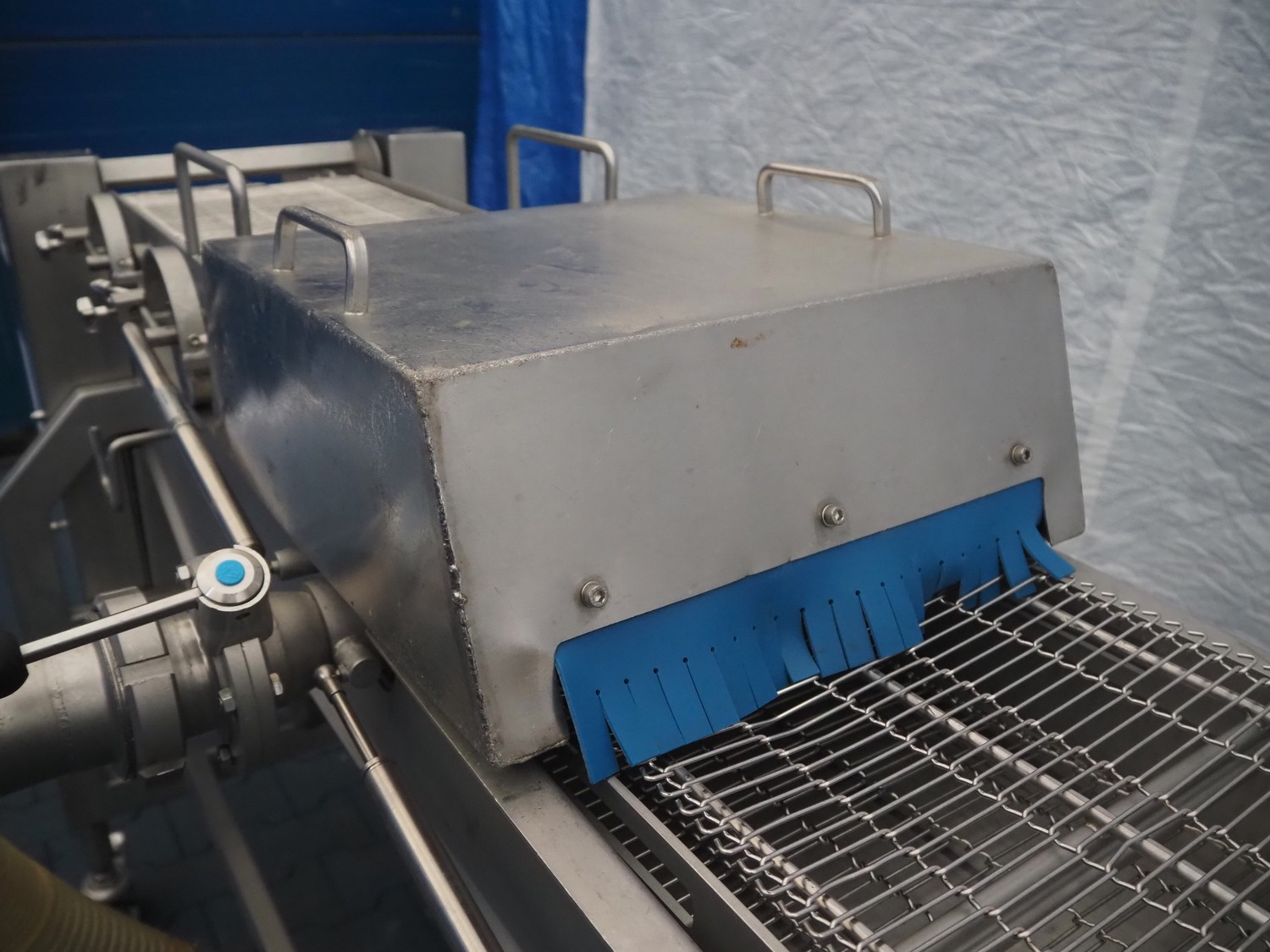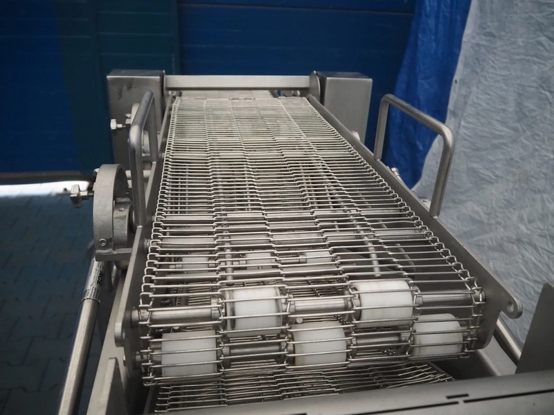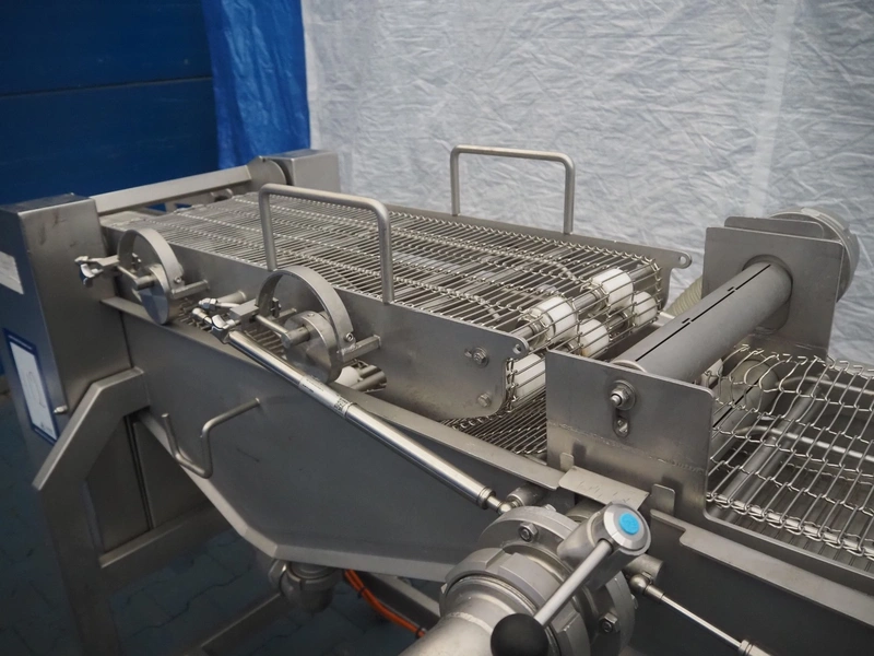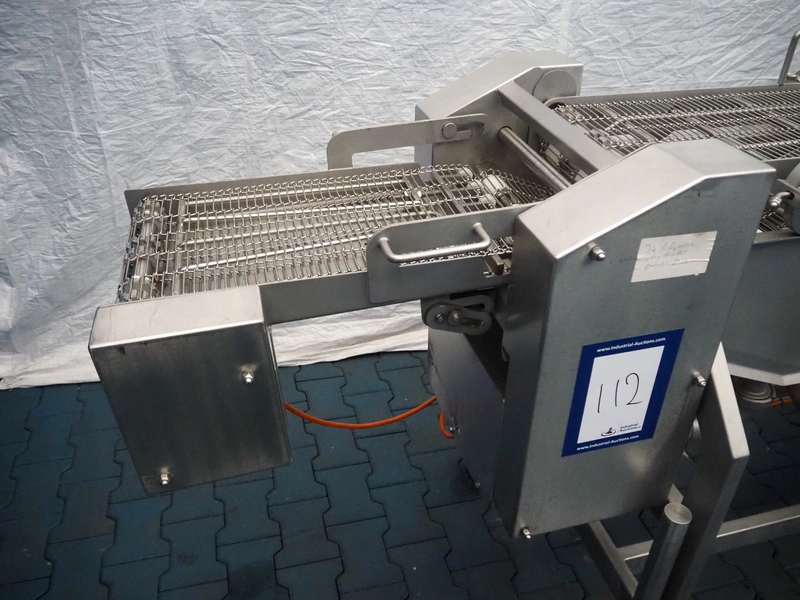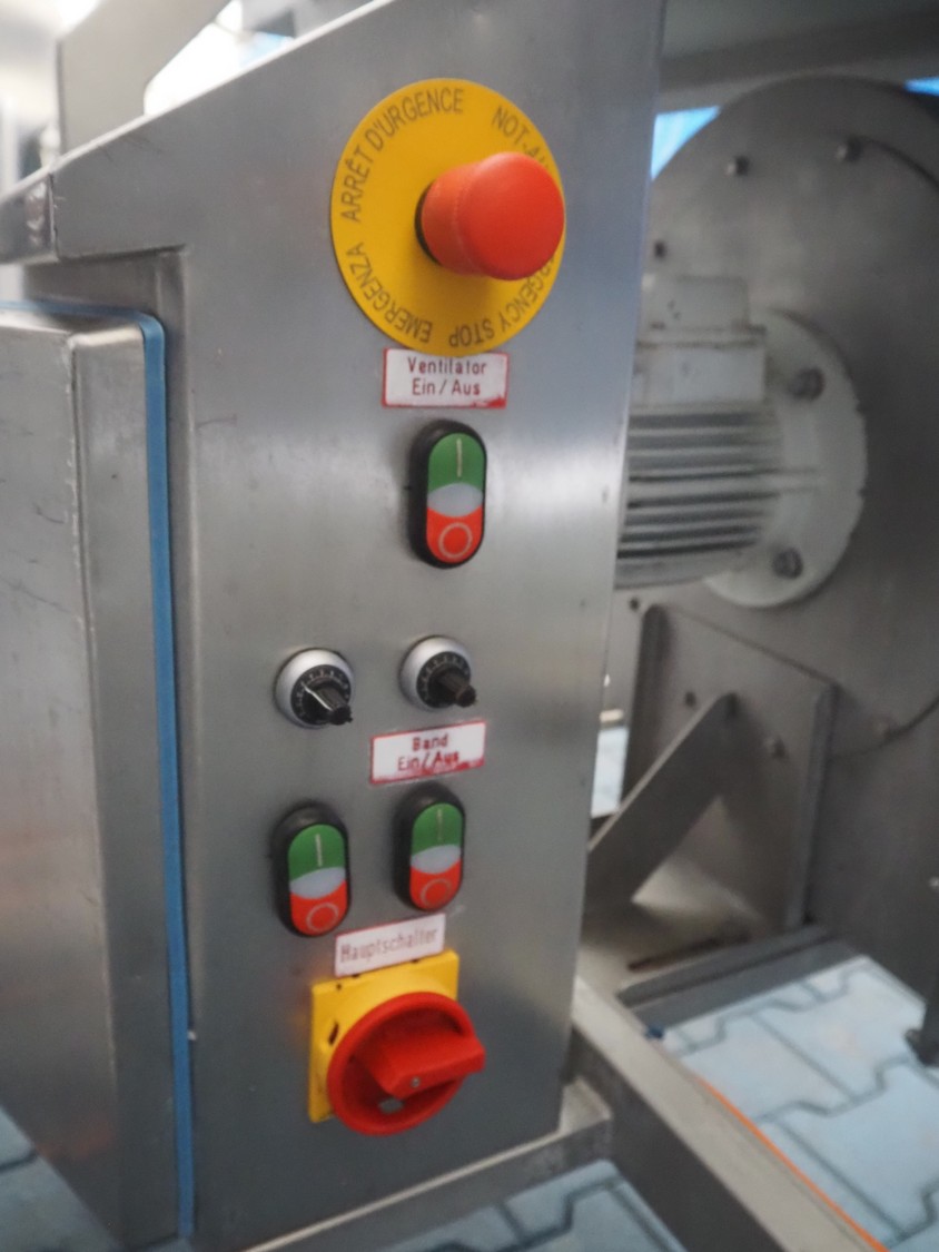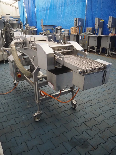 Schomaker Convenience Technik GmbH mobile coating machine, type: SMD 300, serial number: 280515, s/s mesh belt, belt width: 300 mm, total dimensions: 2500 mm x 1000 mm x 1350 mm.