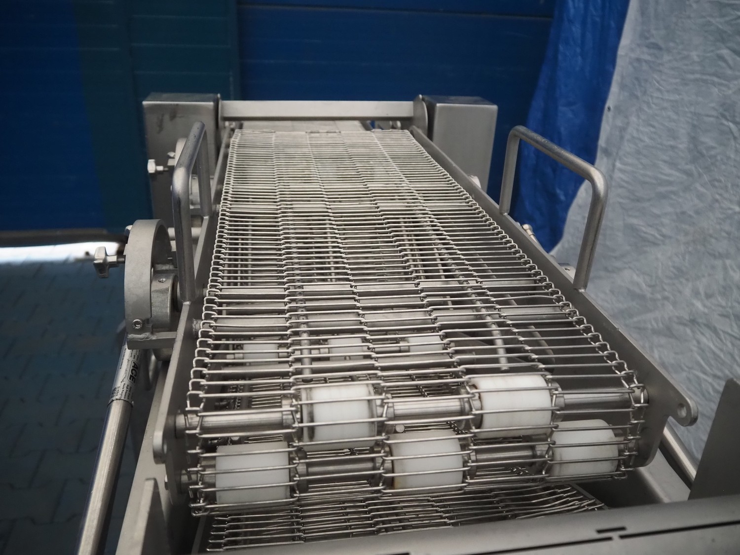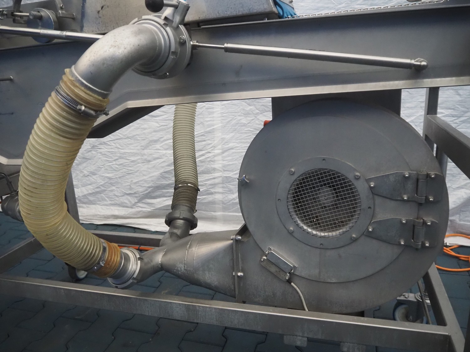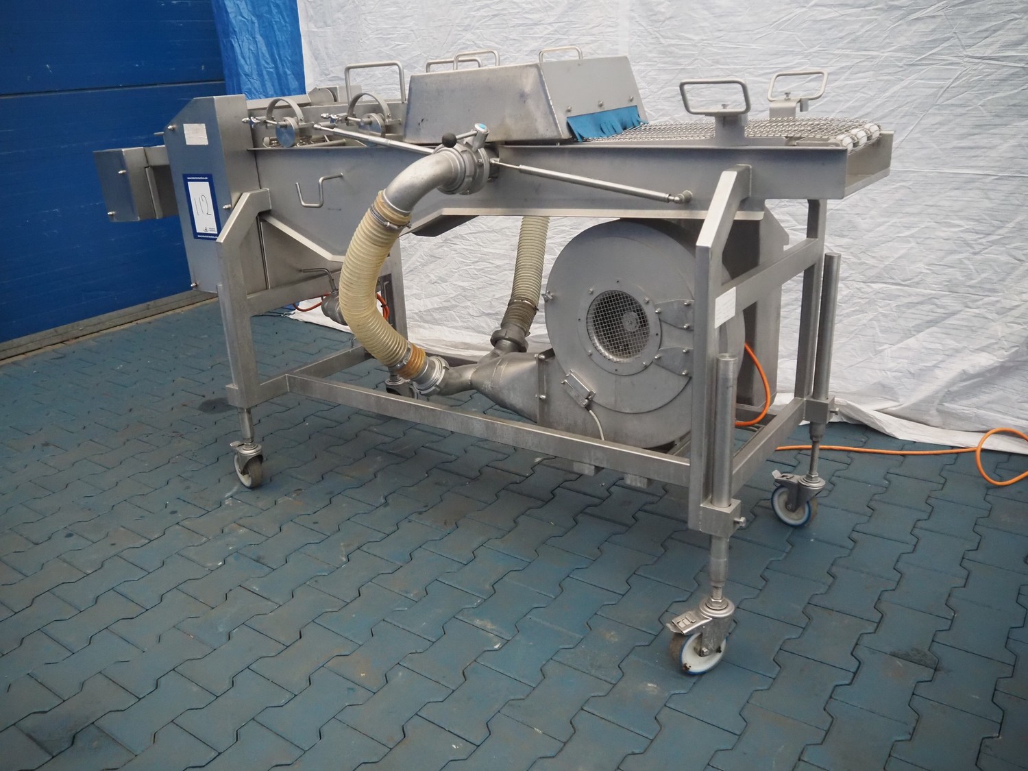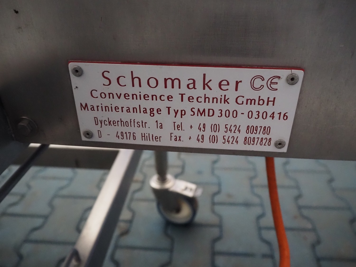 Schomaker Convenience Technik GmbH mobile coating machine, type: SMD 300, serial number: 280515, s/s mesh belt, belt width: 300 mm, total dimensions: 2500 mm x 1000 mm x 1350 mm.