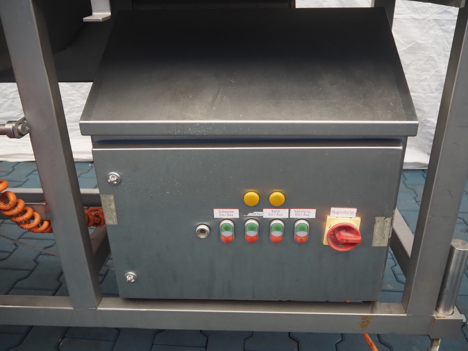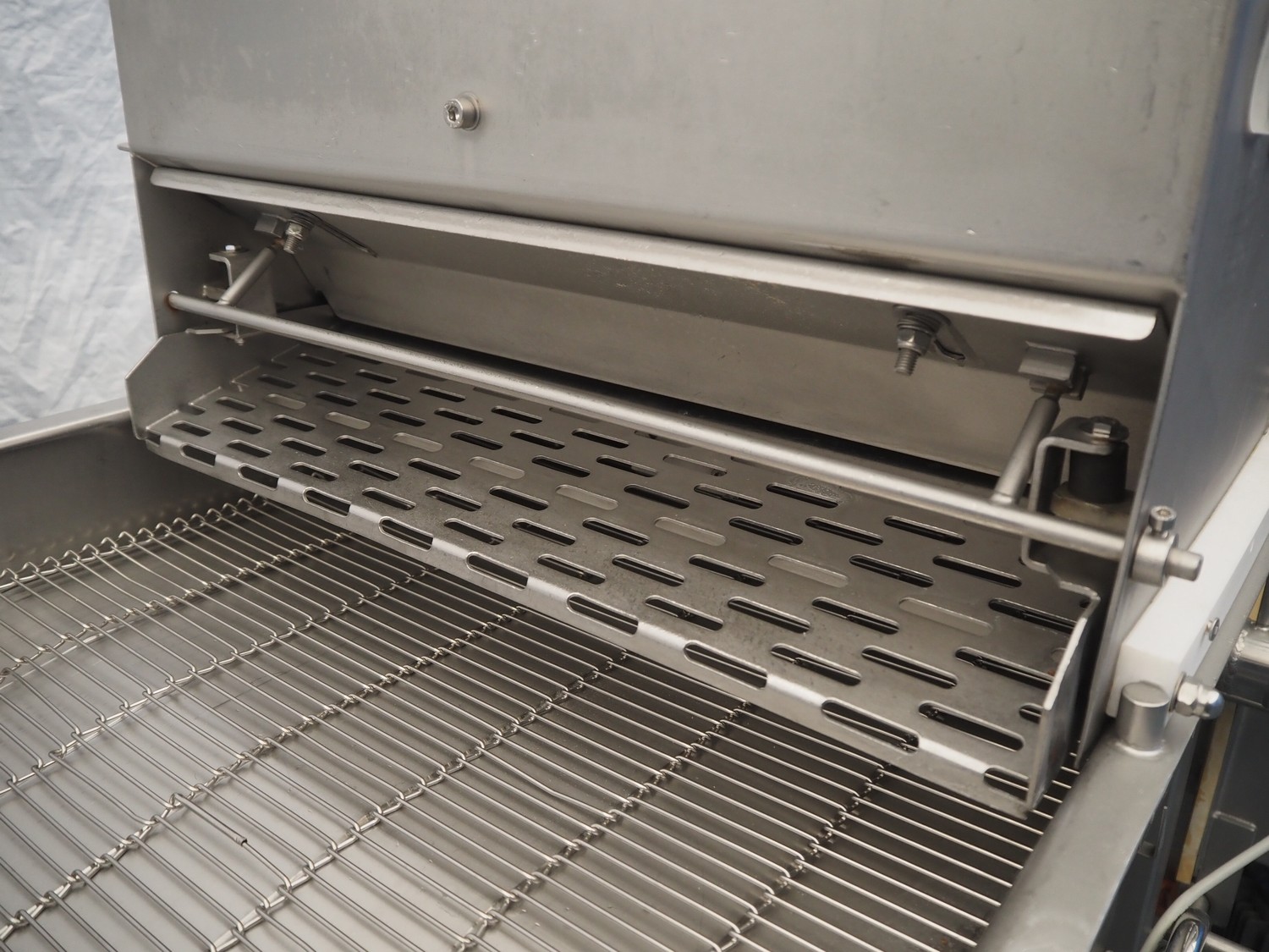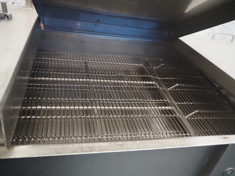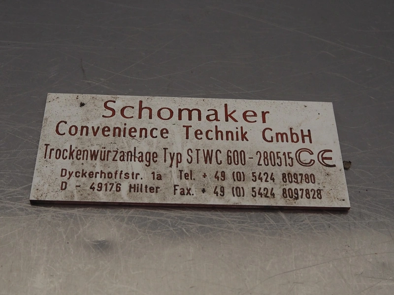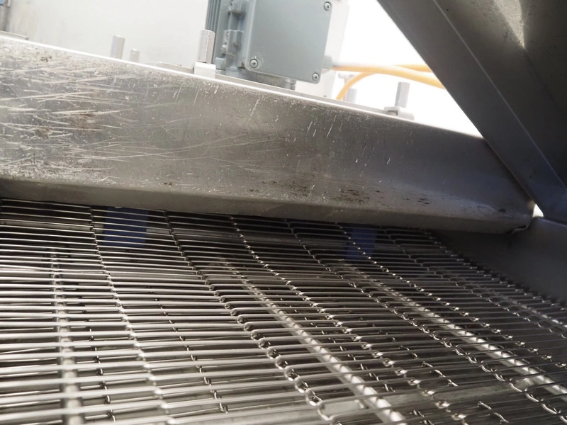 Mobile breading machine, type: STWC-600, serial number: 280515, s/s mesh belt, belt width: 600 mm, total dimensions: 2900 mm x 900 mm x 1930 mm.