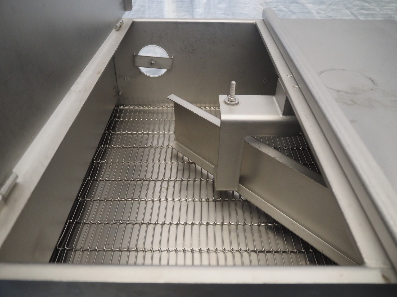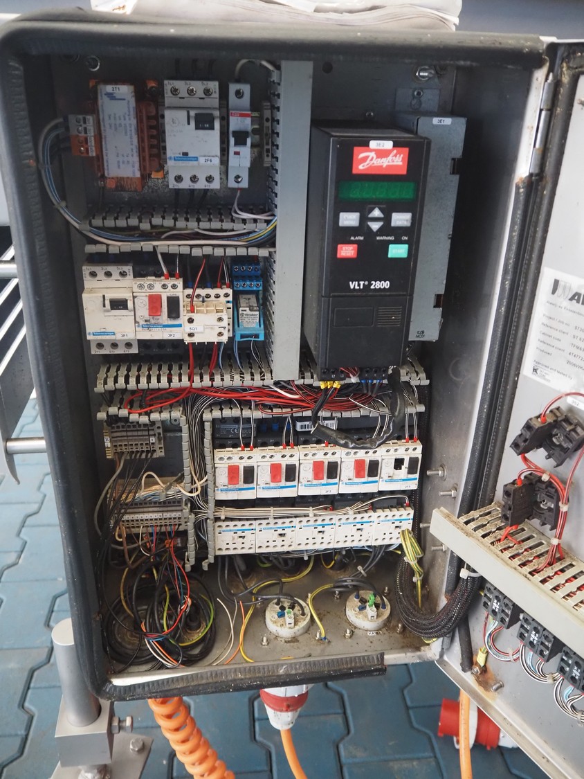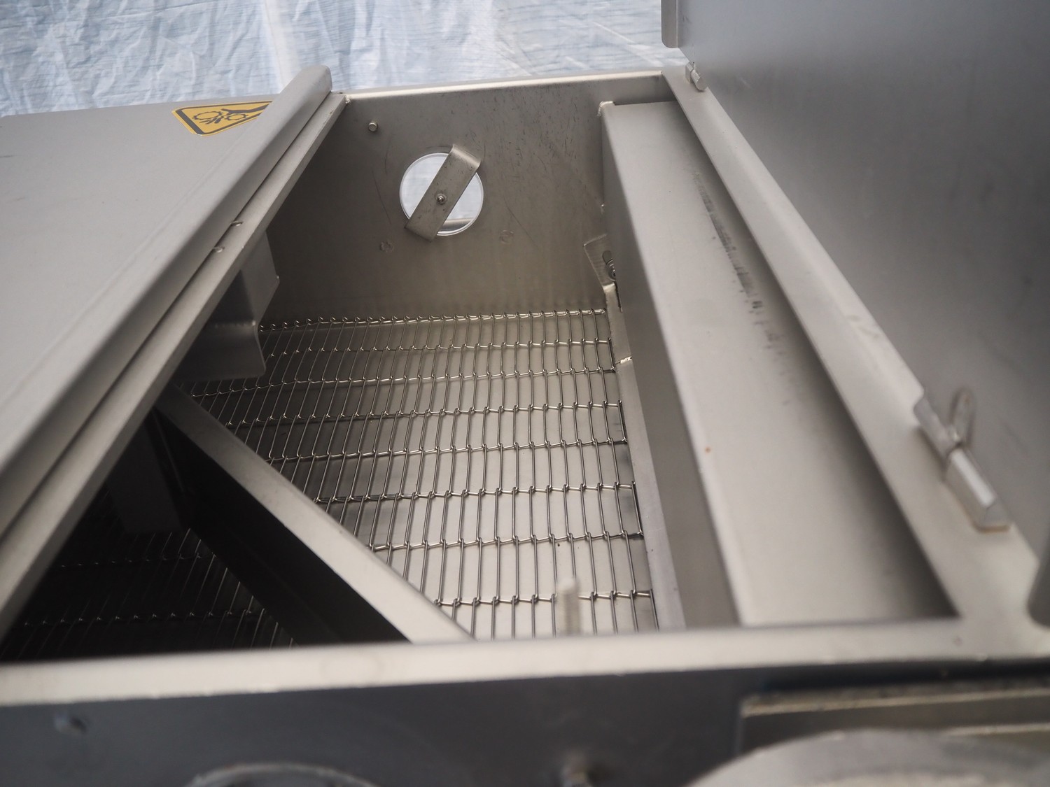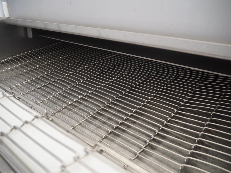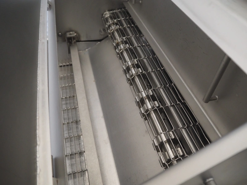 Stork mobile coating machine, s/s mesh belt, belt width: 600 mm, total dimensions: 3000 mm x 1100 mm x 1730 mm.