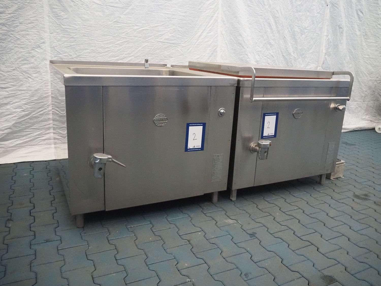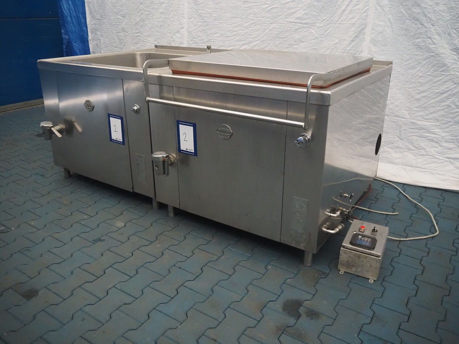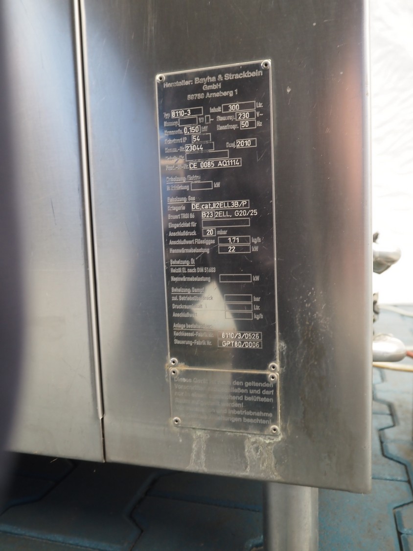 Bastra double cooking vessel, type: 8110-3, serial number: 23044, year of constuction: 2010, 230 V, 50 Hz, 150 W, gas heated, inside dimensions: (2x) 900 mm x 805 mm x 420 mm, total dimensions: (2x) 1420 mm x 1100 mm x 975 mm.