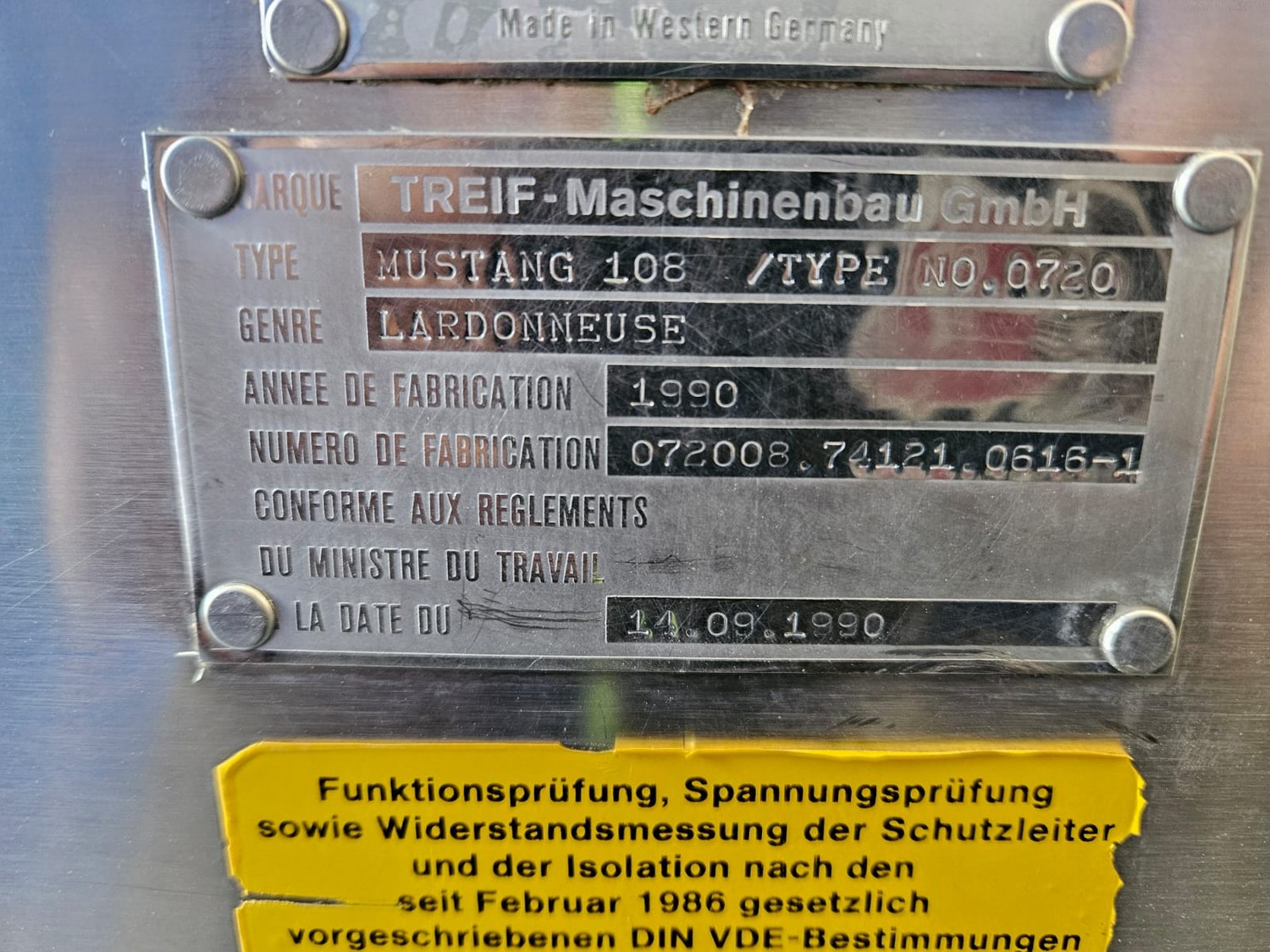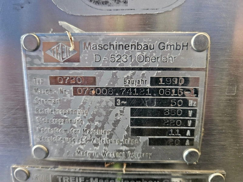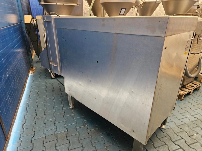 Treif Maschinenbau GmbH dicer, type: 0720, machine number: 072008.74121.0678-1, year of construction: 1990, 220/330 V, 3 Ph, 50 Hz, 11/20 A, chamber: 550 mm x 120 mm, total dimensions: 2300 mm x 900 mm x 1450 mm. Without grids.