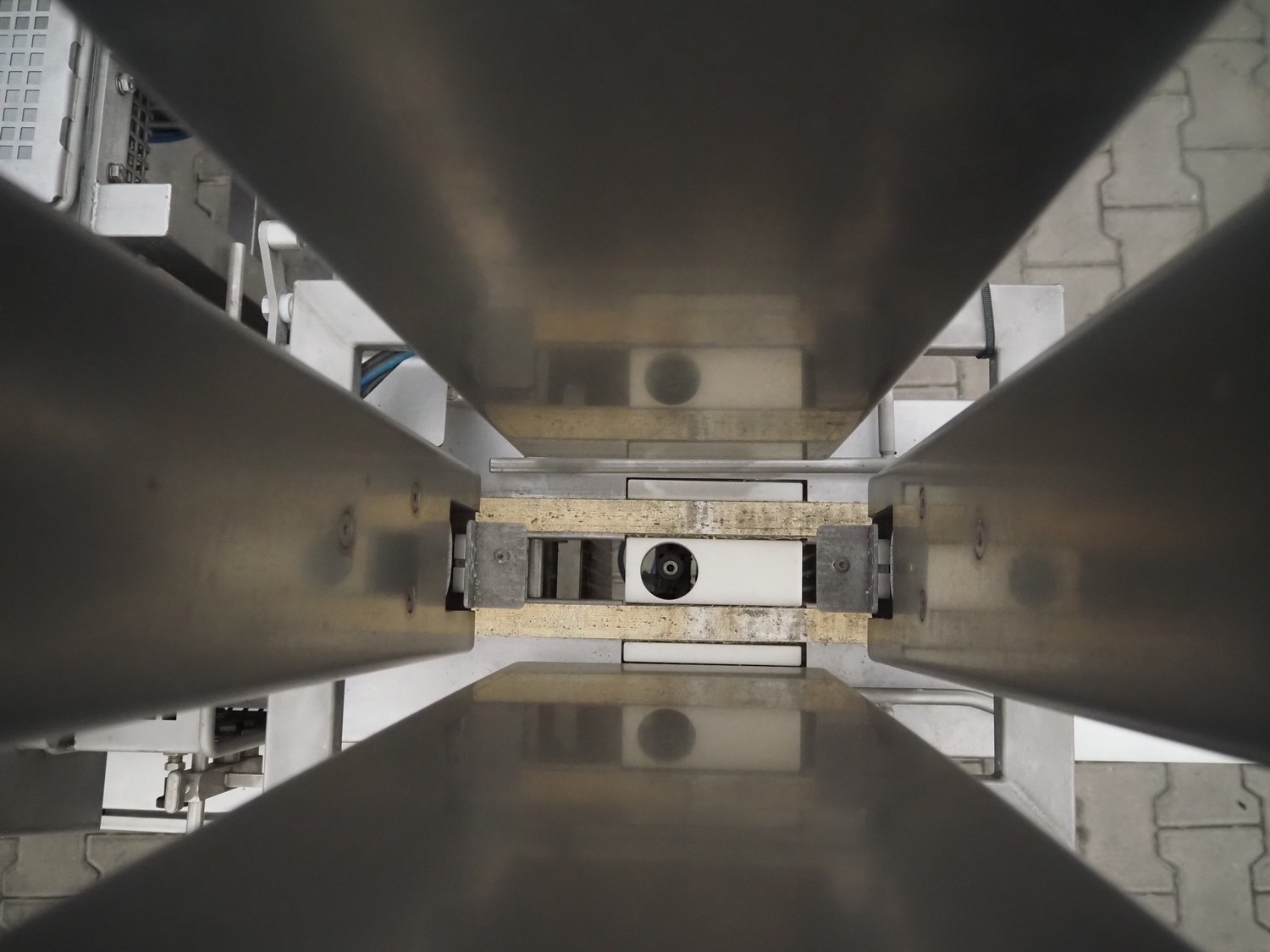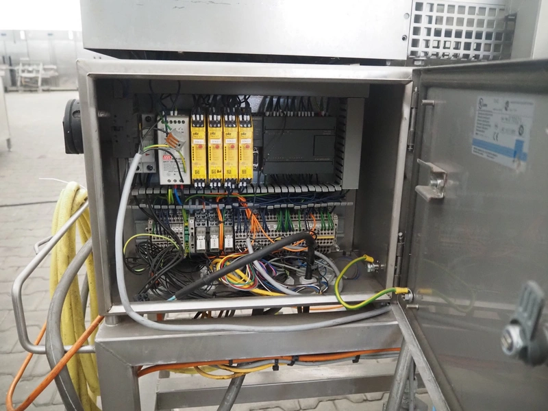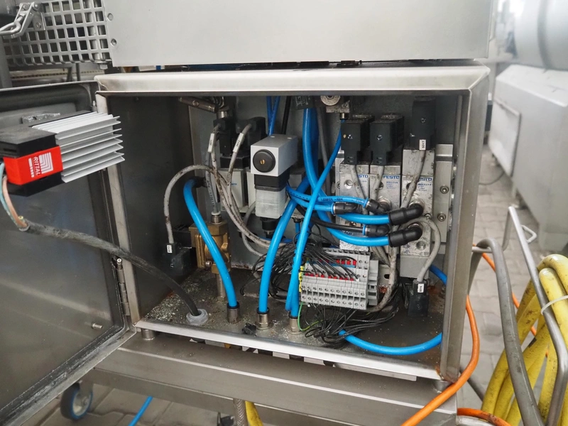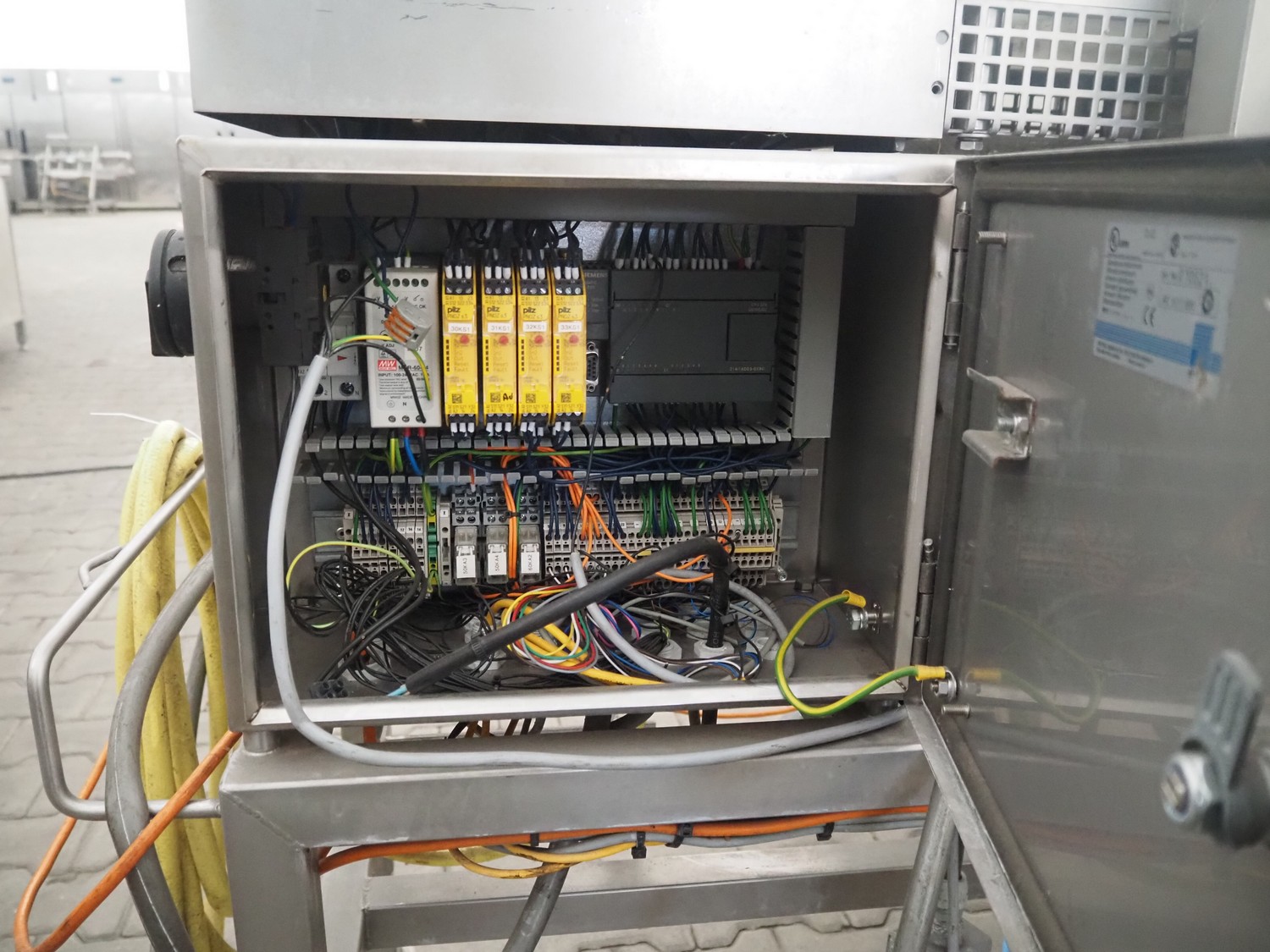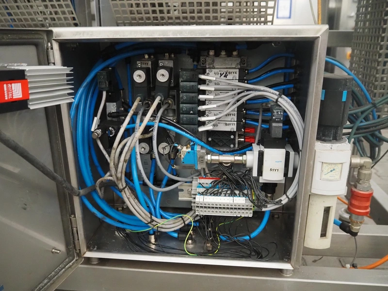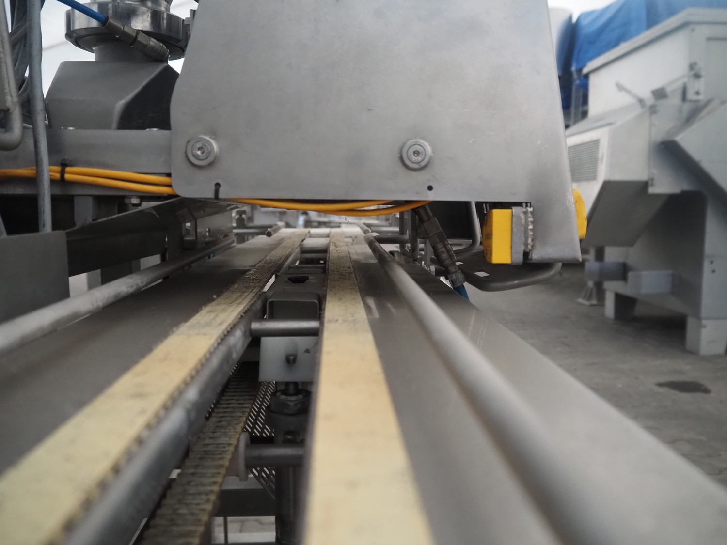 Risco / TAP Machinebouw BV mobile hamburger forming machine with denester, type forming machine: TVM260 PN, serial number: 090-09097, year of construction: 2012, dye: (2x) Ø 100 mm, plastic belt, belt width: (2x) 25 mm and 110 mm, total dimensions: 2000 mm x 1200 mm x 1660 mm.