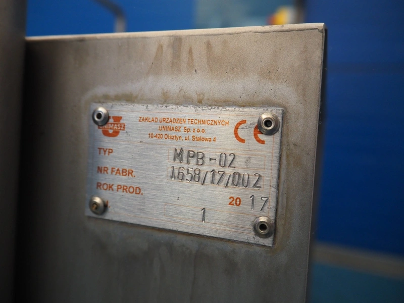 Unimasz sole cleaner, type: MPB-02, serial number: 1658/17/002, year of construction: 2017, brush length: 1000 mm, total dimensions: 1900 mm x 1000 mm x 1250 mm.