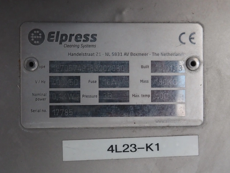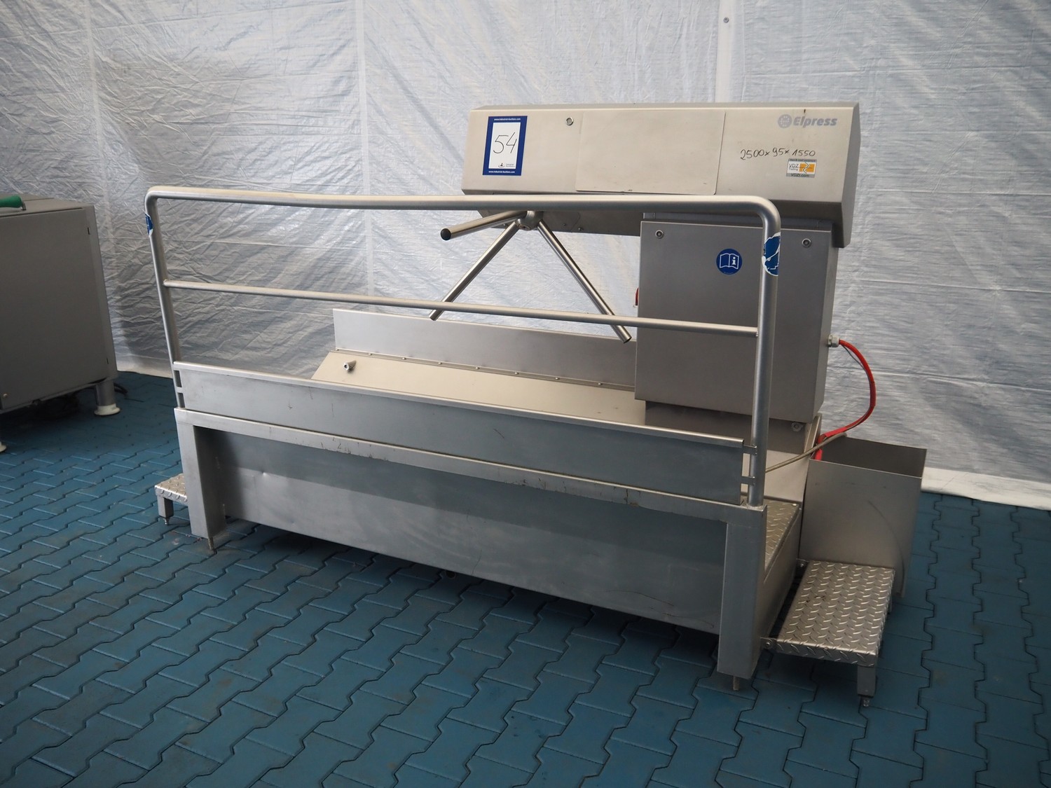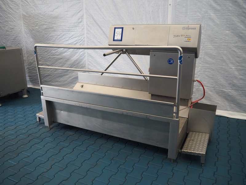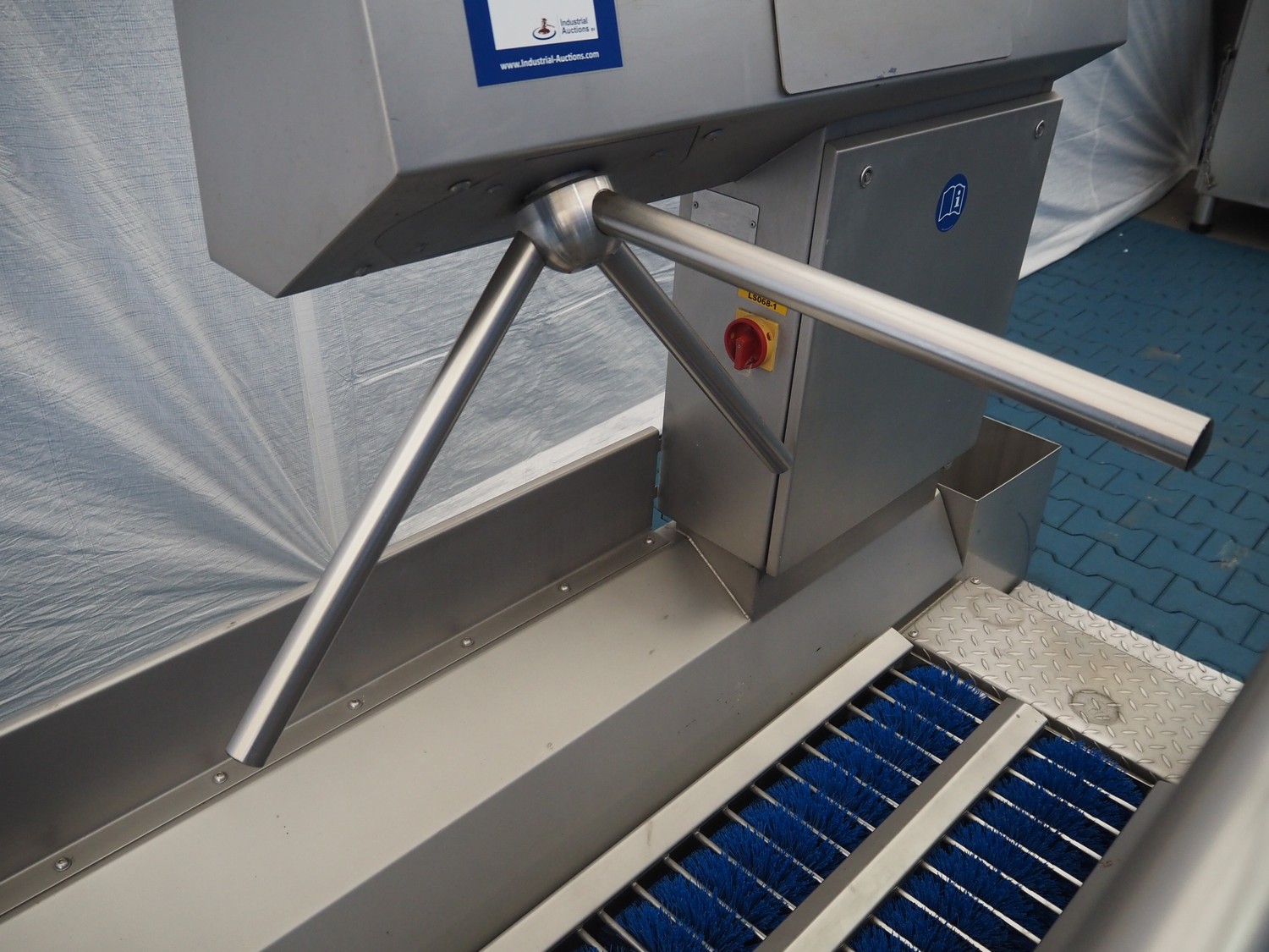 Elpress Cleaning Systems hygiene station, consisting of: sole cleaner and tourniquet, type: 12705749-83202080, serial number: 17785, year of construction: 14-01-2013, 400 V, 50 Hz, 16 A, 0.1 kW, maximum pressure: 3 bar, maximum temperature: 40 °C, weight: 180 kg, brush length: (2x) 1500 mm, total dimensions: 2630 mm x 920 mm x 1550 mm.