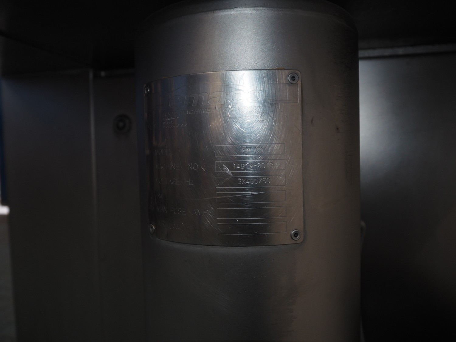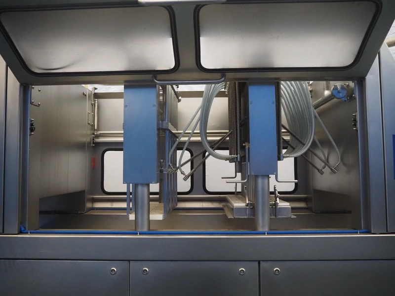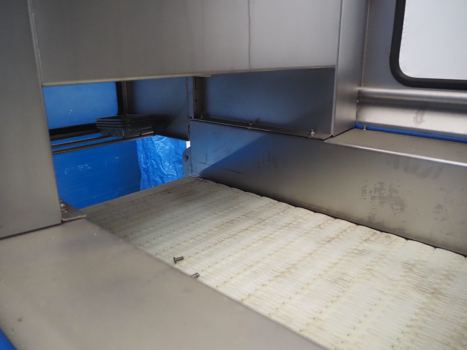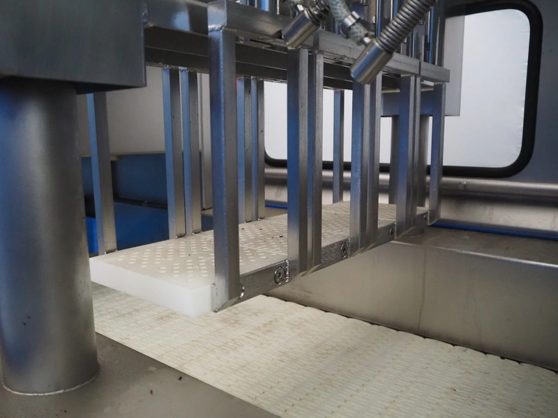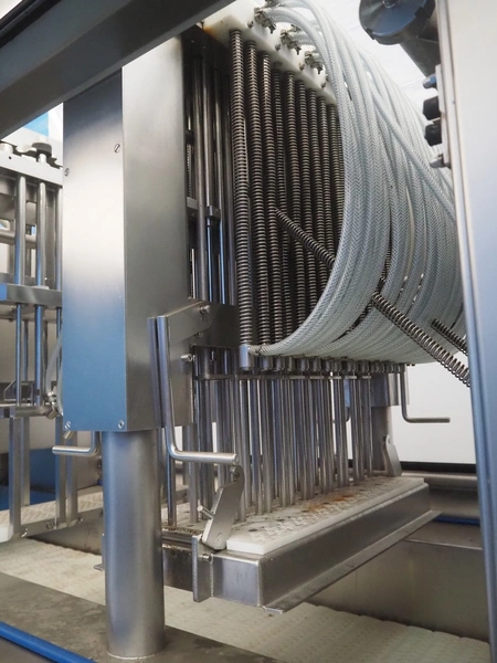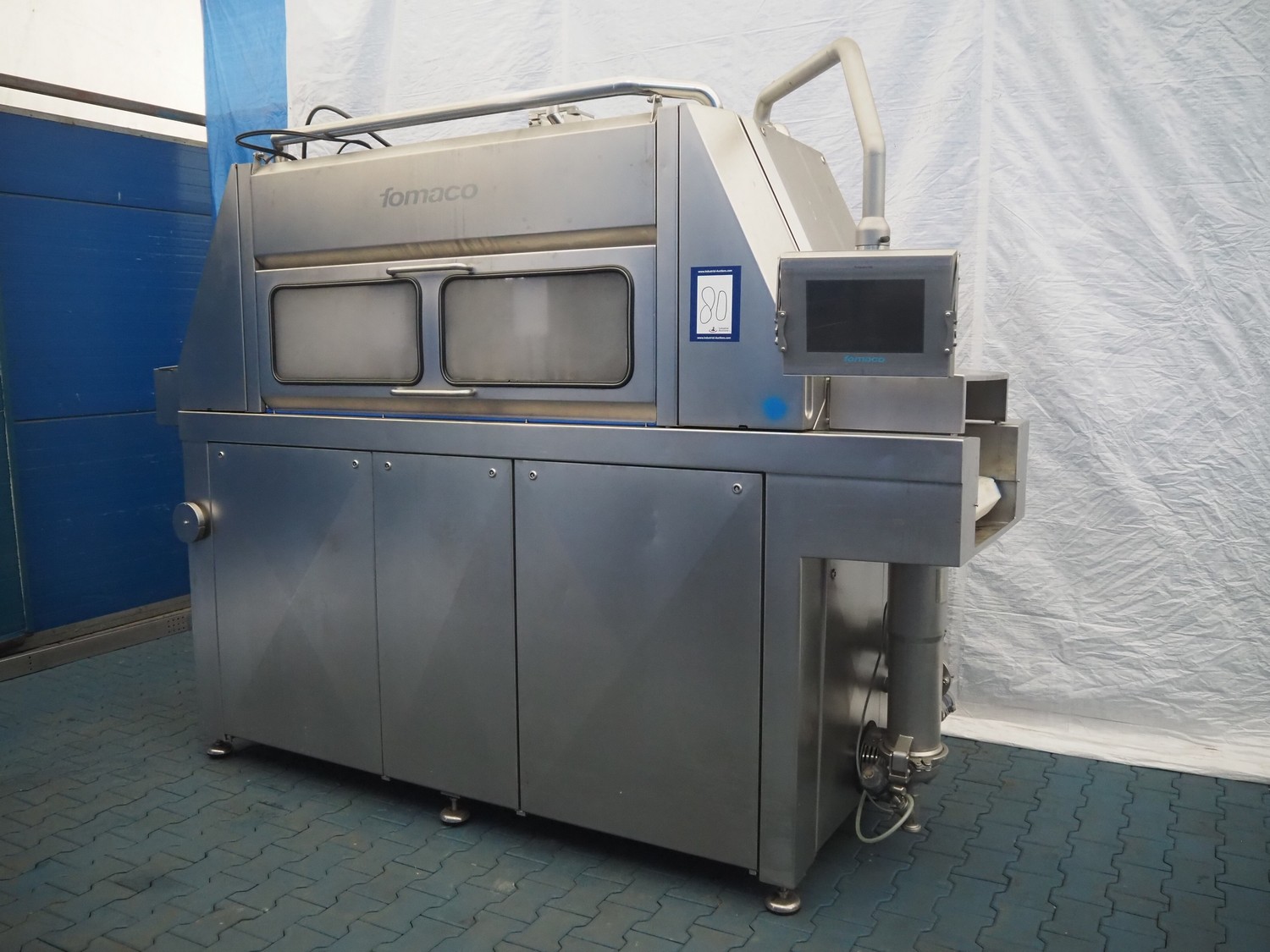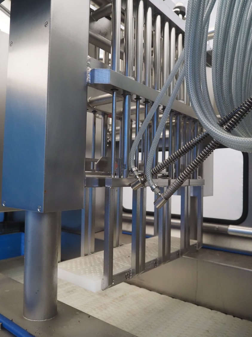 Fomaco injector, model: FGM 64 DC M3, serial number: 14818-2013, 400 V, 3 Ph, 50 Hz, 63 A, 19 kW, 6 bar, plastic mesh belt, belt width: 525 mm, total dimensions: 3200 mm x 1150 mm x 2500 mm. Incomplete.
