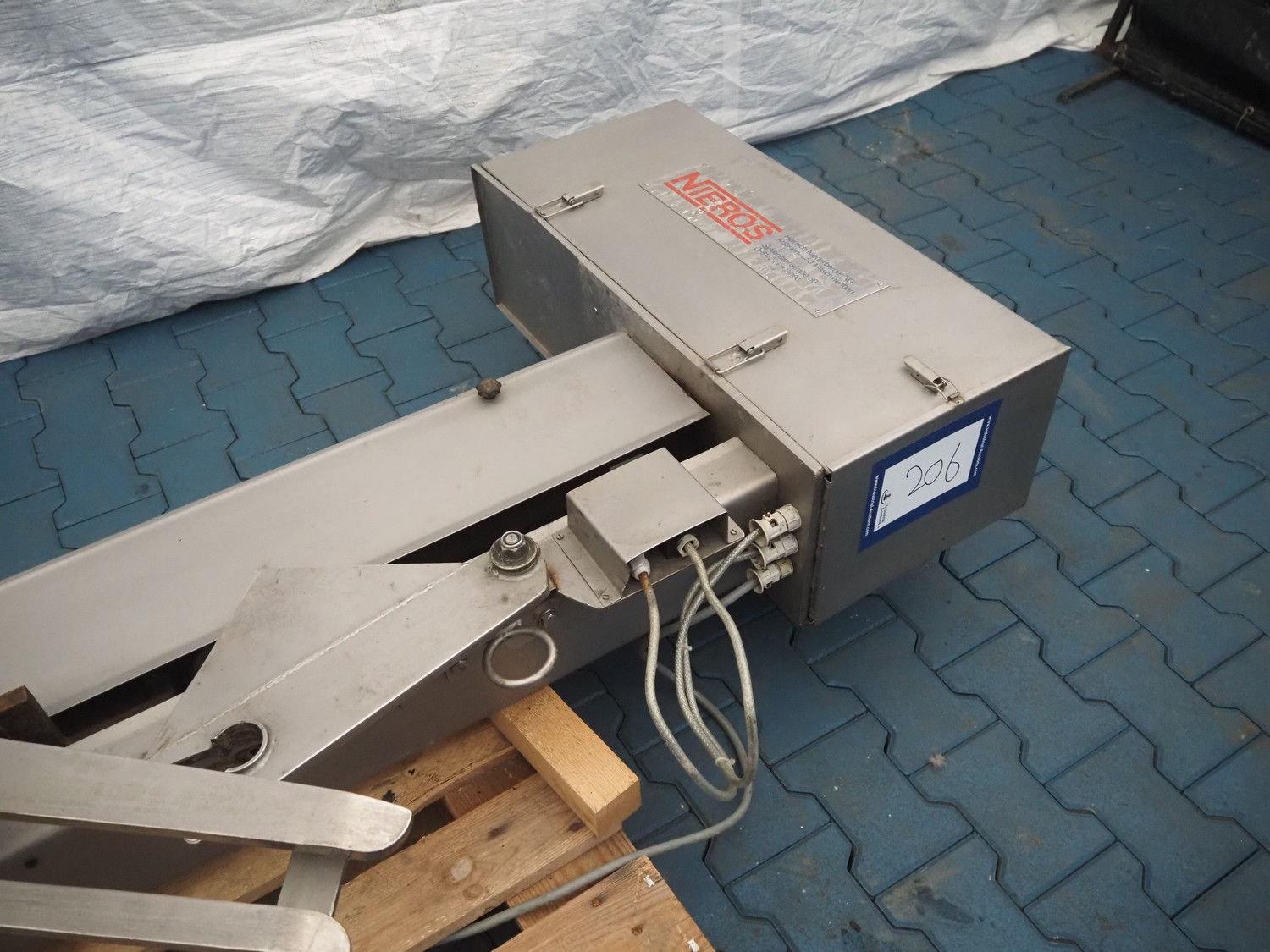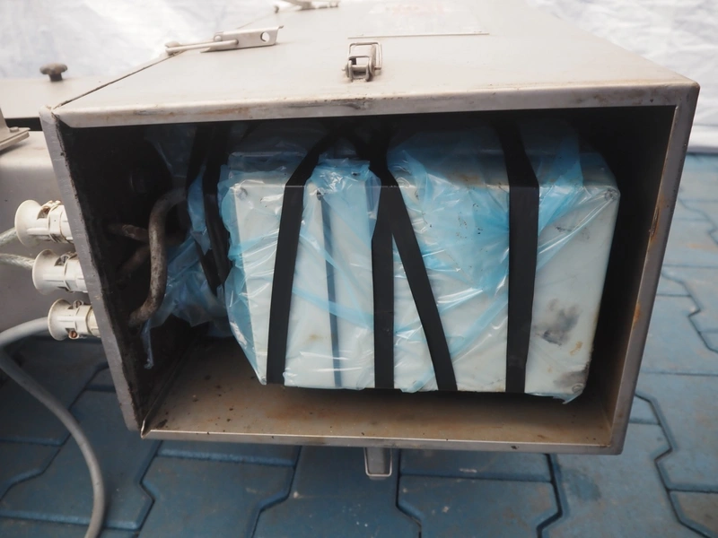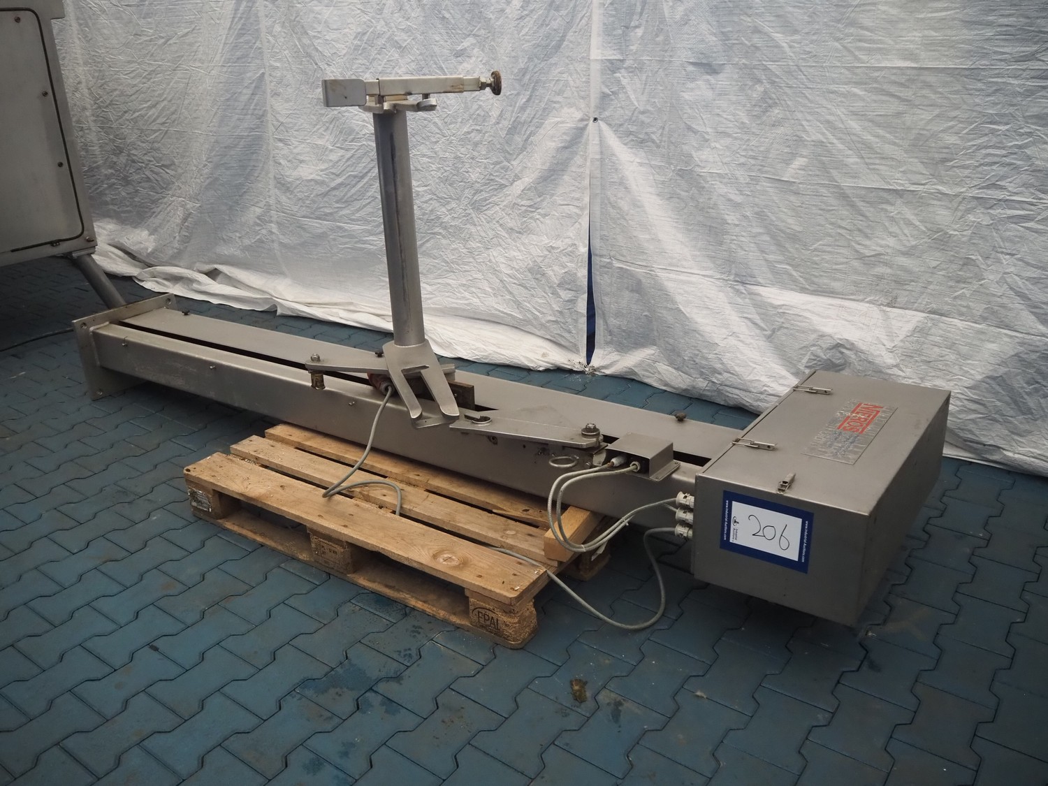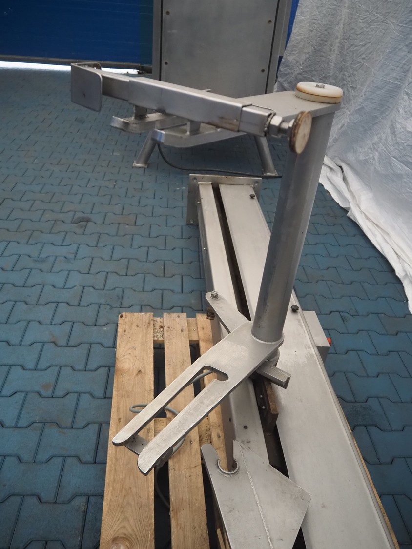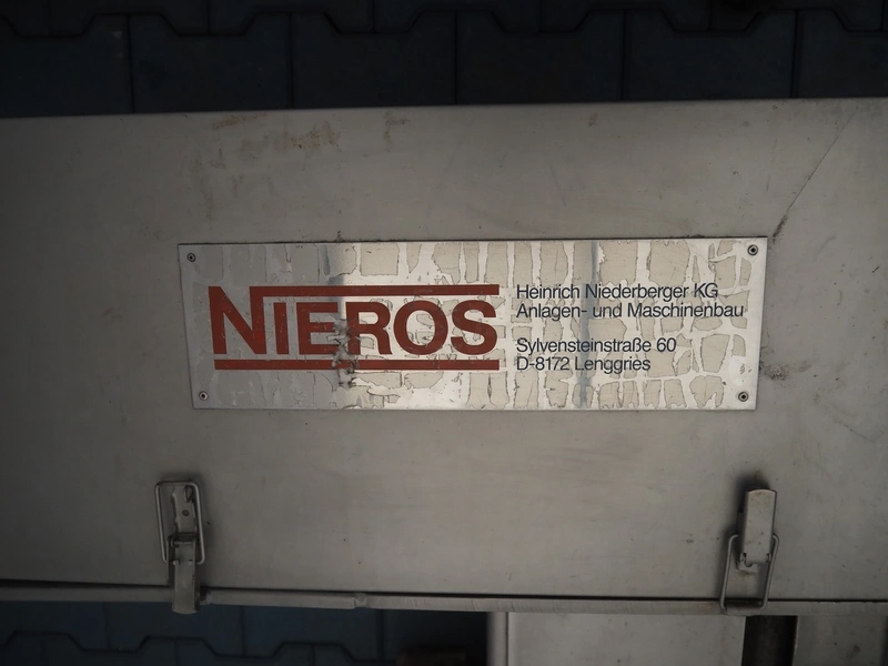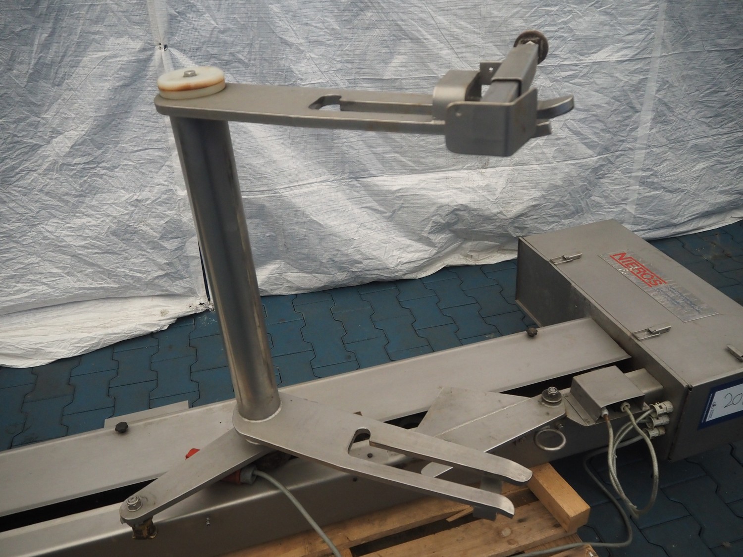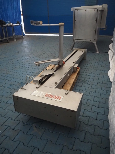 Nieros lifter for 200 liter meat bins, lifting height: 2000 mm, total dimensions: 1100 mm x 1150 mm x 2900 mm.