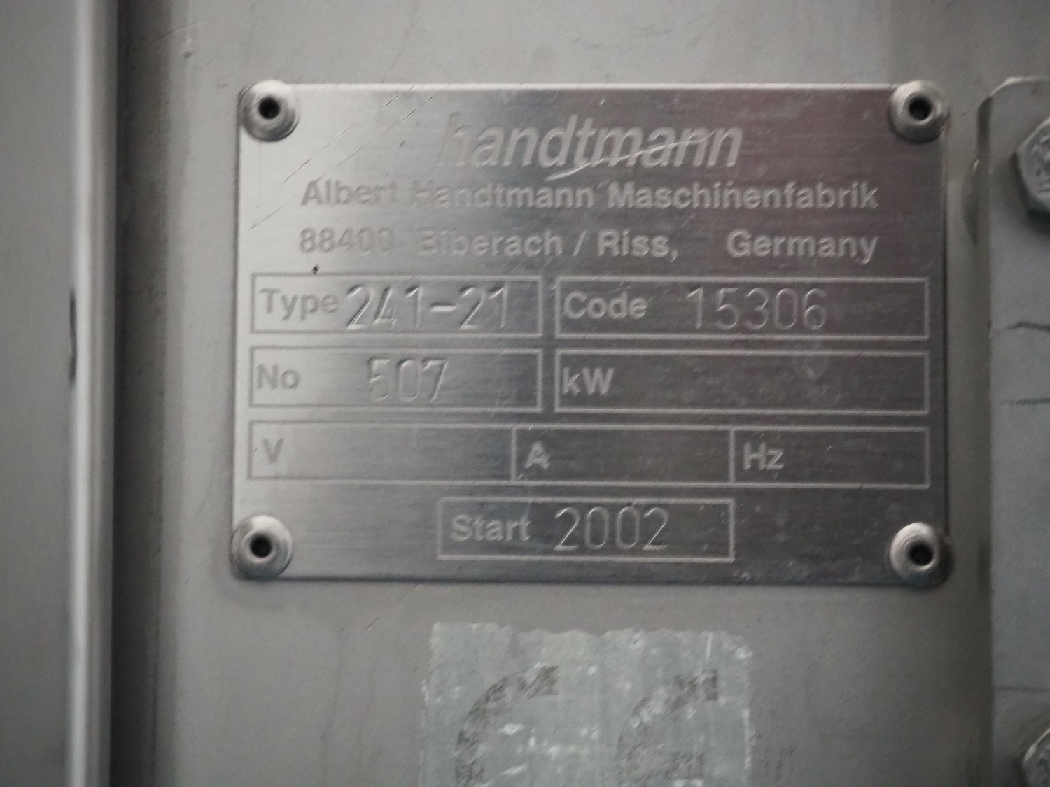 Handtmann mobile linking machine, type: 241-21, number: 507, year of construction: 2002, dimensions: 1750 mm x 1000 mm x 1400 mm.