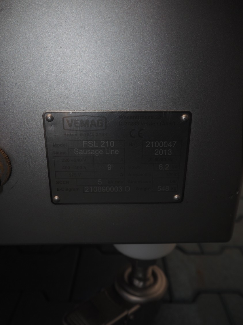 Vemag Maschinenbau GmbH mobile linking machine, model: FSL 210, serial number: 2100047, year of construction: 2013, 400-460 V, 3 Ph, 50 /60 Hz, 9 A, 6.2 kW, weight: 548 kg, total dimensions: 2150 mm x 800 mm x 1450 mm.