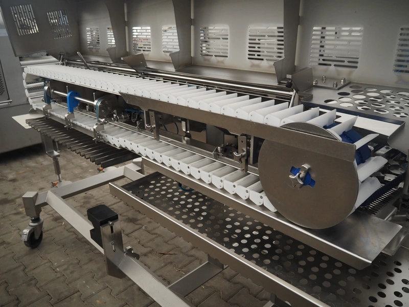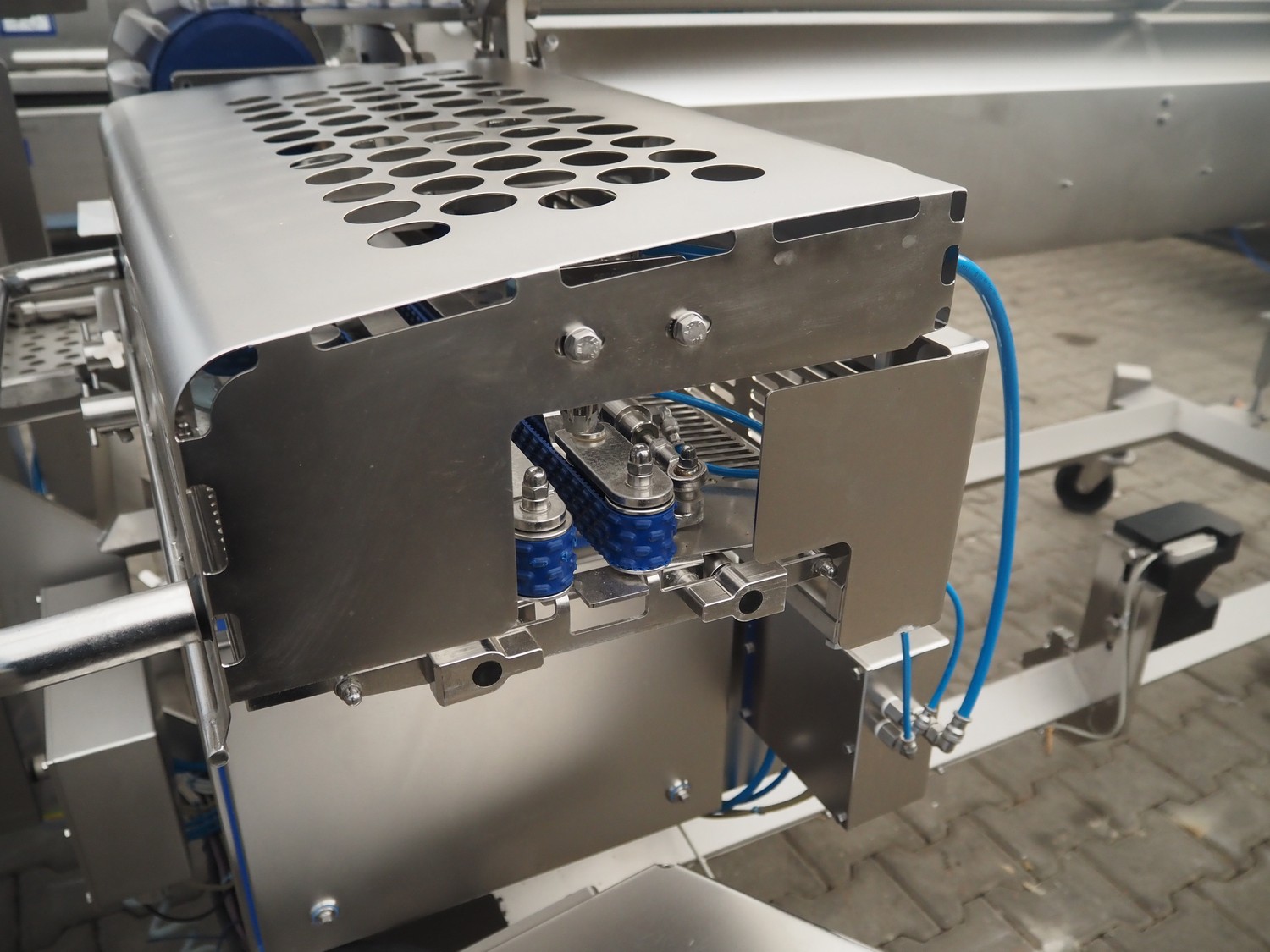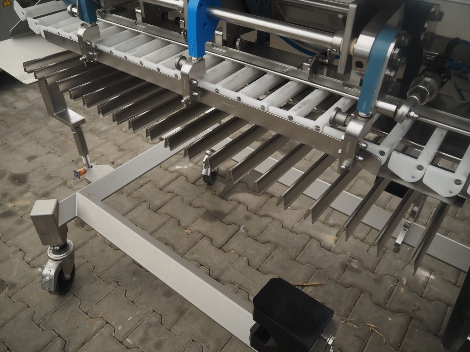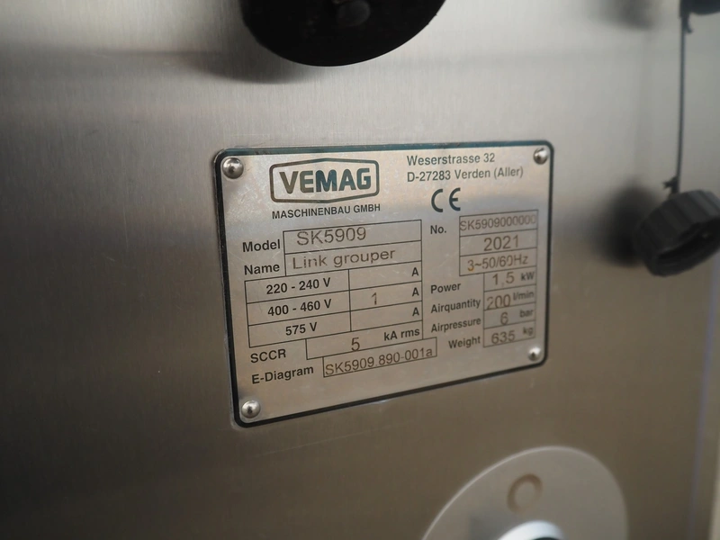 Vemag mobile Link grouper, model: SK5909, number: SK5909000000, year of construction: 2021, 400-460 V, 3 Ph, 50/60 Hz, 1 A, 1.5 kW, weight: 635 kg, sausage dimensions: 35 mm x 180 mm, total dimensions: 2000 mm x 1900 mm x 1440 mm.
