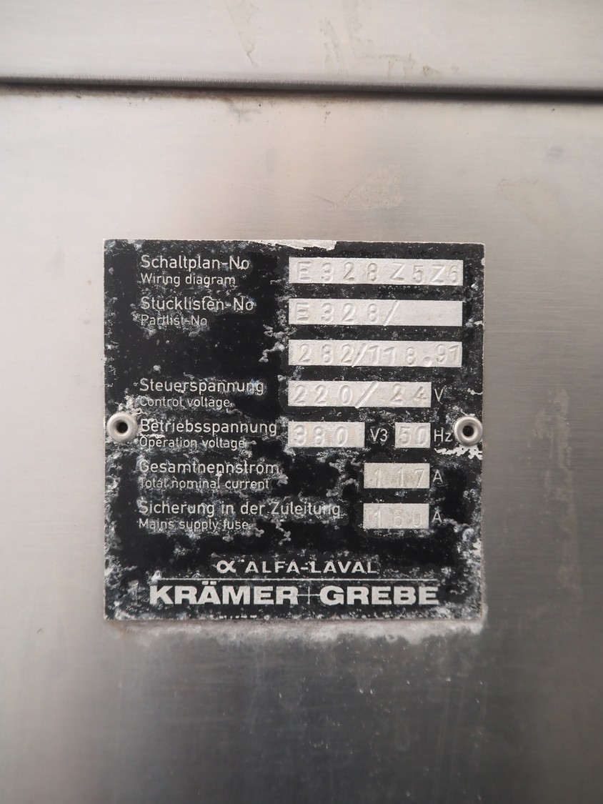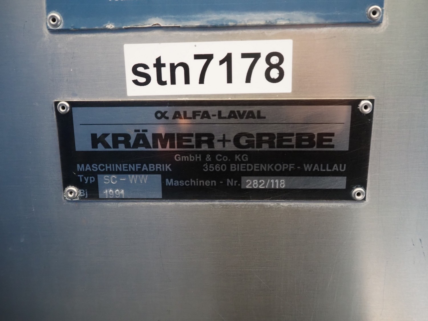 Krämer + Grebe GmbH & Co. KG grinder, type: SC-WW, number: 282/118, year of construction: 1991, 380 V, 3 Ph, 50 Hz, 117/160 A, plate diameter: 200 mm, total dimensions: 1750 mm x 1350 mm x 2550 mm.