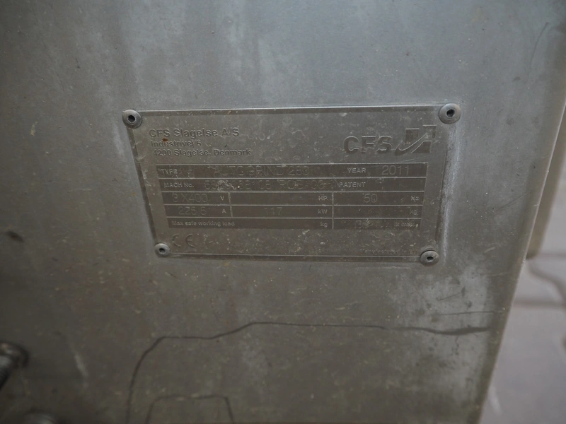 CFS grinder, type: Autogrind 280, year of construction: 2011, 400 V, 3 Ph, 50 Hz, 225.5 A, 117 kW, plate dimensions: Ø 280 mm, total dimensions: 2700 mm x 1550 mm x 2600 mm.