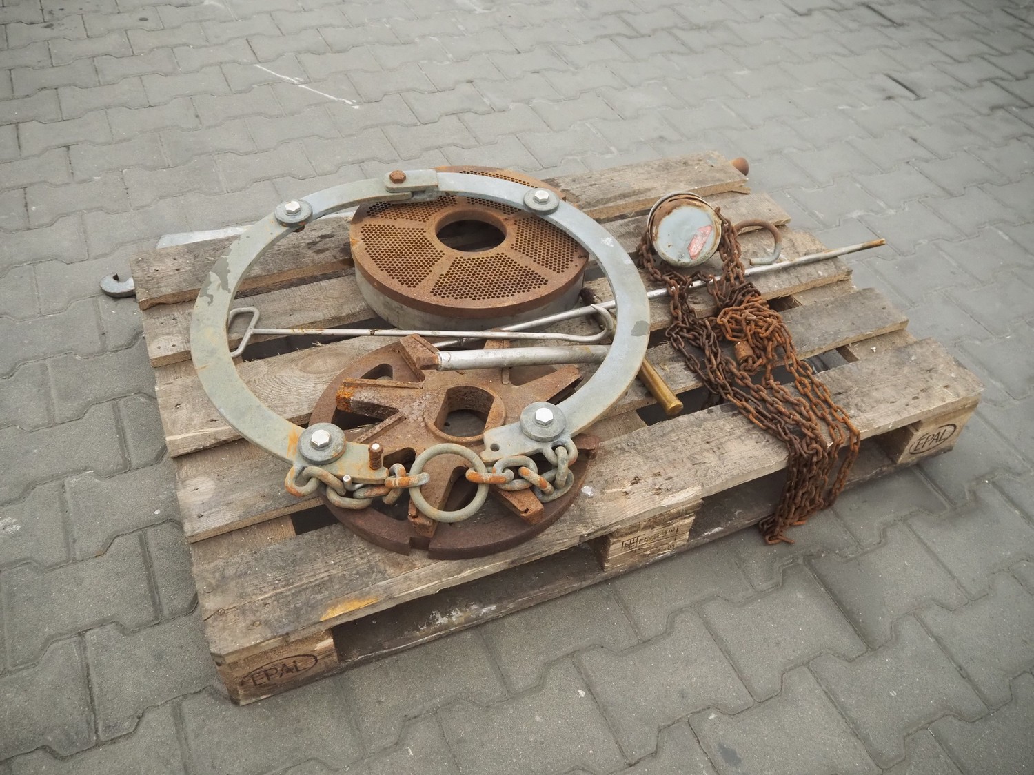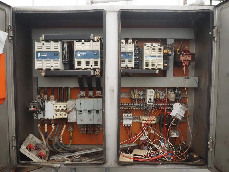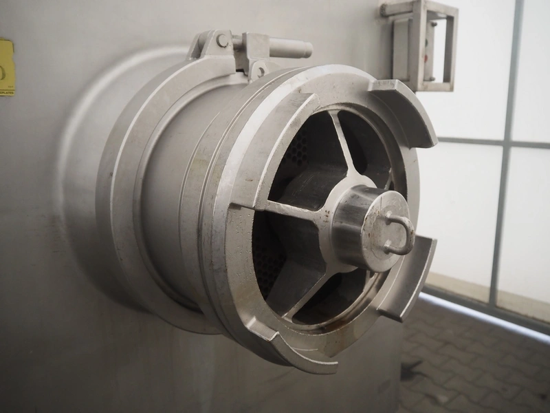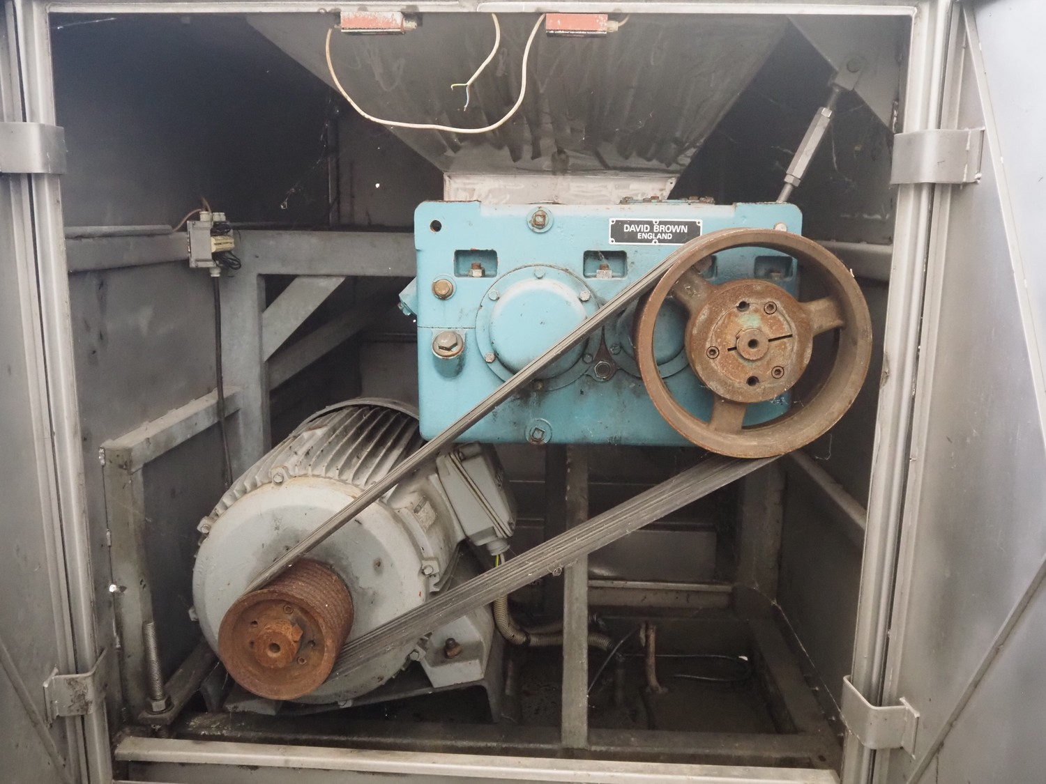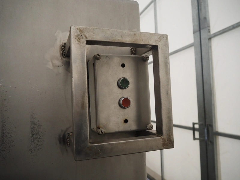 Wolfking frozen block grinder, type: Y/D-REV, serial number: 52753, 380 V, 3 Ph, 50 Hz, 250 A, 33 kW, plate diameter: 400 mm, total dimensions: 2700 mm x 1900 mm x 2800 mm. Including pallet with parts.