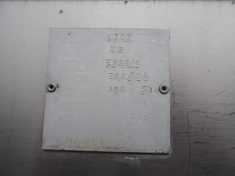 Krämer + Grebe GmbH & Co. KG grinder, type: WW 200, machine number: 281/141, year of construction: 1991, diameter plate: 200 mm, 380 V, 50 Hz, 91 A, total dimensions: 1900 mm x 1800 mm x 2250 mm. Incomplete. Technical condition unknown, without knifes and plates.