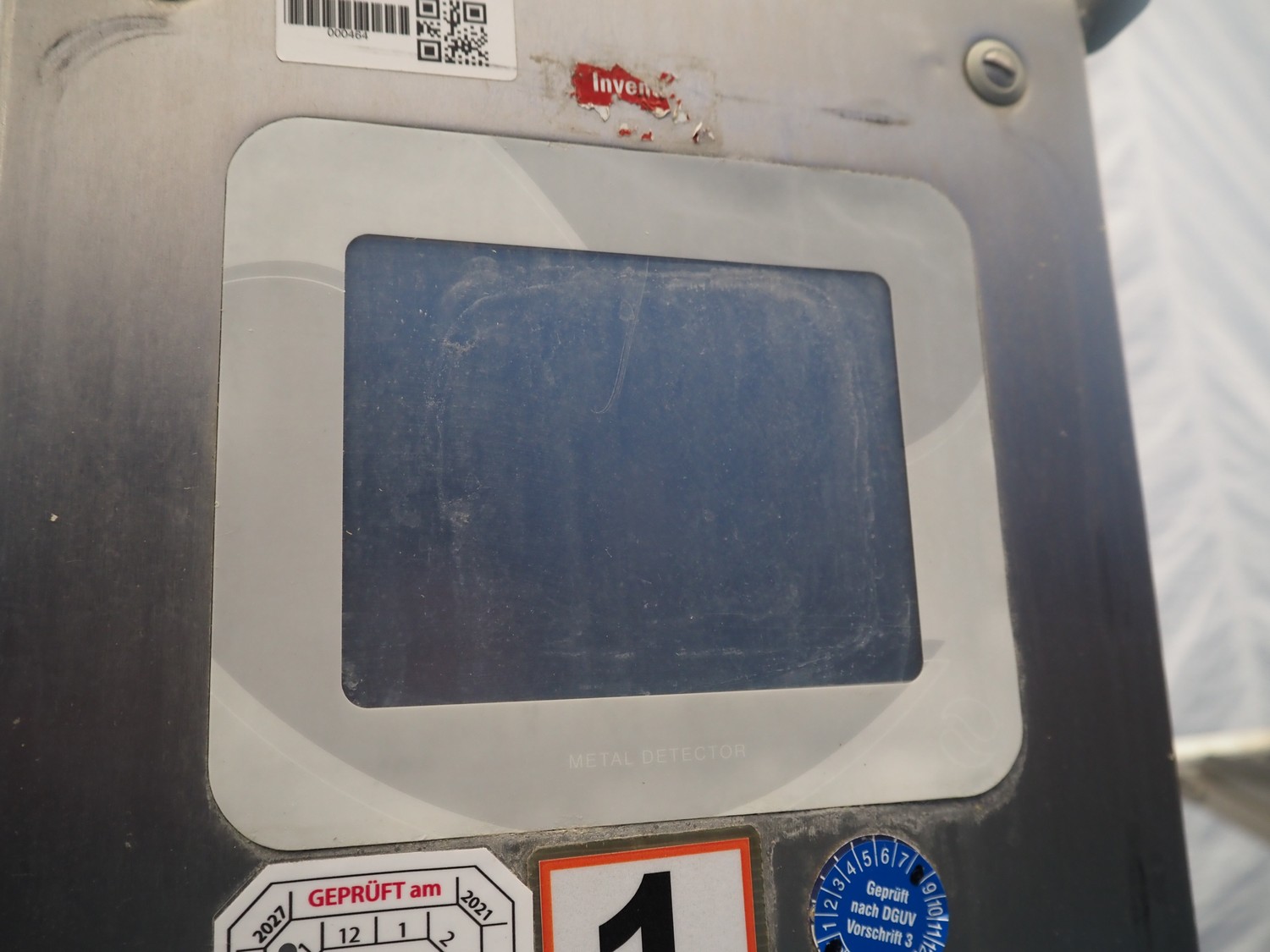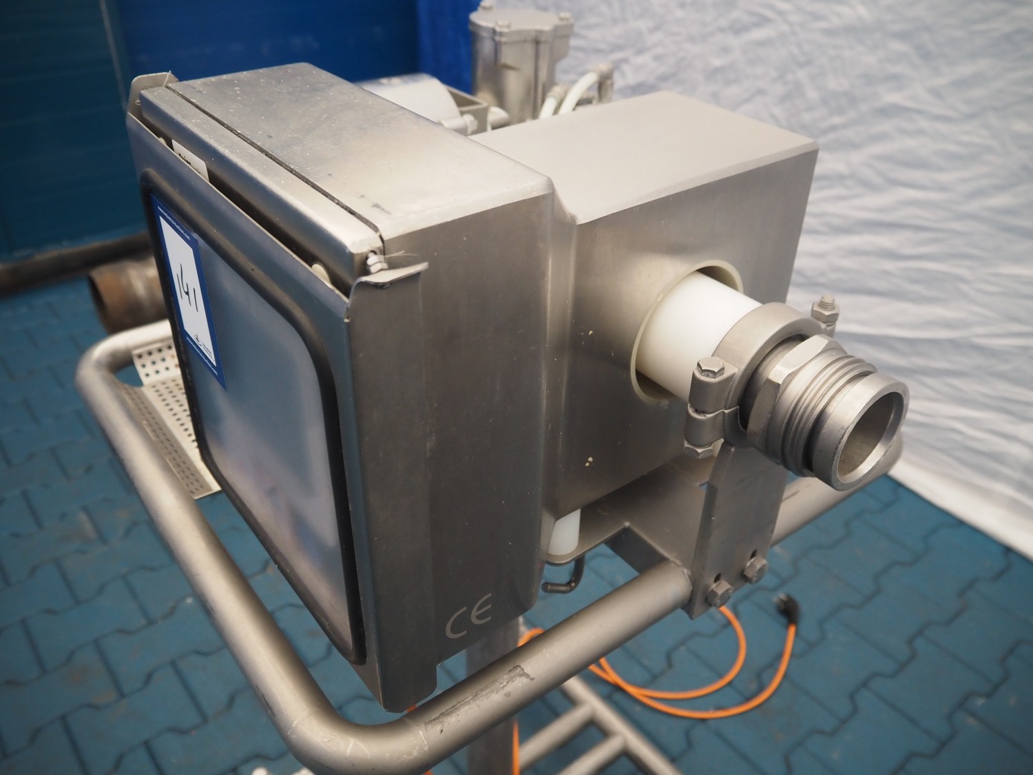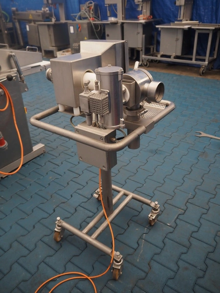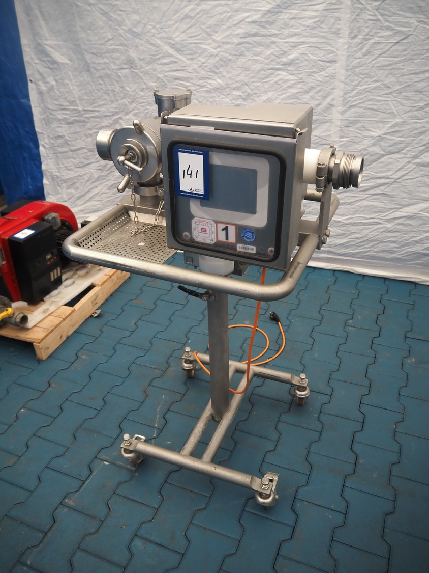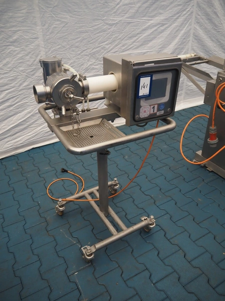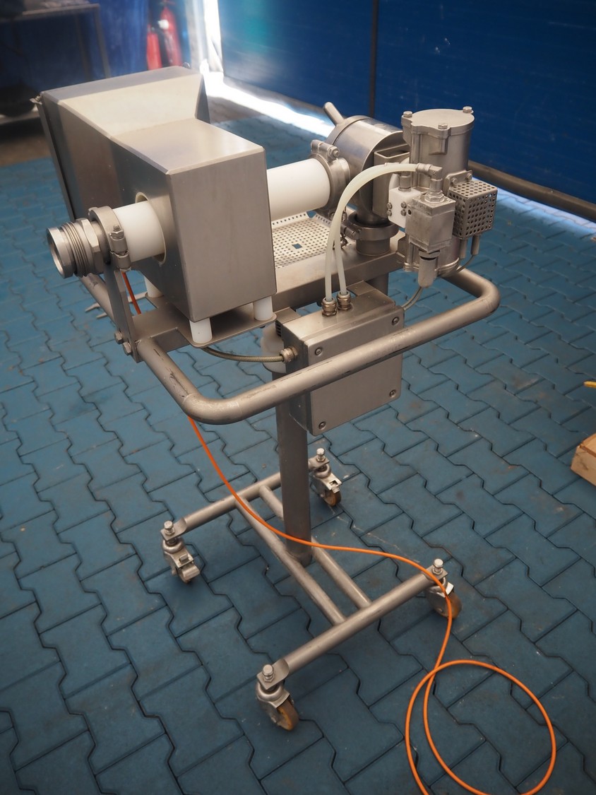 Mesutronic mobile pipe line metal detector with rejector, clearance: Ø 55 mm, total dimensions: 700 mm x 600 mm x 1200 mm.