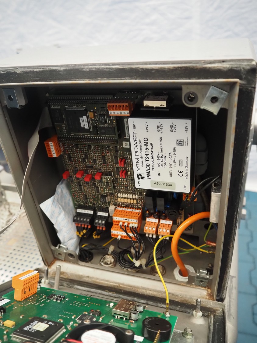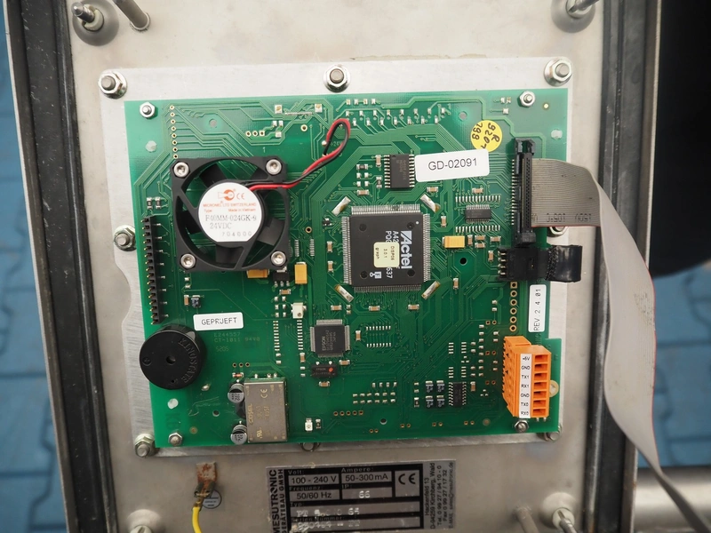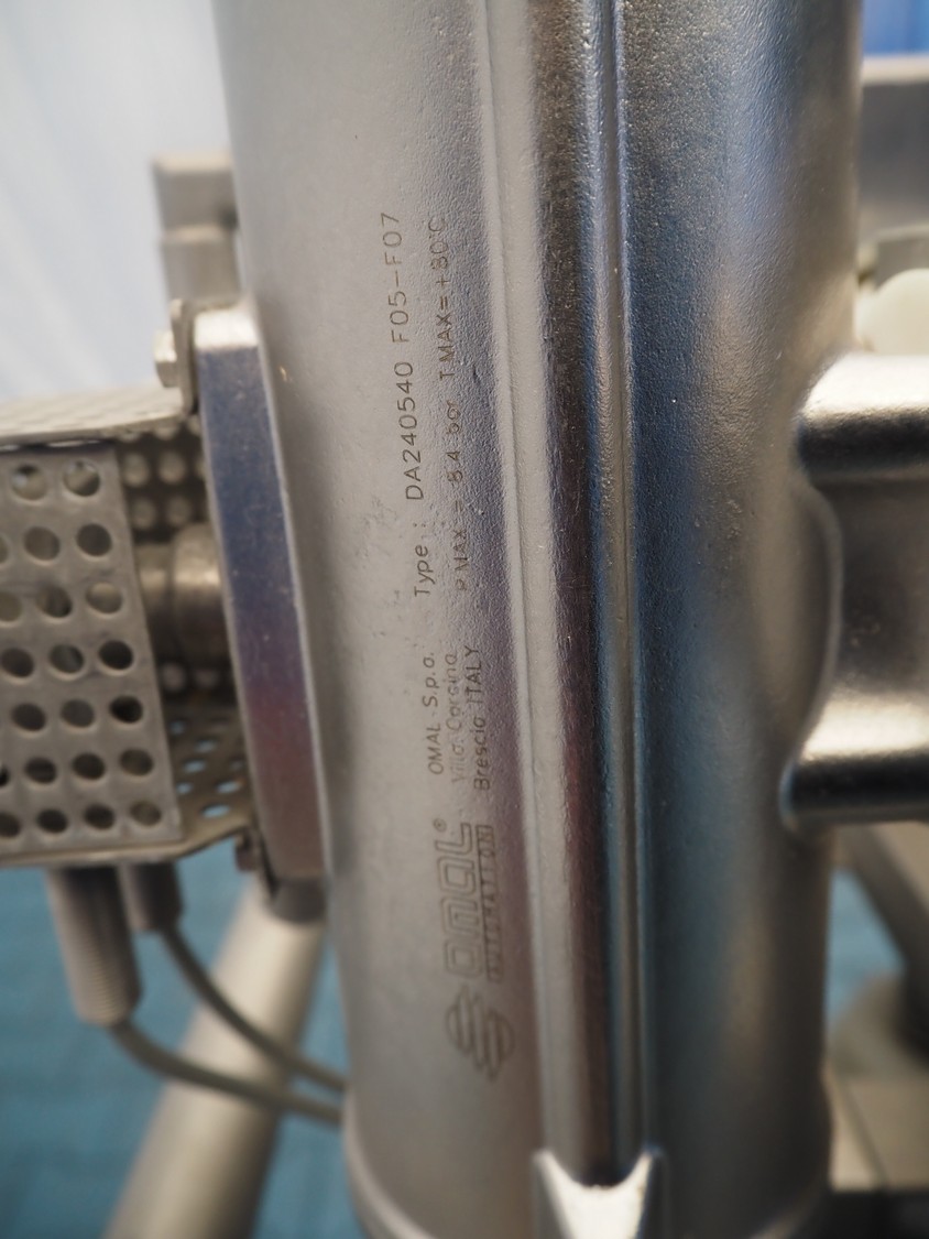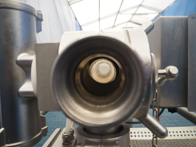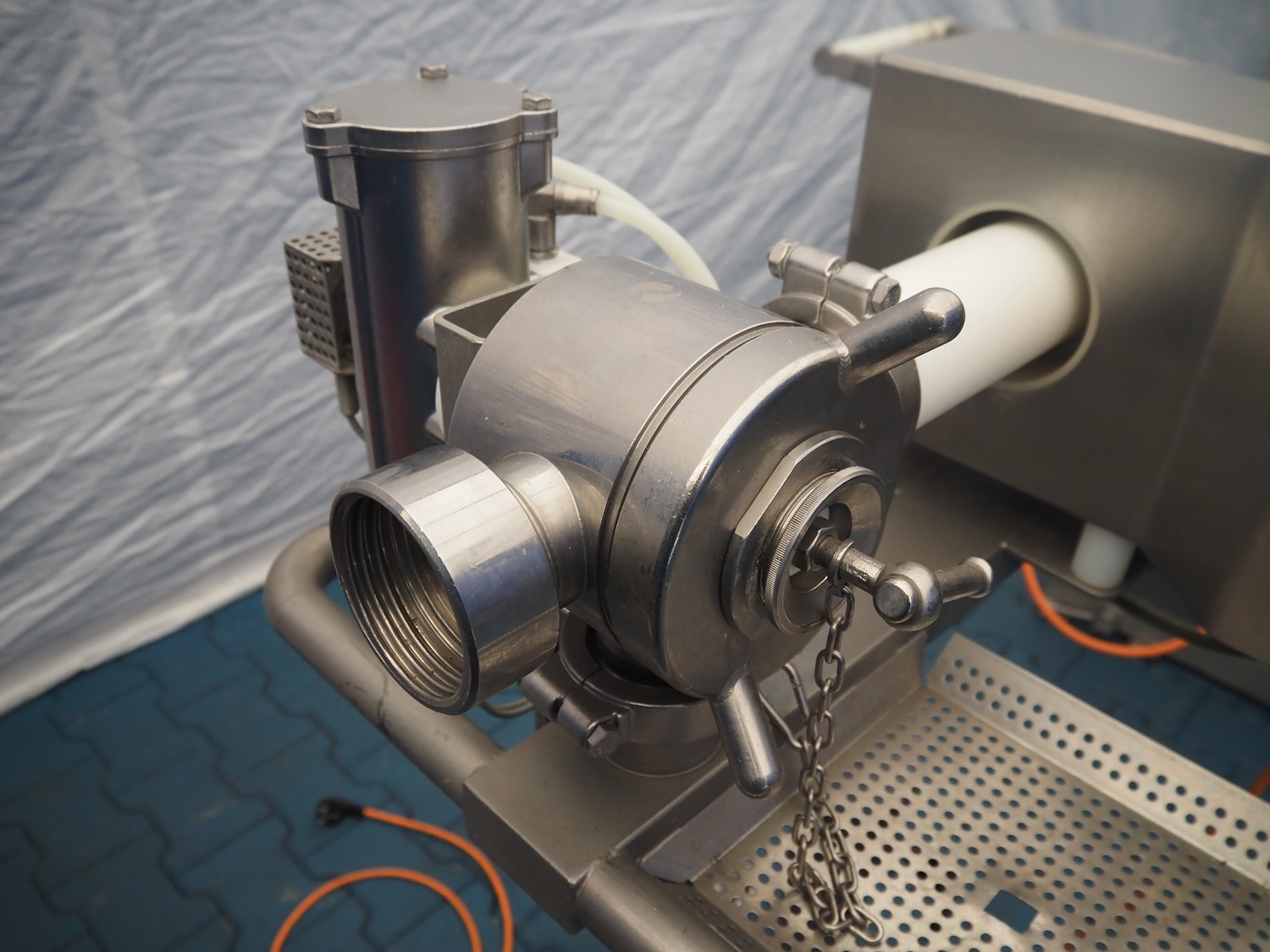 Mesutronic mobile pipe line metal detector with rejector, clearance: Ø 55 mm, total dimensions: 700 mm x 600 mm x 1200 mm.