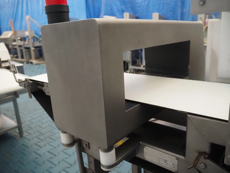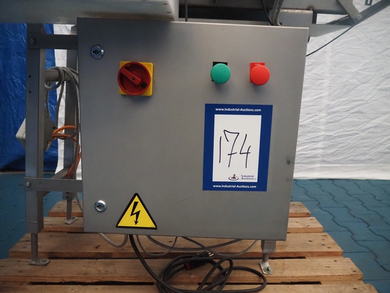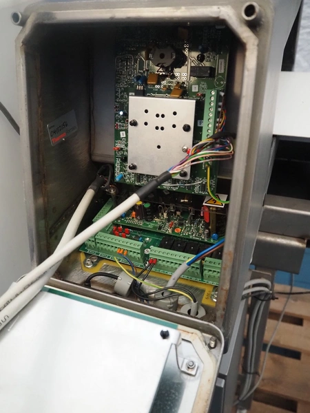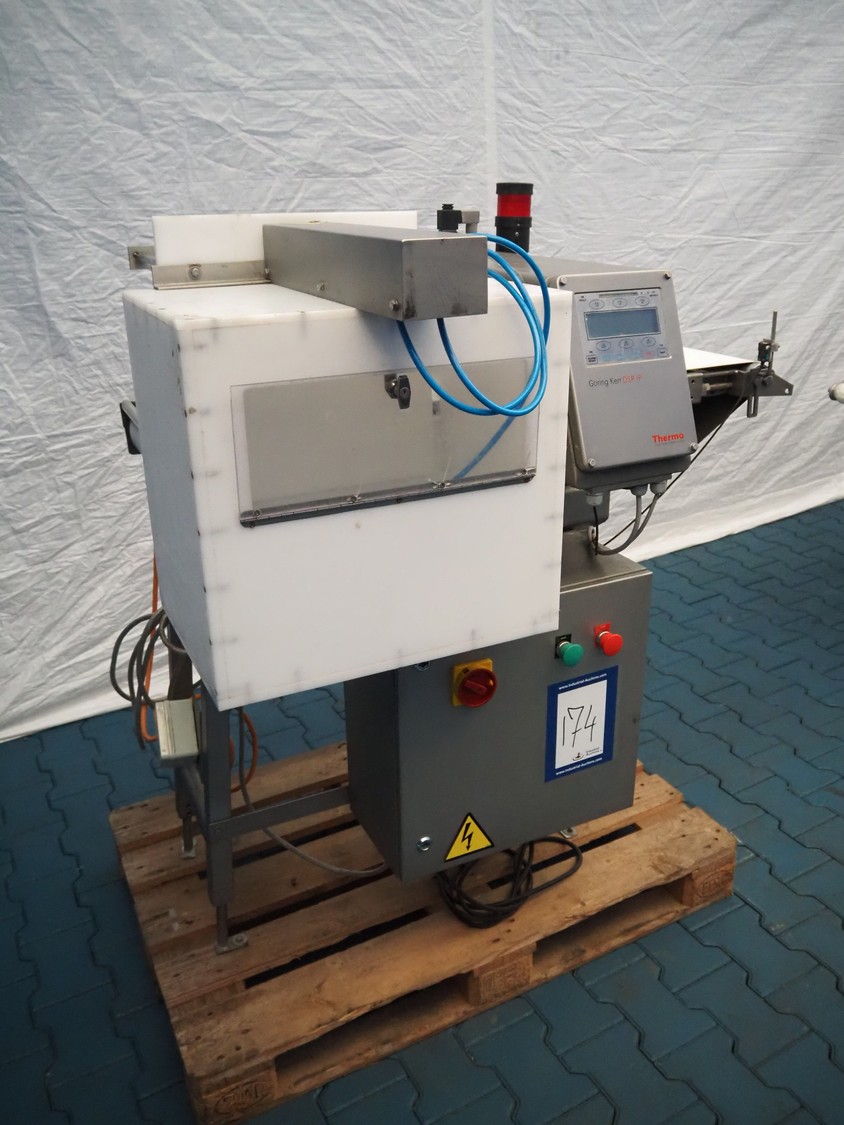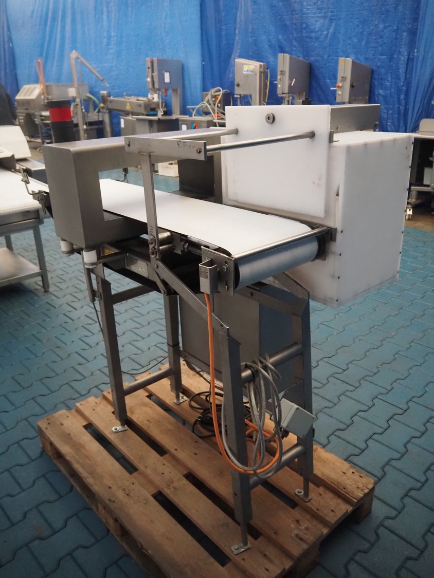 Thermo Goring Kerr metal detector with rejecter, type: DSP-IP, plastic belt, belt width: 300 mm, clearance: 450 mm x 150 mm, total dimensions: 1300 mm x 850 mm x 1400 mm.