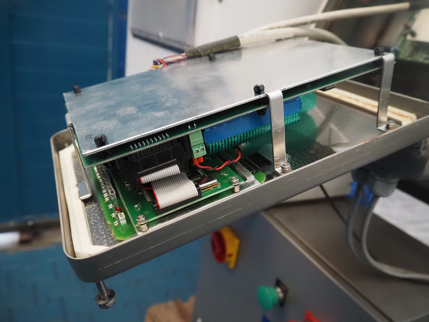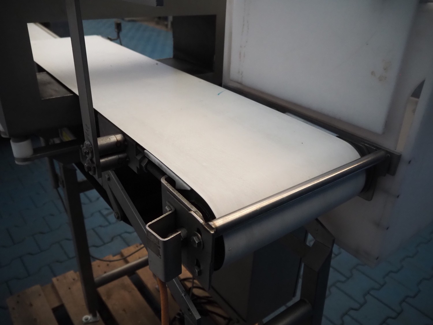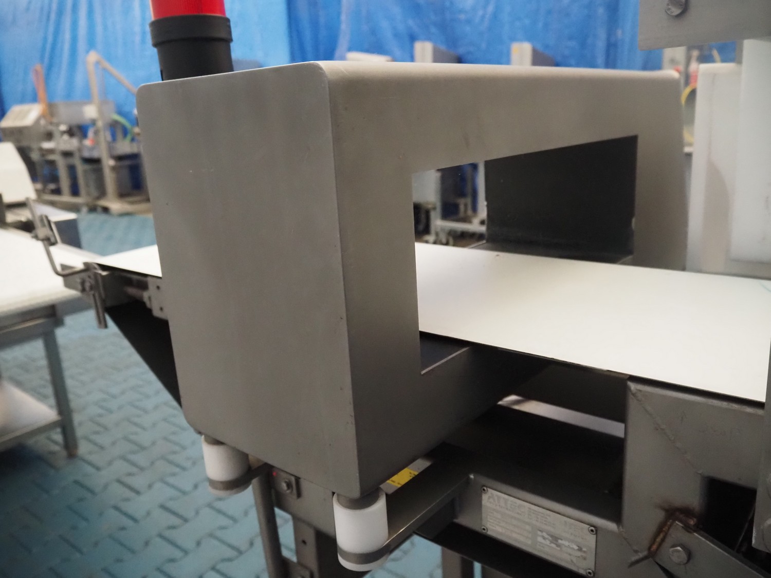 Thermo Goring Kerr metal detector with rejecter, type: DSP-IP, plastic belt, belt width: 300 mm, clearance: 450 mm x 150 mm, total dimensions: 1300 mm x 850 mm x 1400 mm.