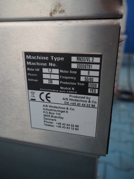 A/S Wodschow & Co. mixer, type: RN20/VL 2, machine number: 20008781, year of construction: 2008, 230 V, 1 Ph, 50/60 Hz, 8 A, 1.2 kW, s/s bowl, dimensions bowl: Ø310 mm x 250 mm / 20 liter, s/s spiral, total dimensions: 650 mm x 430 mm x 970 mm.