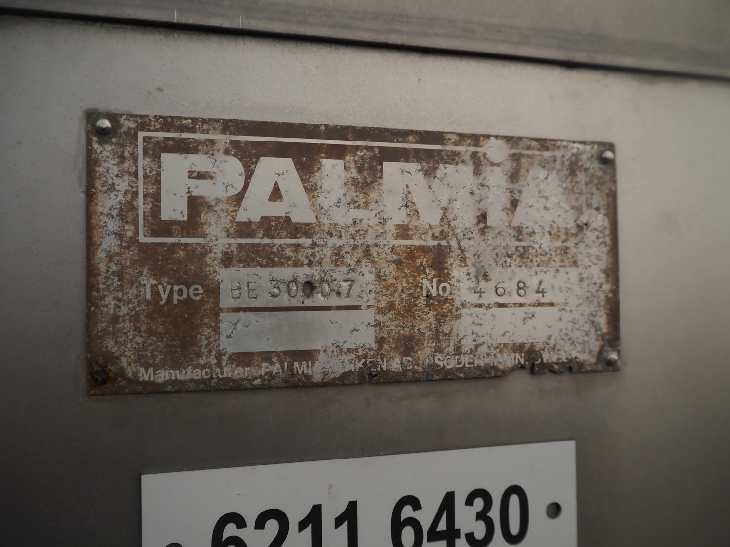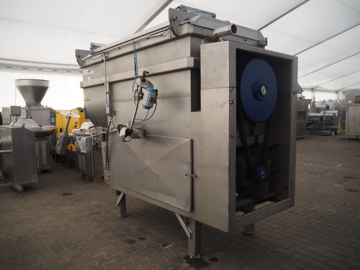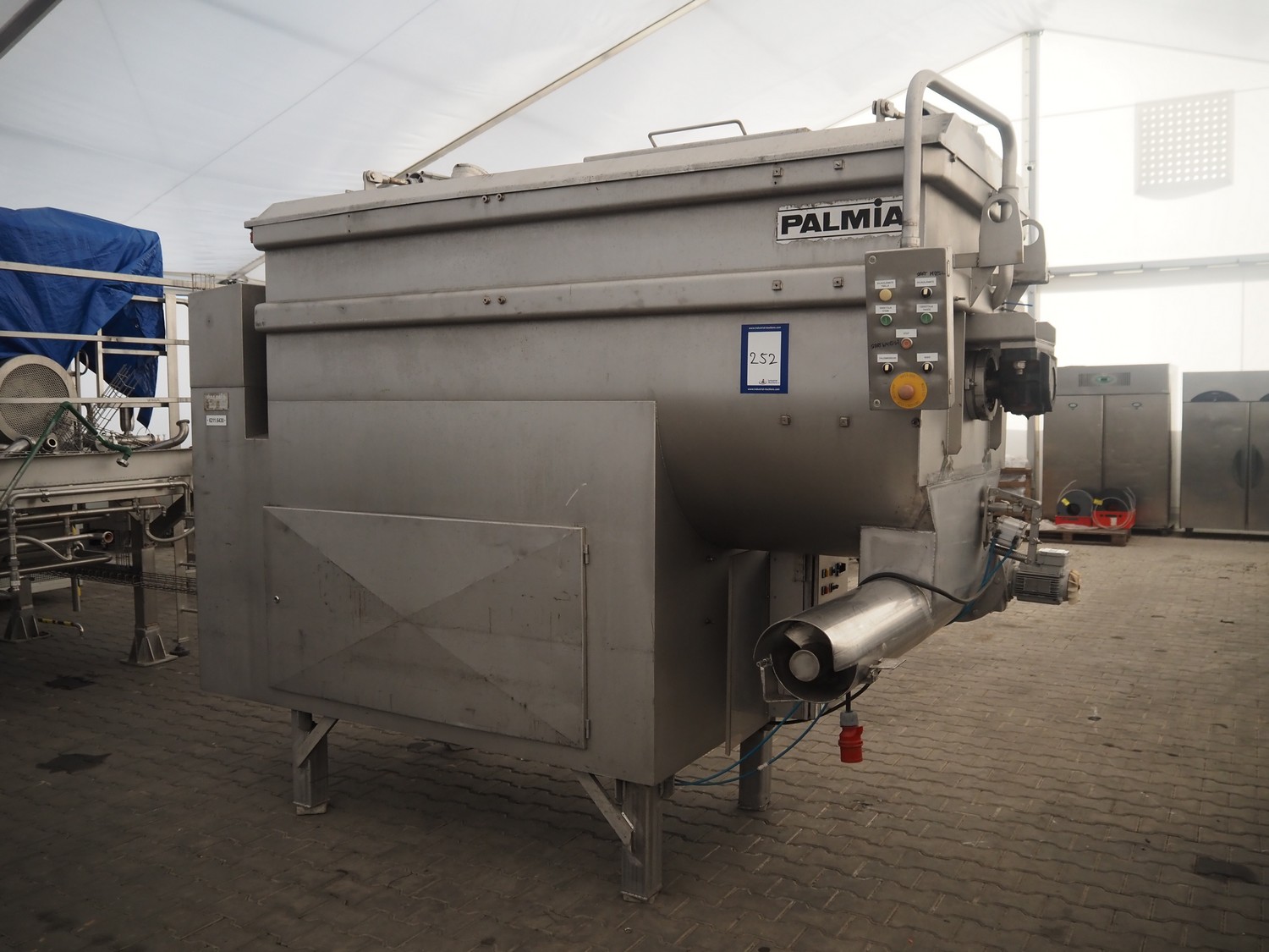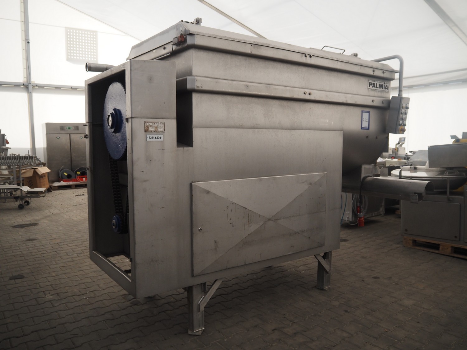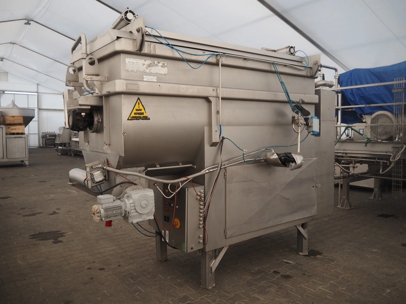 Palmia paddle mixer with cooling function, type: BE 3000.7, number: 4684, inside dimensions: 2000 mm x 850 mm x 1000 mm, capacity: 3000 liter, total dimensions: 3300 mm x 1000 mm x 1730 mm.