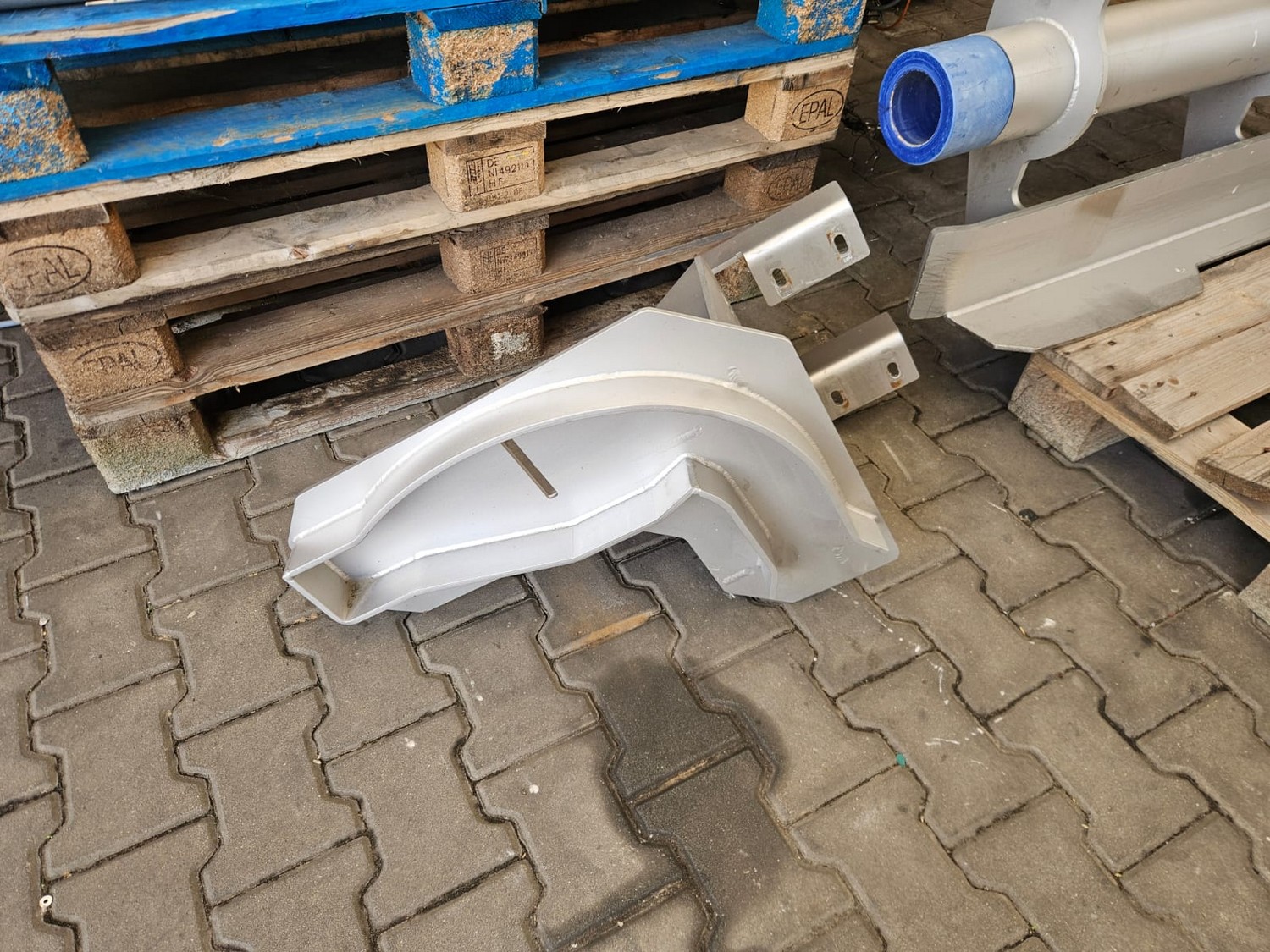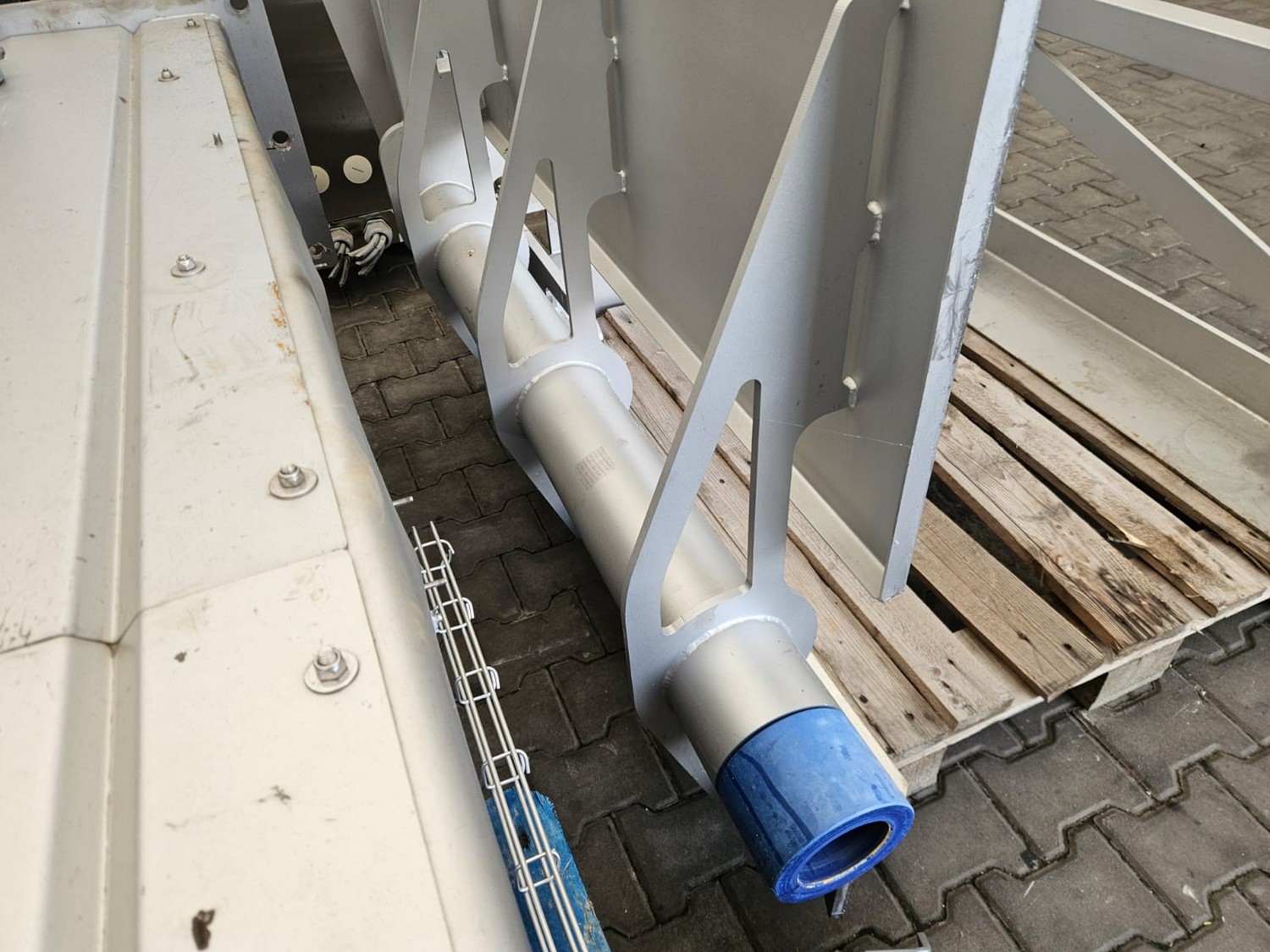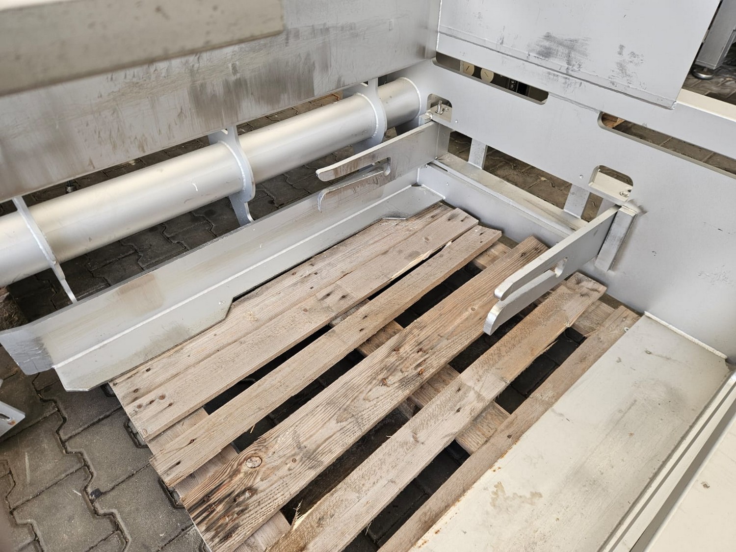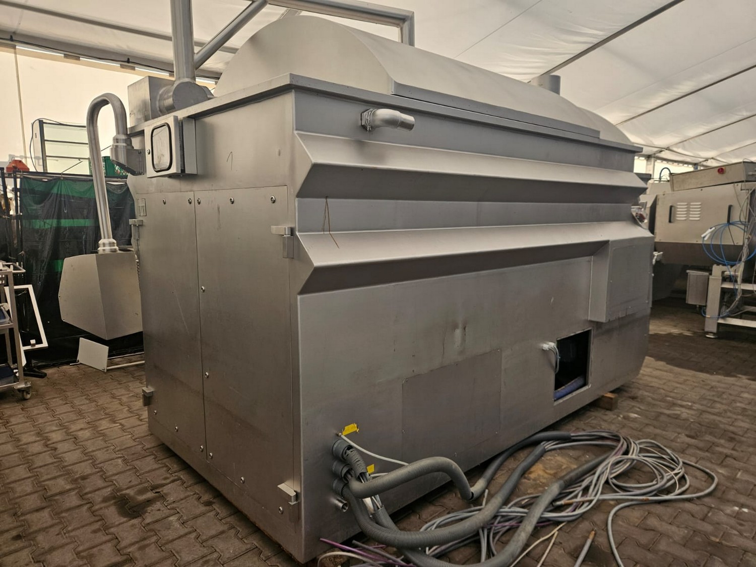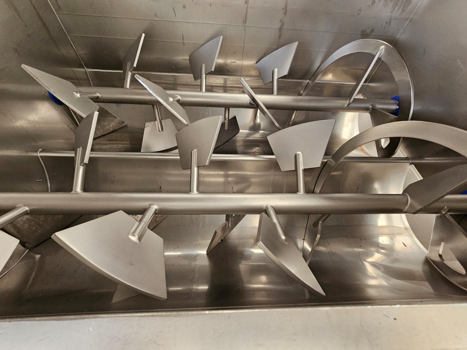 Seydelmann cooled vacuum double shaft paddle mixer with Oslos lifter for pallet boxes, type: PV 4000, machine number: 11422-1, year of construction: 2011, 400 V, 50 Hz, 125 A, 60 kW, weight: 6500 kg, dimensions: 4250 mm x 2300 mm x 2750 mm. Oslos lifter, type: Column Loader 1000S, serial number: E011270705118/9001, year of construction: 09/2021, 380 V, 3 Ph, 50 Hz, 5.2 A, 2.2 kW, capacity: 1000 kg, dimensions lifter: 700 mm x 2600 mm x 4200 mm, dimensions lifting arm: 1750 mm x 1600 mm x 1250 mm.