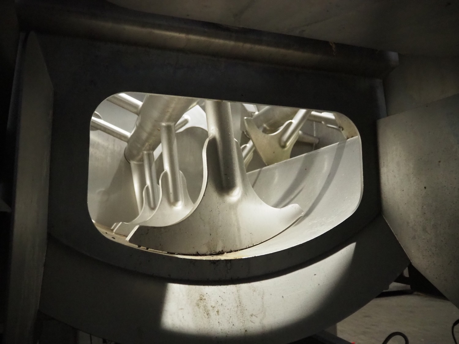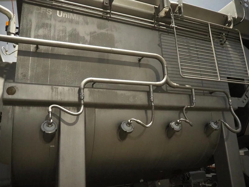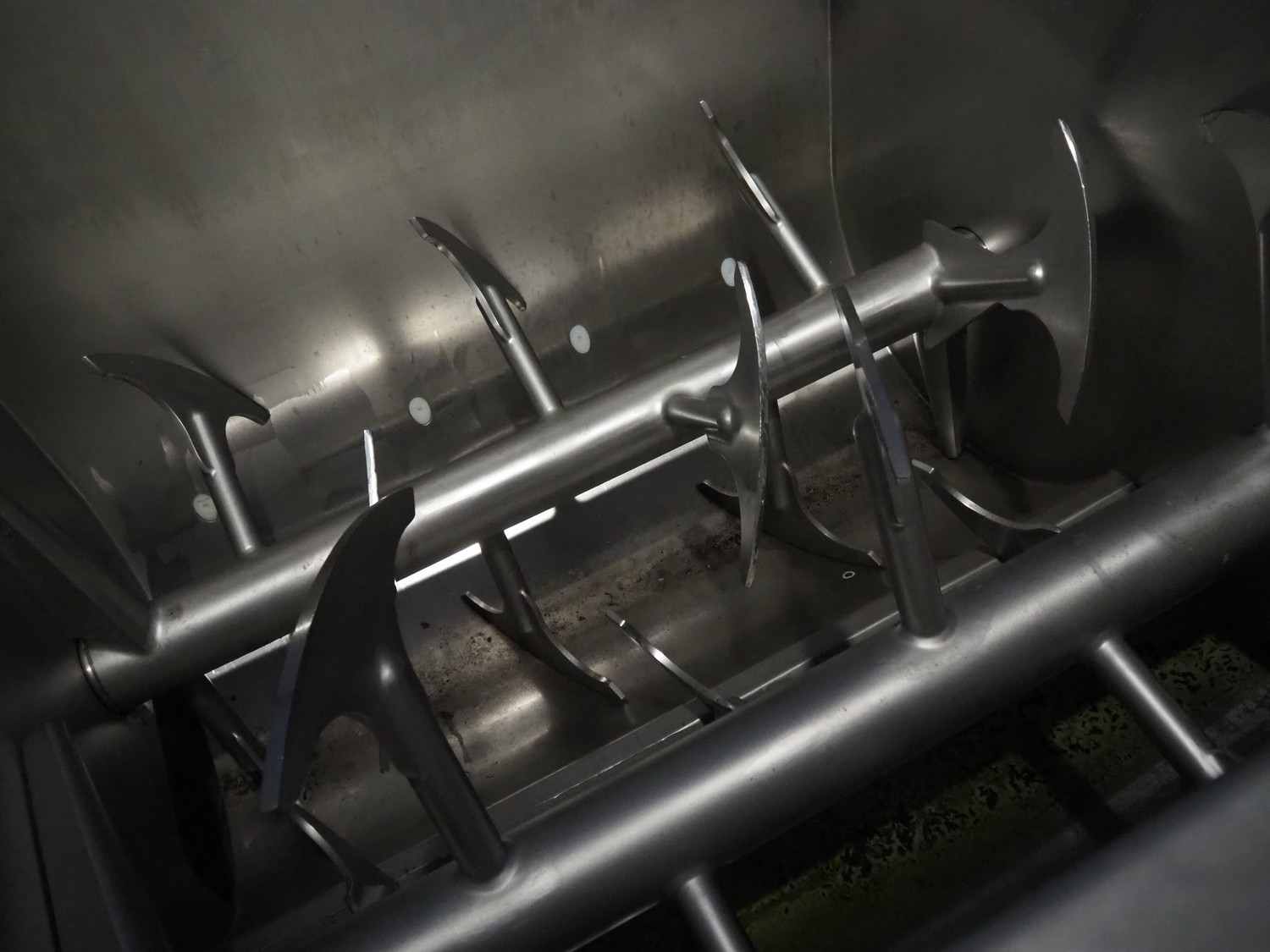 CFS Slagelse A/S cooled double shaft paddle mixer on weighing cells, type: UNIMIX I 2500, machine number: 5000068161 POS 25, year of construction: 2011, 400 V, 3 Ph, 50 Hz, 41.2 A, 22 kW, CO2 injection, volume: 2500 liter, dimensions: 4600 mm x 2200 mm x 3500 mm.
