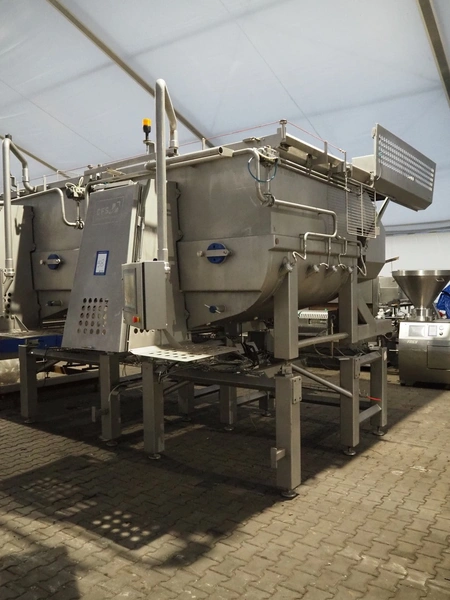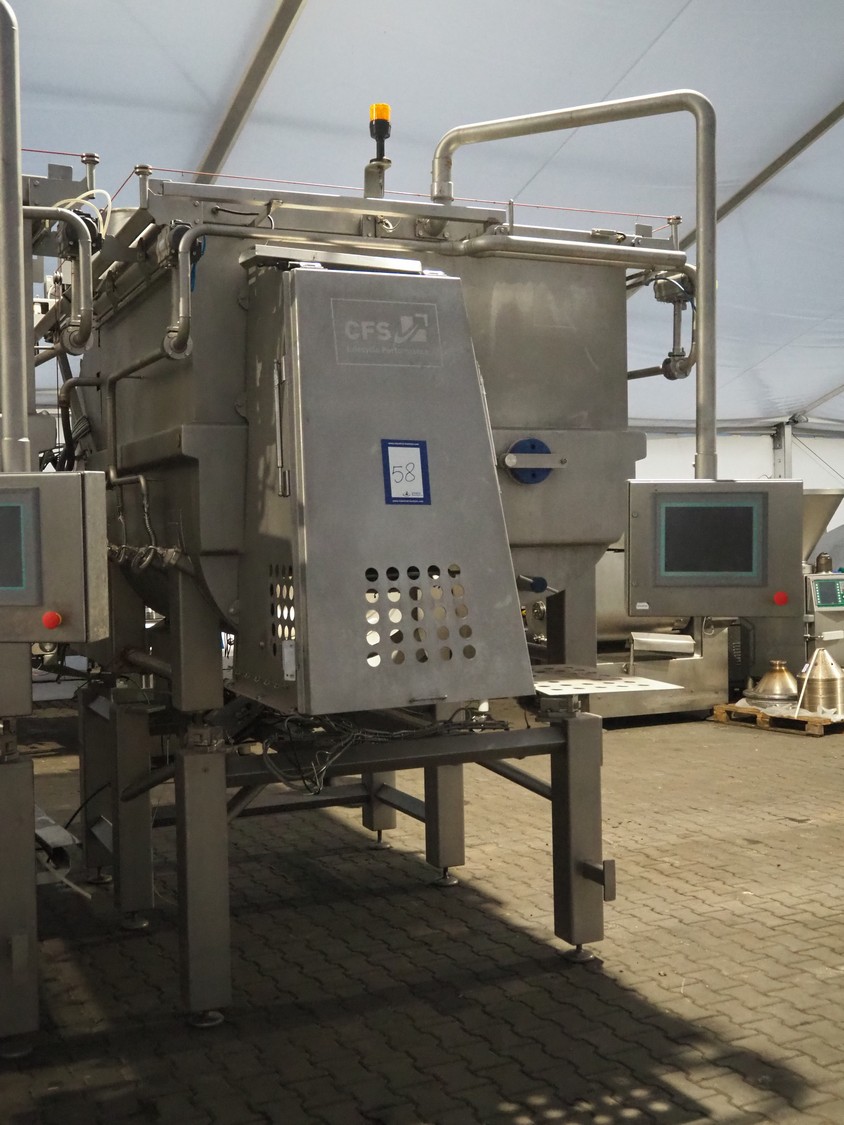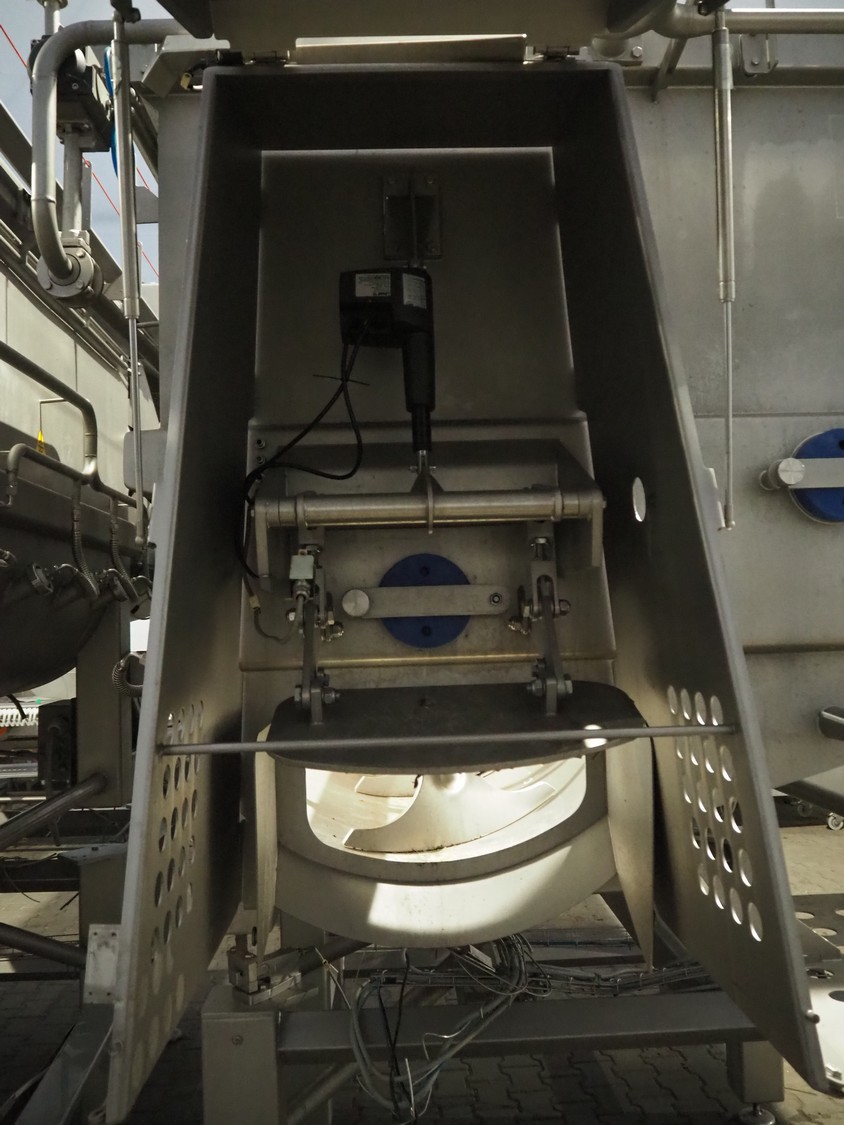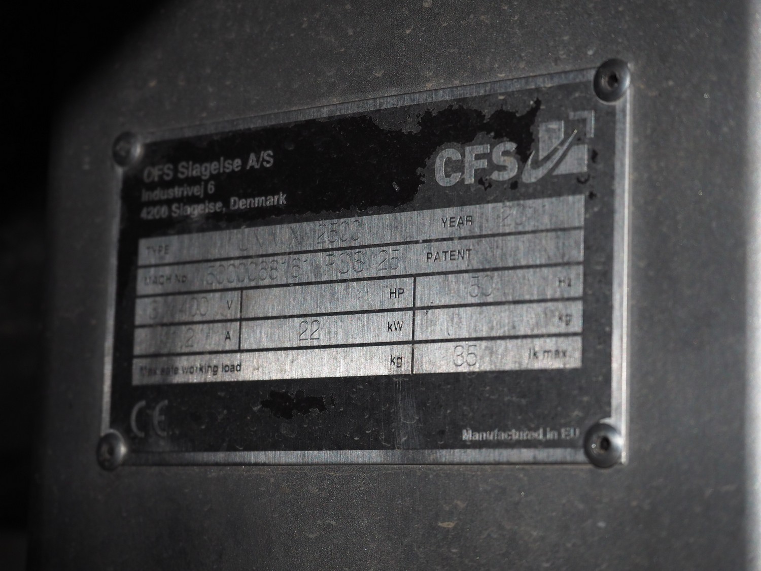 CFS Slagelse A/S cooled double shaft paddle mixer on weighing cells, type: UNIMIX I 2500, machine number: 5000068161 POS 25, year of construction: 2011, 400 V, 3 Ph, 50 Hz, 41.2 A, 22 kW, CO2 injection, volume: 2500 liter, dimensions: 4600 mm x 2200 mm x 3500 mm.