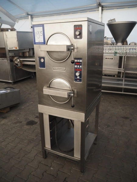 Hobart double high speed cooker on s/s frame, model: 2227, serial number: 97-1063-109, year of construction: 2002, 400 V, 3 Ph, 50 Hz, 39.2 A, 1.7-3.4 bar, dimensions: 800 mm x 600 mm x 1800 mm.