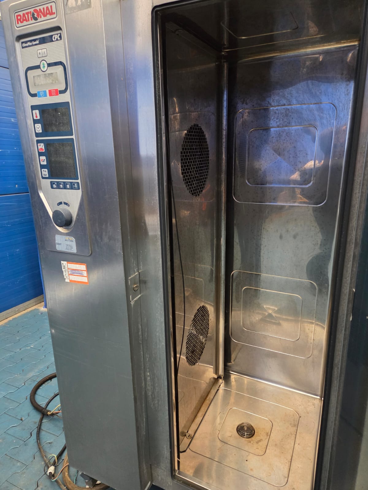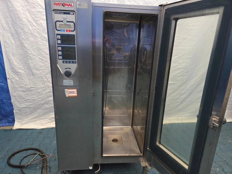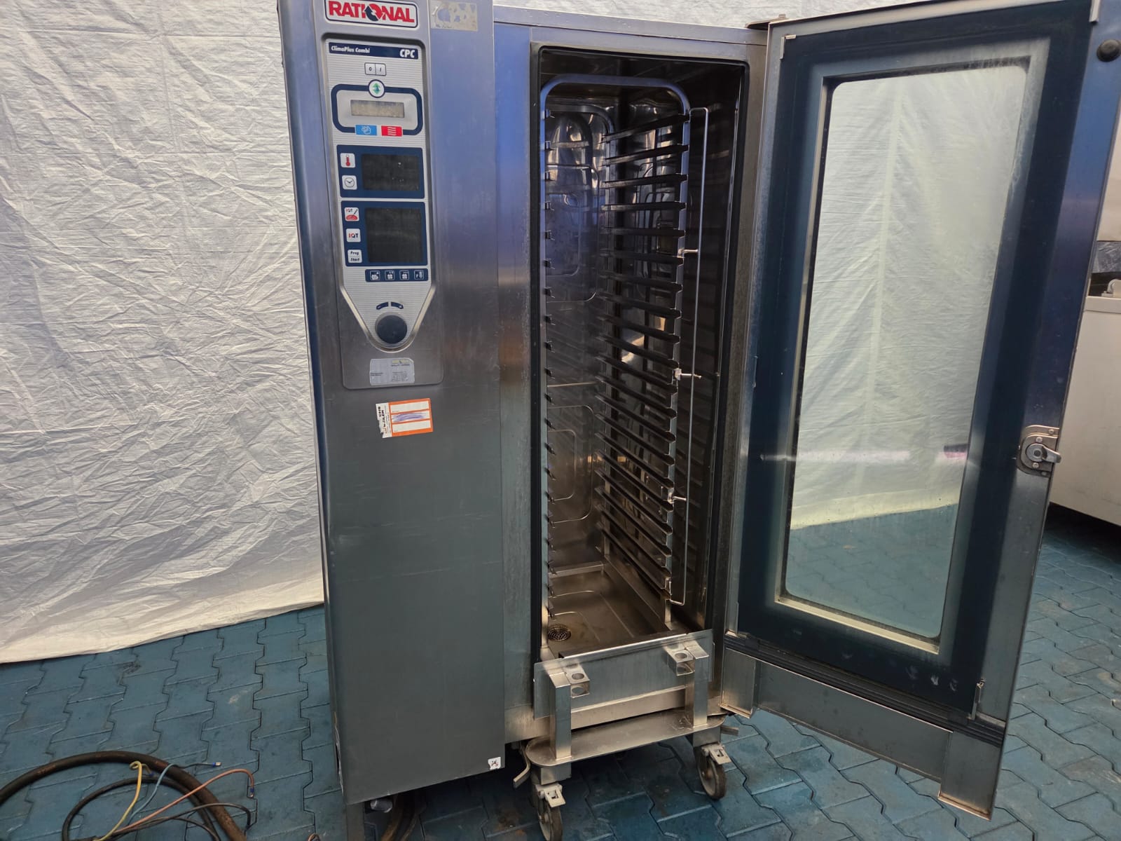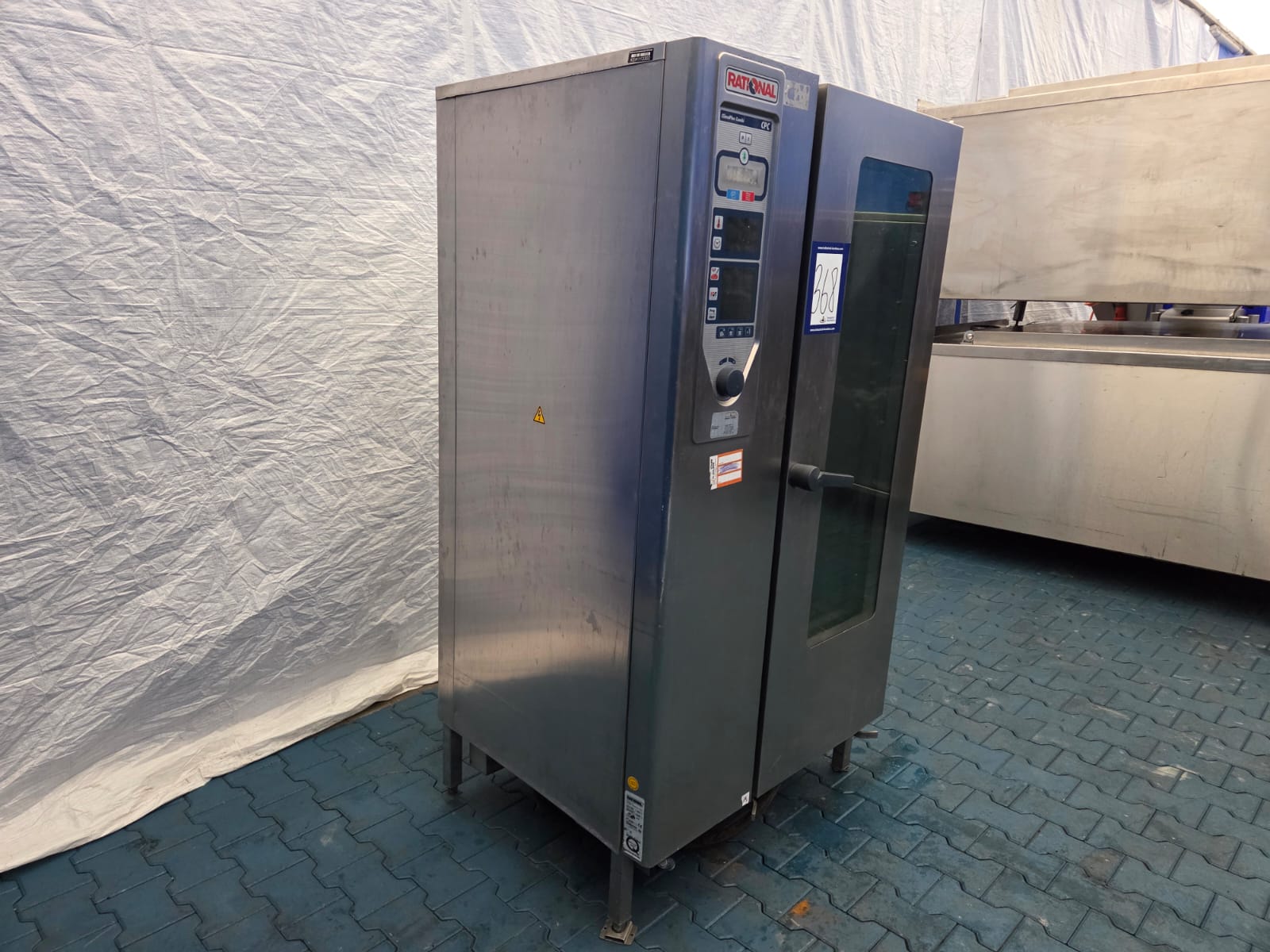 Rational combisteamer, type: CPC 201, serial number: E21CB99101014540, year of construction: 1999, 400 V, 3 Ph, 50 Hz, 38 kW, electrically heated, dimensions: 900 mm x 800 mm x 1950 mm.