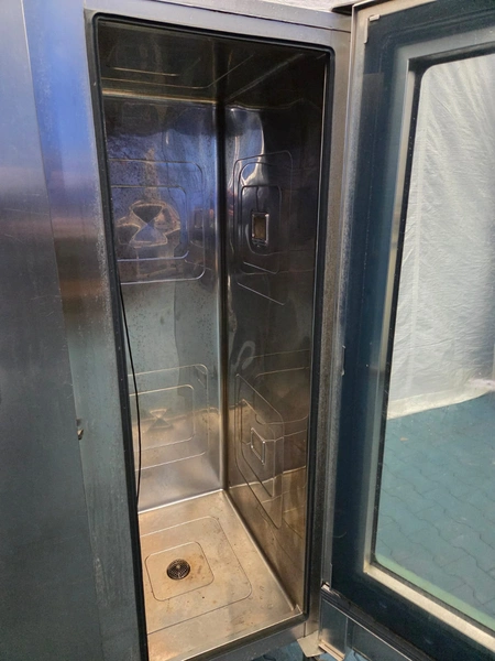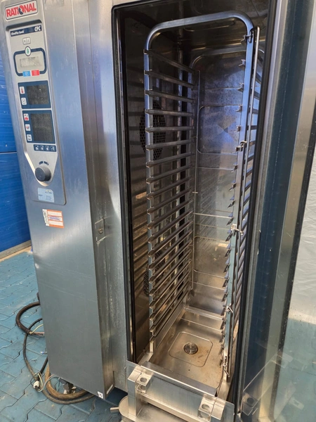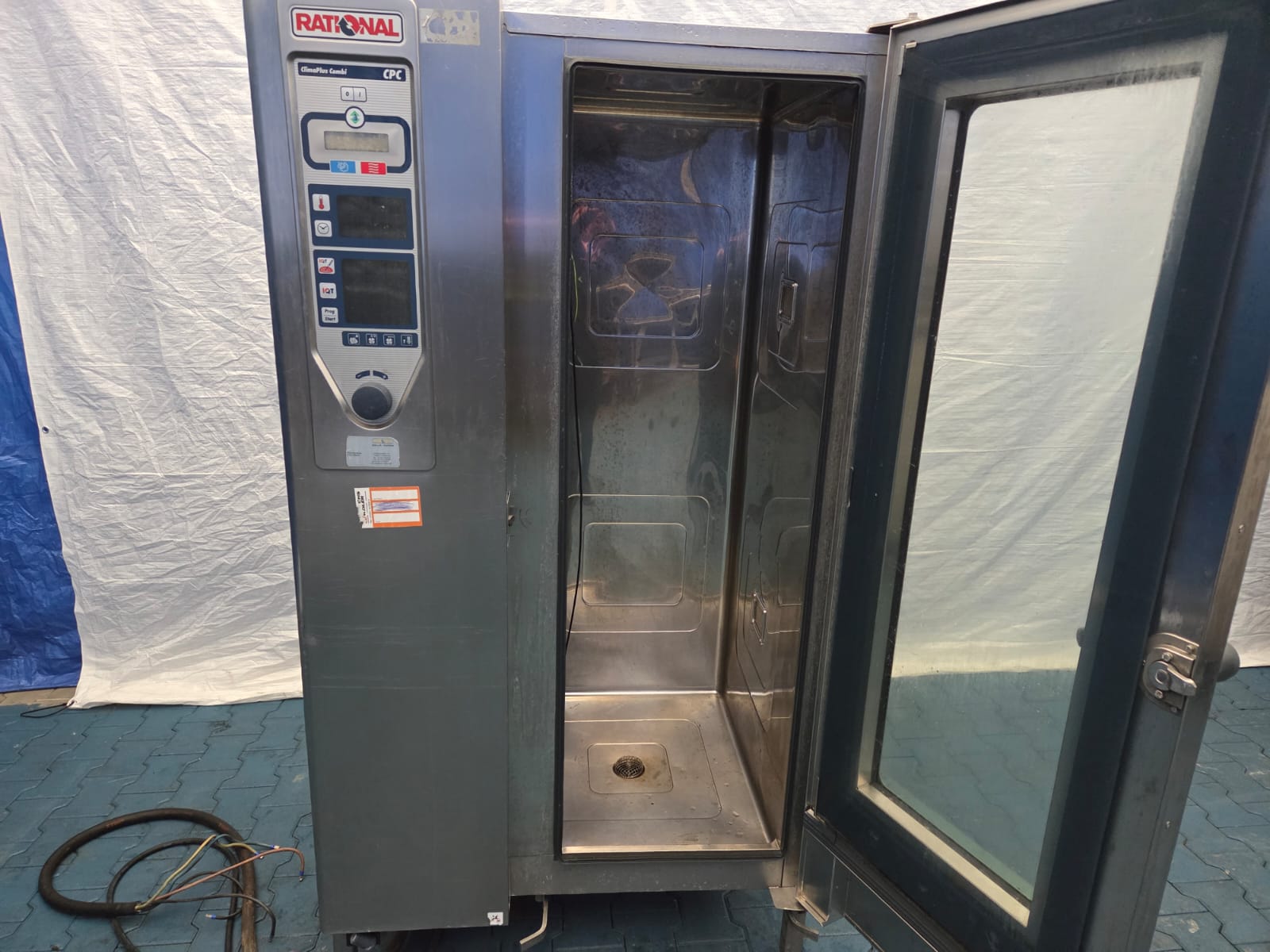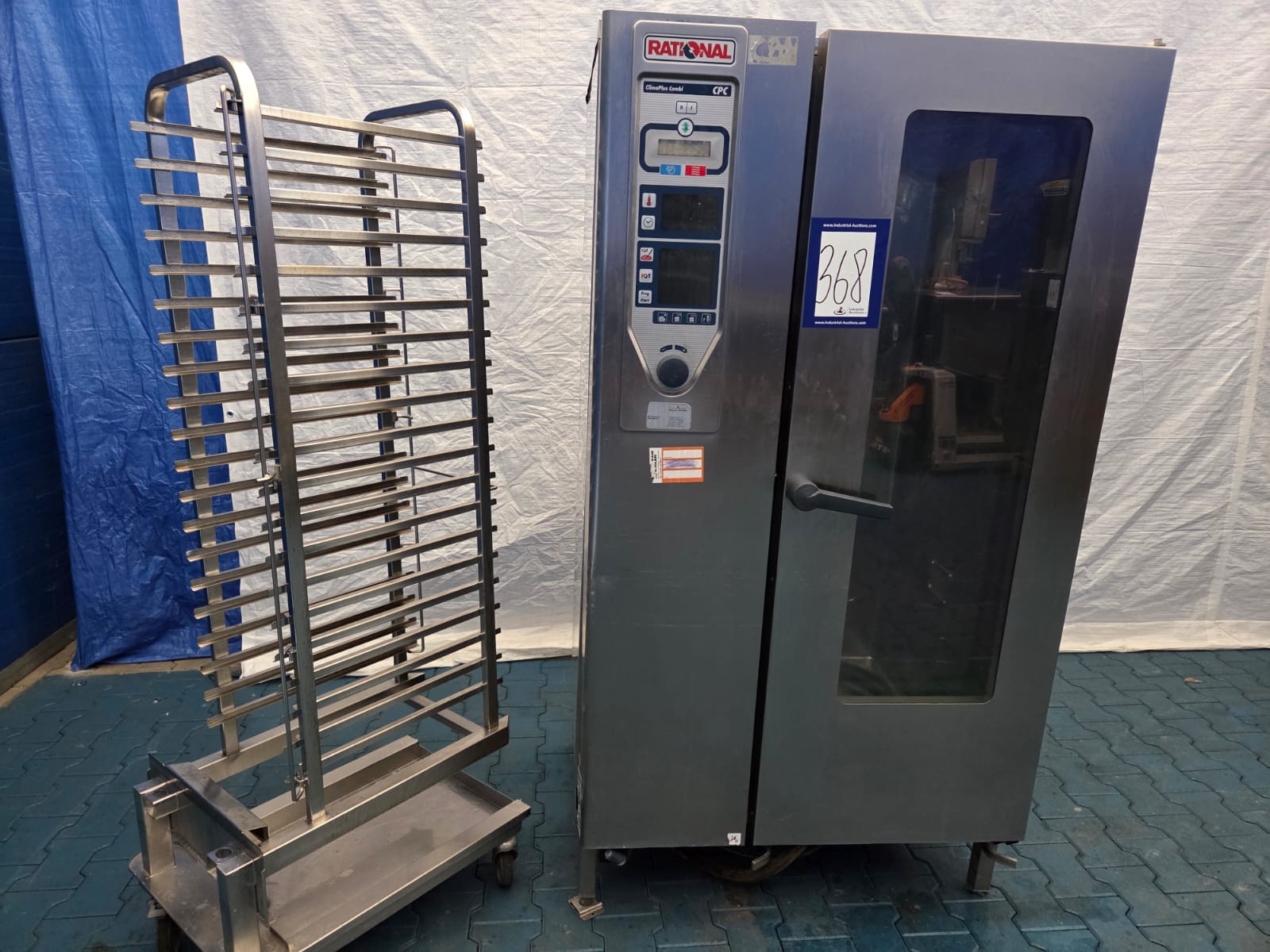 Rational combisteamer, type: CPC 201, serial number: E21CB99101014540, year of construction: 1999, 400 V, 3 Ph, 50 Hz, 38 kW, electrically heated, dimensions: 900 mm x 800 mm x 1950 mm.