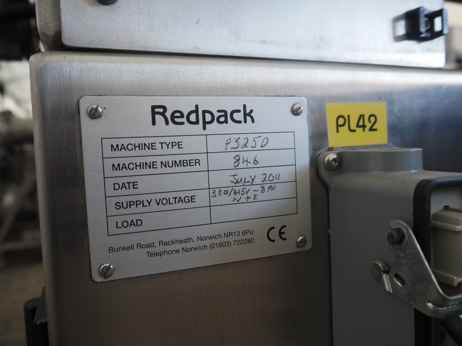 Redpack flowpacker, type: P3250, machine number: 846, year of construction: July 2011, 380/415 V, 3 Ph, weight: 1500 kg, seal width: 300 mm, dimensions: 5400 mm x 1200 mm x 2000 mm.