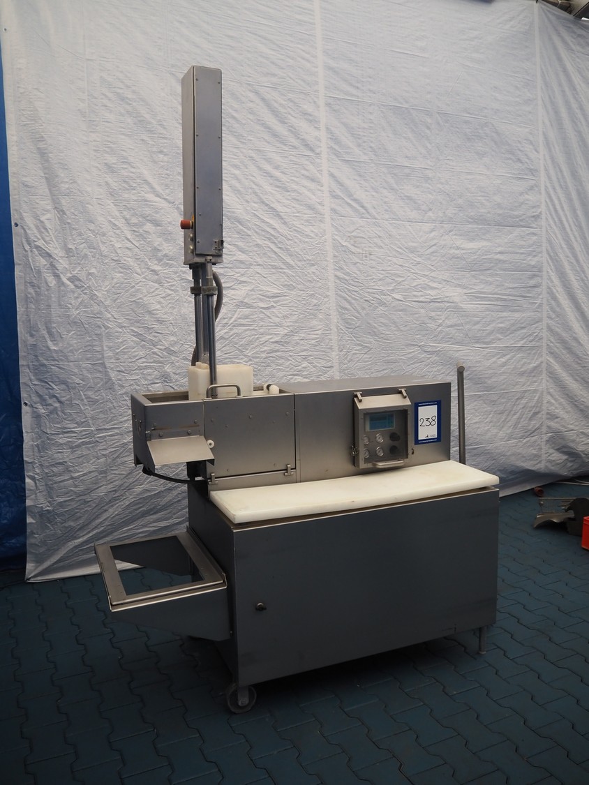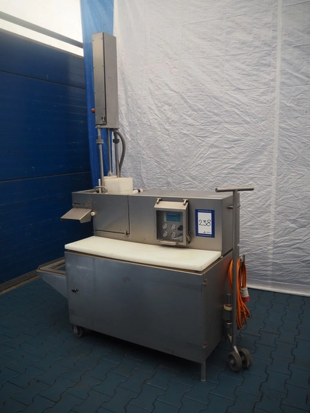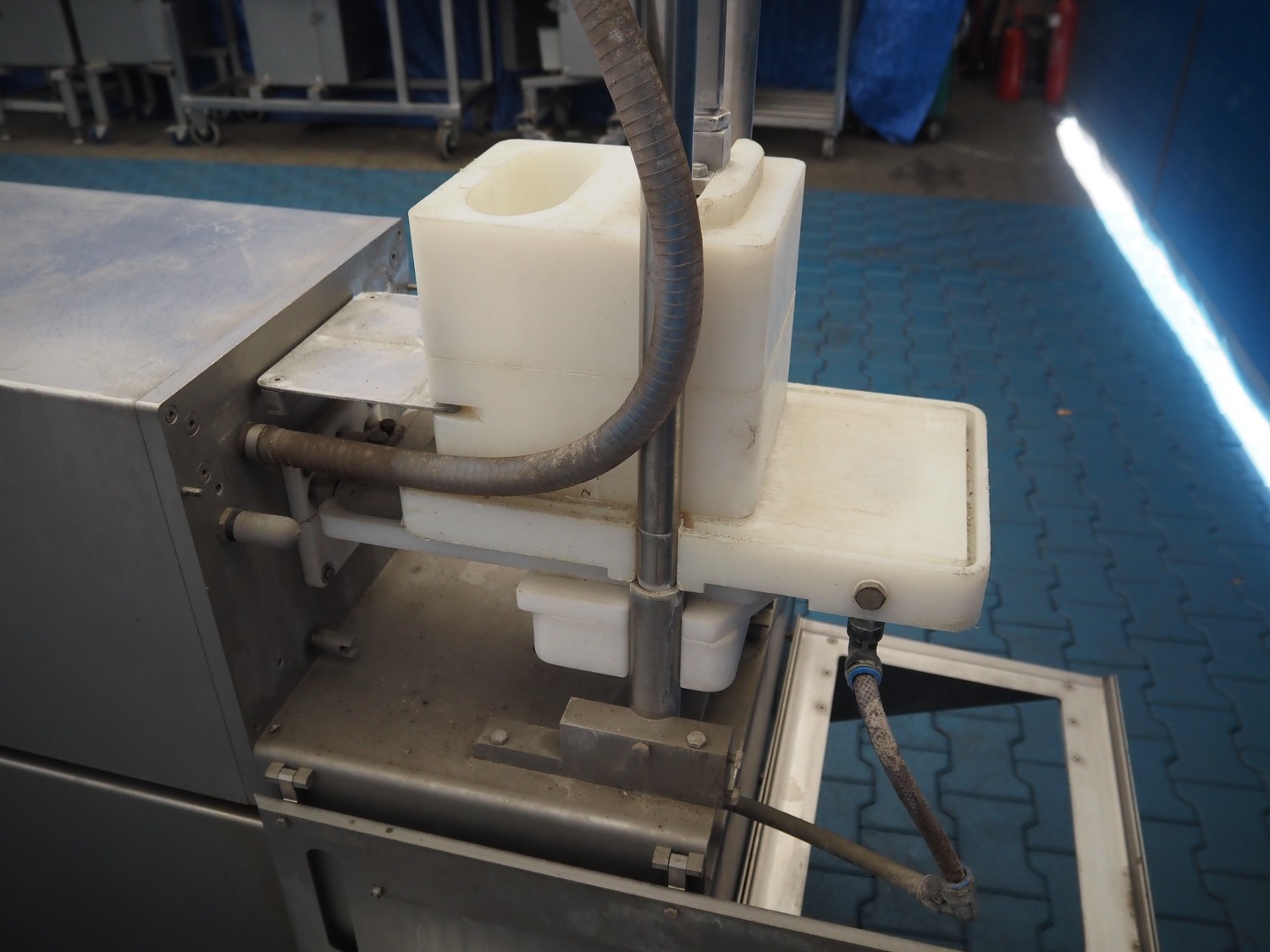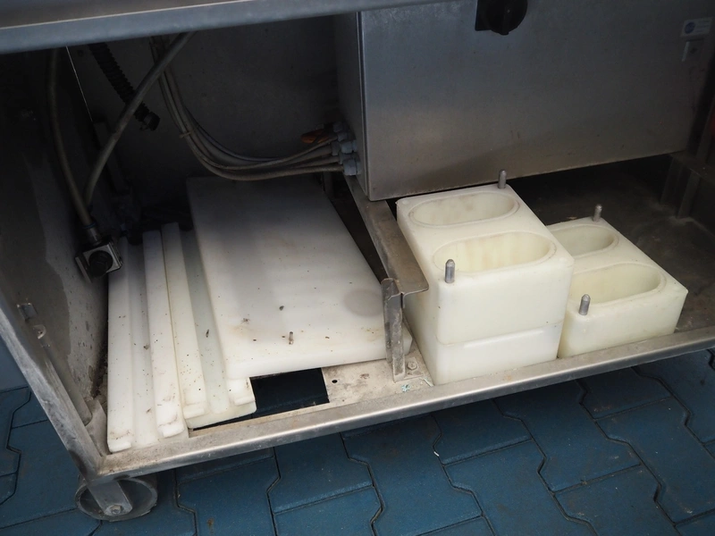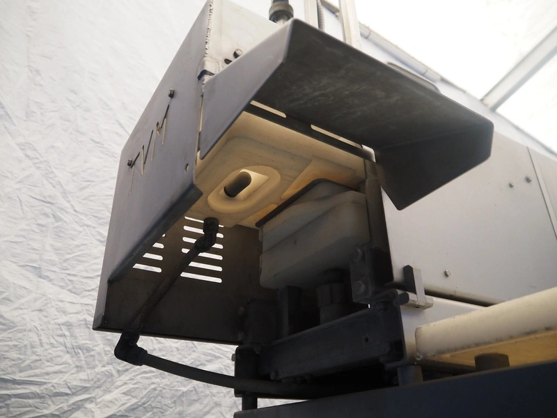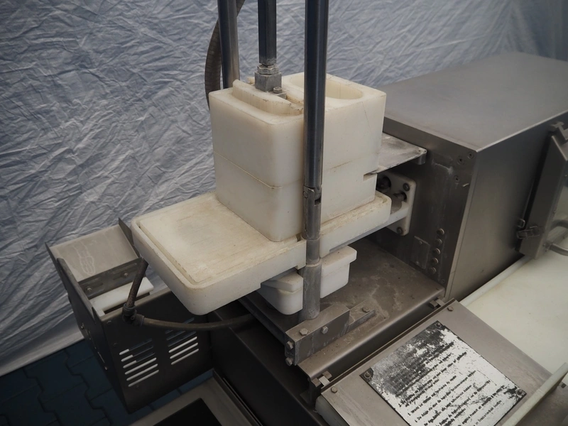 TVM mobile portioning machine, dimensions dyes: (2x) 160 mm x 70 mm, total dimensions: 1750 mm x 650 mm x 2450 mm.