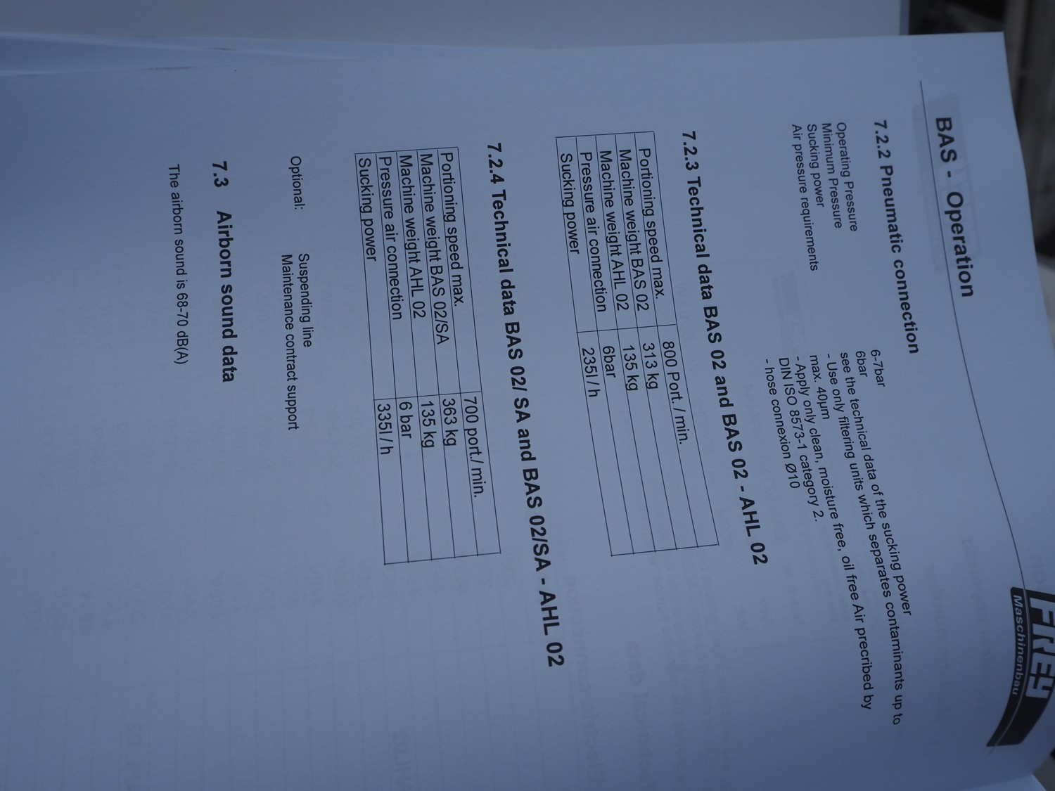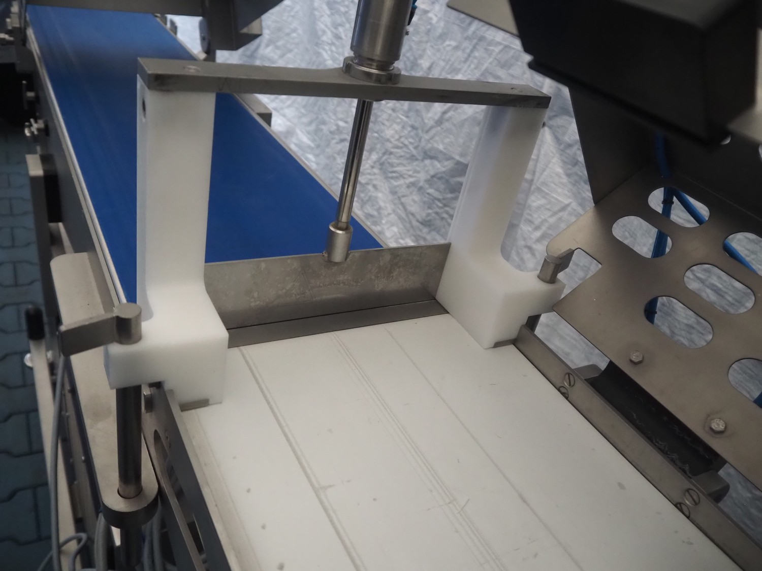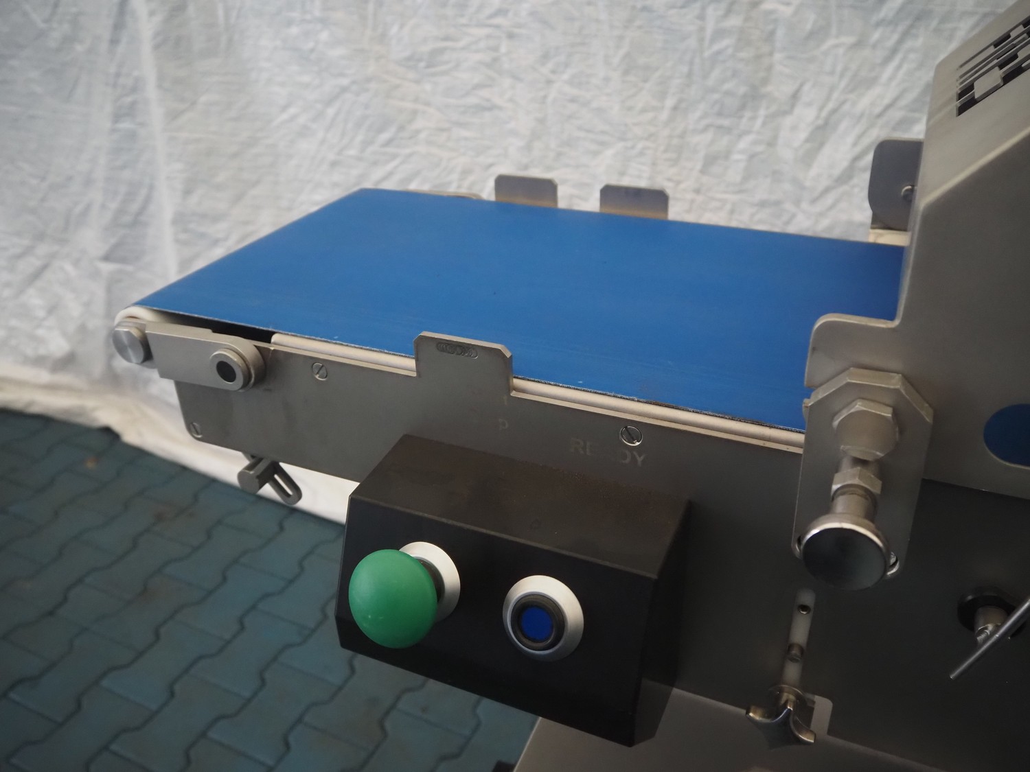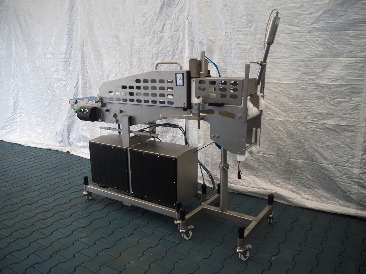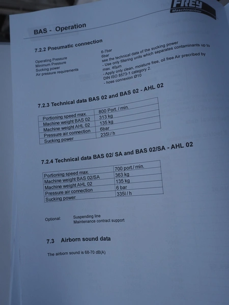 Frey Maschinenbau GmbH mobile minced meat portioner, type: CLB CAN, machine number: CLB 1471527, year of construction: 2017, 230 V, 50/60 Hz, 0.50 kW, plastic belt, belt width: (2x) 300 mm, clearance: 300 mm x 70 mm, total dimensions: 2050 mm x 700 mm x 1750 mm.